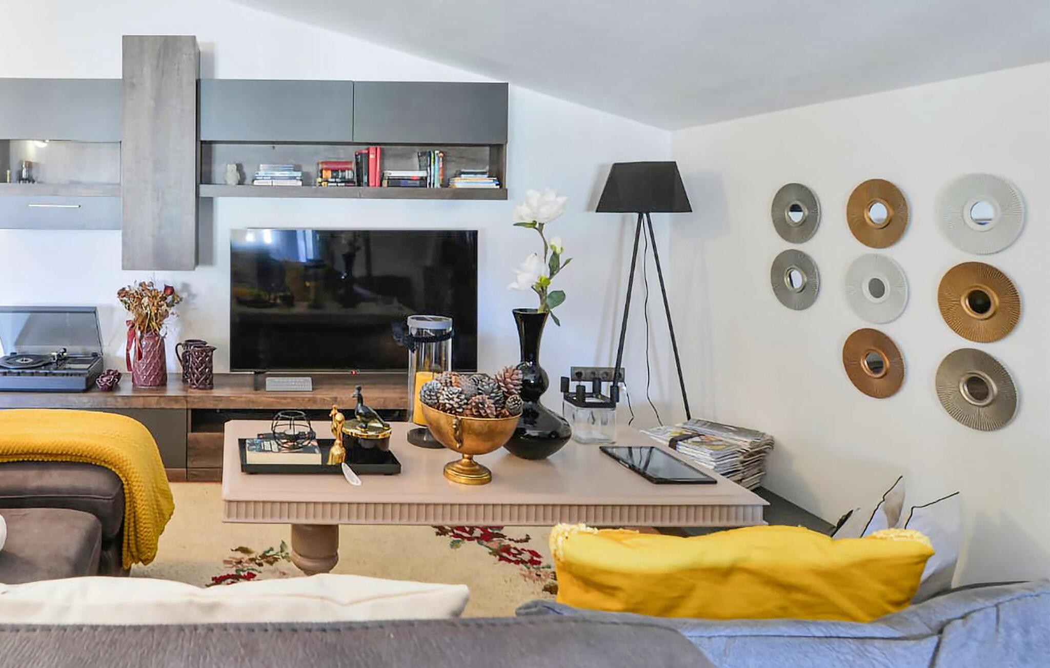 Denne komfortable og stilfulde ferielejlighed i en velholdt lejlighedsbygning er garanti for en rolig ferie uden bekymringer. Her skal I bare føle jer hjemme og nyde den karakteristiske udsmykning og de gode faciliteter. I kan starte ferien med en dampende kop kaffe på jeres private altan. I kan også udforske fællesarealet i haven, hvor der er en møbleret terrasse og en fælles grill, hvor I kan lære de andre gæster at kende, hvis det er det, I er til.
