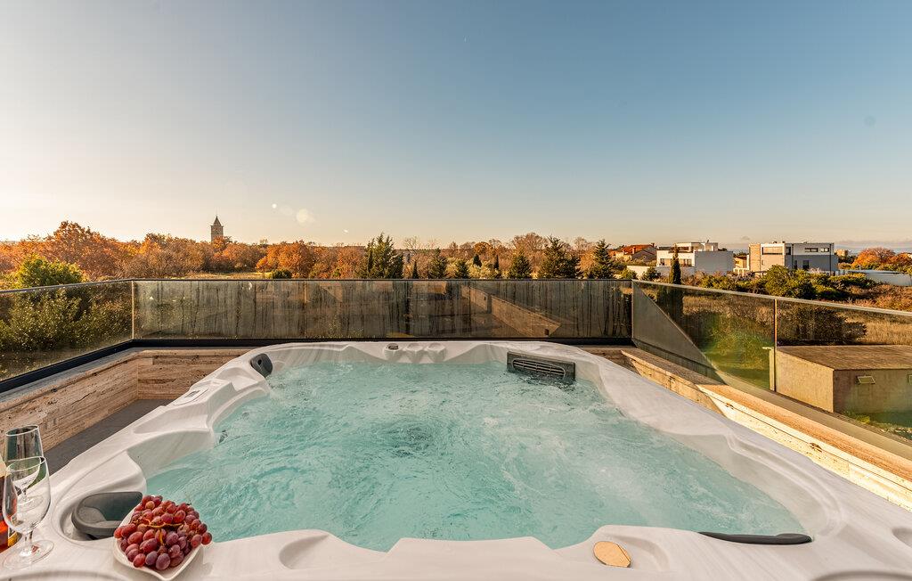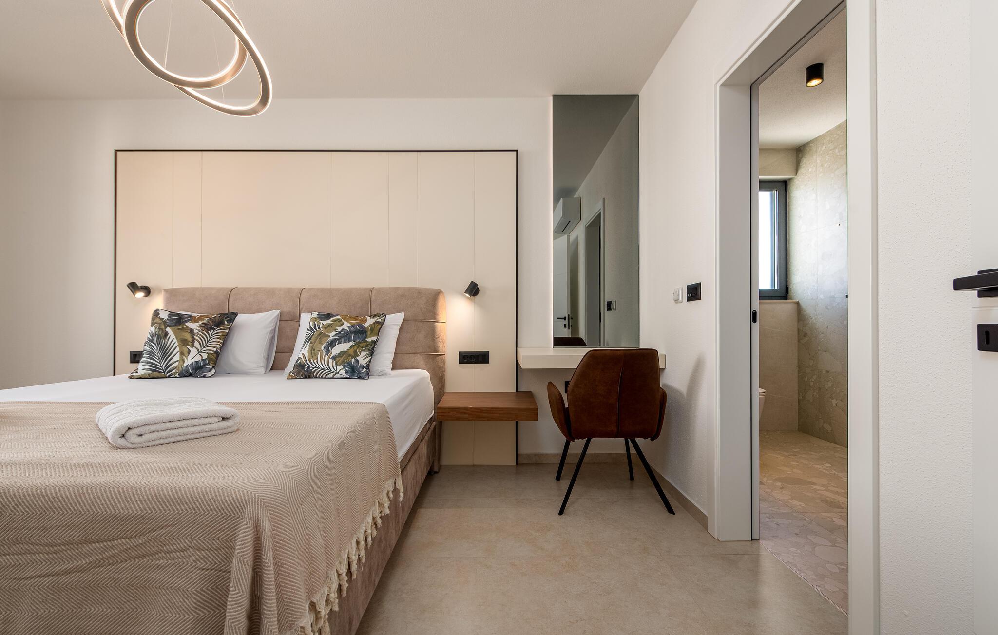 Det elegante udendørsområde er perfekt til fuldt ud at nyde Kroatiens vidunderlige klima på alle tider af dagen. Glæd jer til mange solskinstimer på komfortable liggestole og aftensvømmeture i den stemningsfuldt oplyste pool. Nyd en solnedgang på jeres yndlingsterrasse og find sammen til stilfulde måltider i den varme sommerluft.