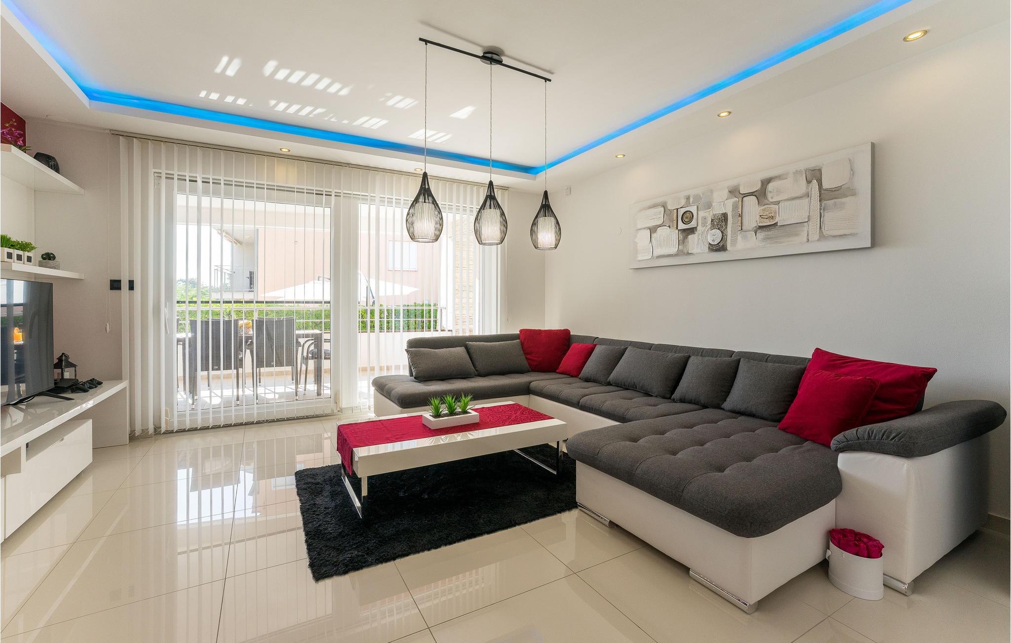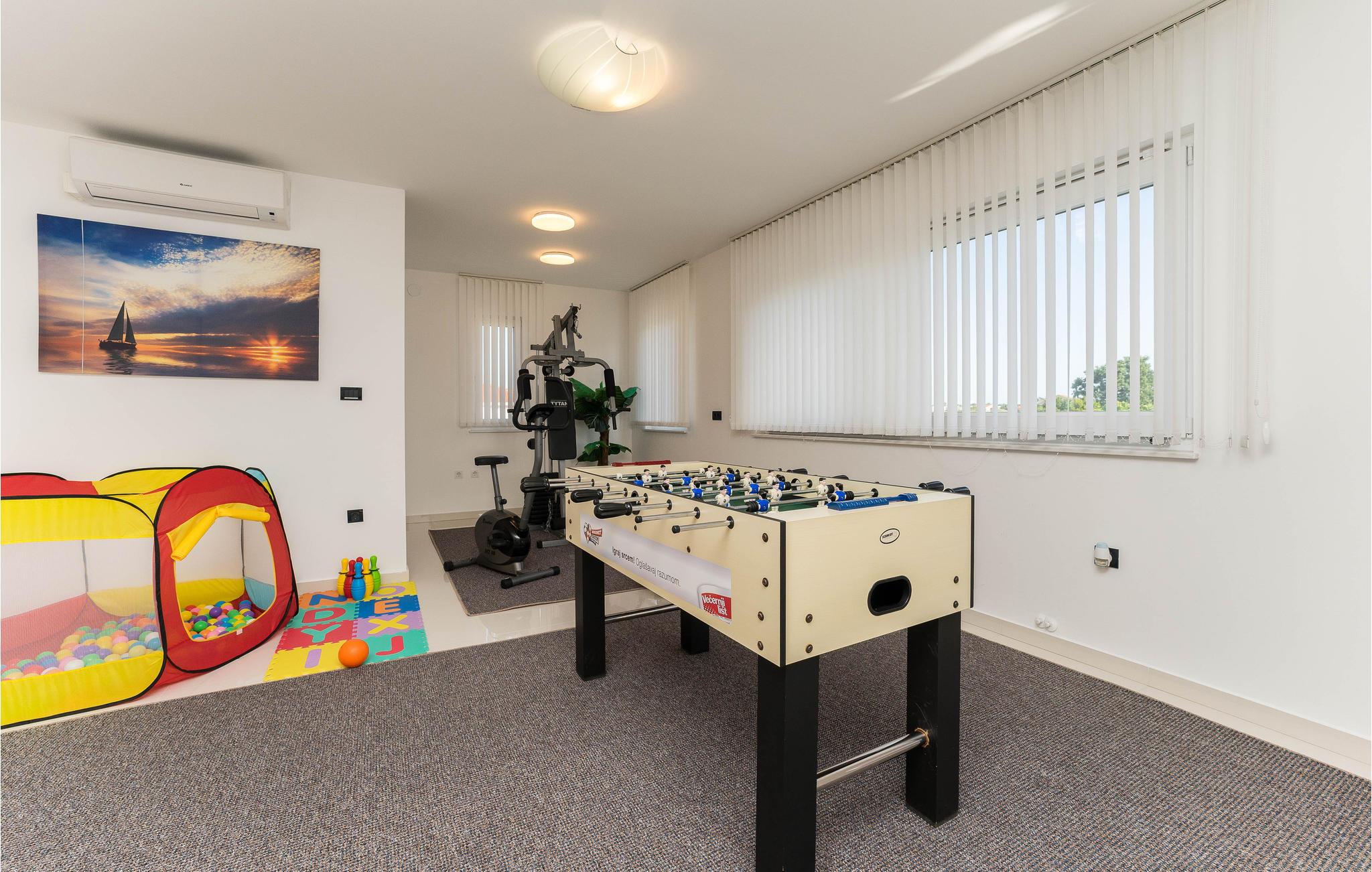 Und dig selv og dine kære en drømmeferie i dette attraktive feriehus med pool. Det ligger i nærheden af et kendt feriecenter og har forskellige faciliteter for børn og voksne. Rummene, der er gennemstrømmede af lys, er indrettet stilfuldt og meget komfortabelt. På første sal er der foruden soveværelserne også et fritidsrum, hvor der findes noget motionsudstyr og nogle selskabsspil. I to badeværelser er der hydro-massage-doucher. Ved siden af den udendørs pool kan I lave lækre fiske-, kød- og grønsagsretter på grillen, mens jeres børn leger uforstyrrede. Den udendørs belysning på terrassen sørger for yderligere behagelig aftenstemning. Den lille by Zaton er ideel til en rolig familieferie og er ligeledes rig på sand- og kiselstrande.
