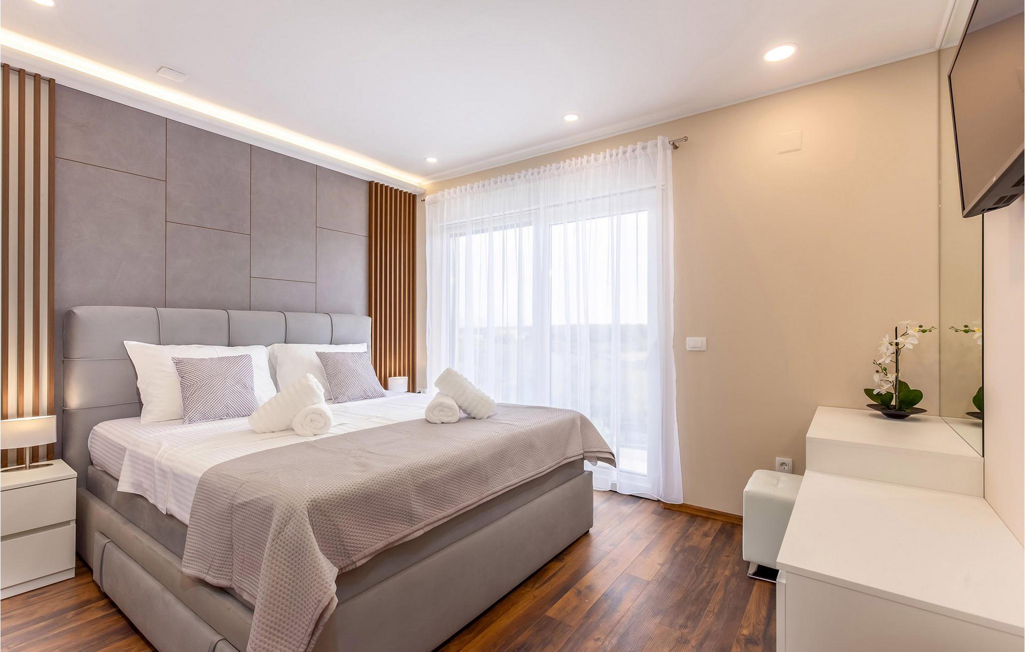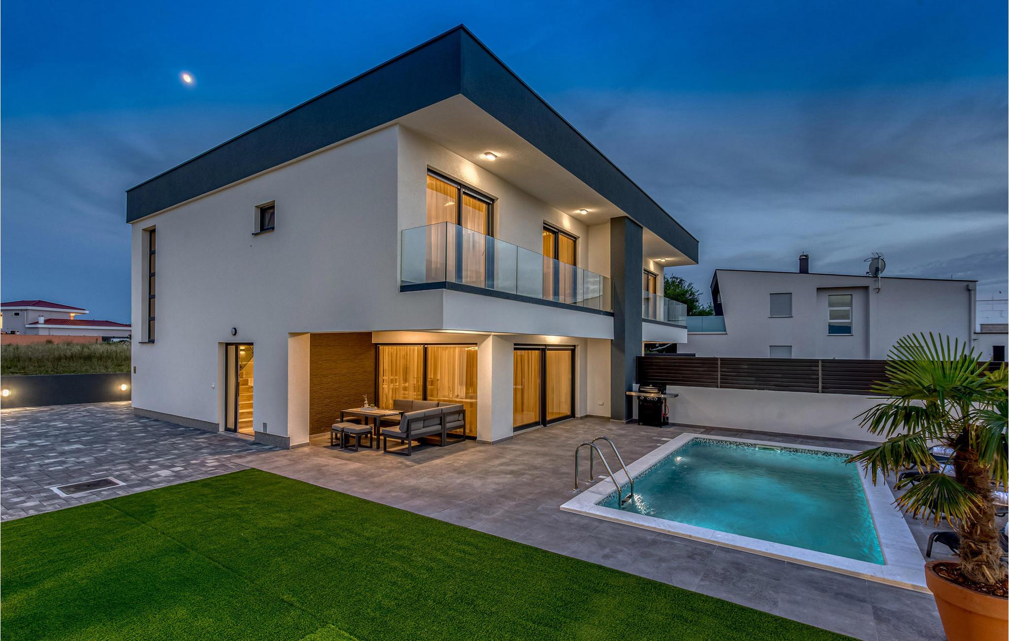 Nyd jeres ferie i denne stilfulde villa ikke langt fra maleriske strande. Glæd jer til jeres ferie i dette komfortable feriehus. Den moderne designede Villa Maestral tilbyder en åben opholdsstue med en behagelig sofa, videospil og dart til sociale sammenkomster. I det fuldt udstyrede køkken kan I lave mad sammen og nyde jeres måltider ved køkkenbordet/spisebordet. En infrarød sauna venter jer i stueetagen til afslappende øjeblikke. Udendørs inviterer det overdækkede opholdsområde og siddepladserne jer til hyggestunder, mens den store pool i haven sørger for forfriskninger. børnene vil nyde legepladsen, mens I tilbereder en lækker middag på den udendørs grill. Zaton og det omkringliggende område tilbyder en imponerende kombination af natur og kultur. Oplev sandstrandene i Nin og Privlaka eller de historiske skatte i Zadar. Tag på udflugter til øen Vir eller udforsk den gamle bydel i Nin med dens historiske seværdigheder. Uanset om I leder efter afslapning eller eventyr, vil I opleve uforglemmelige dage her.