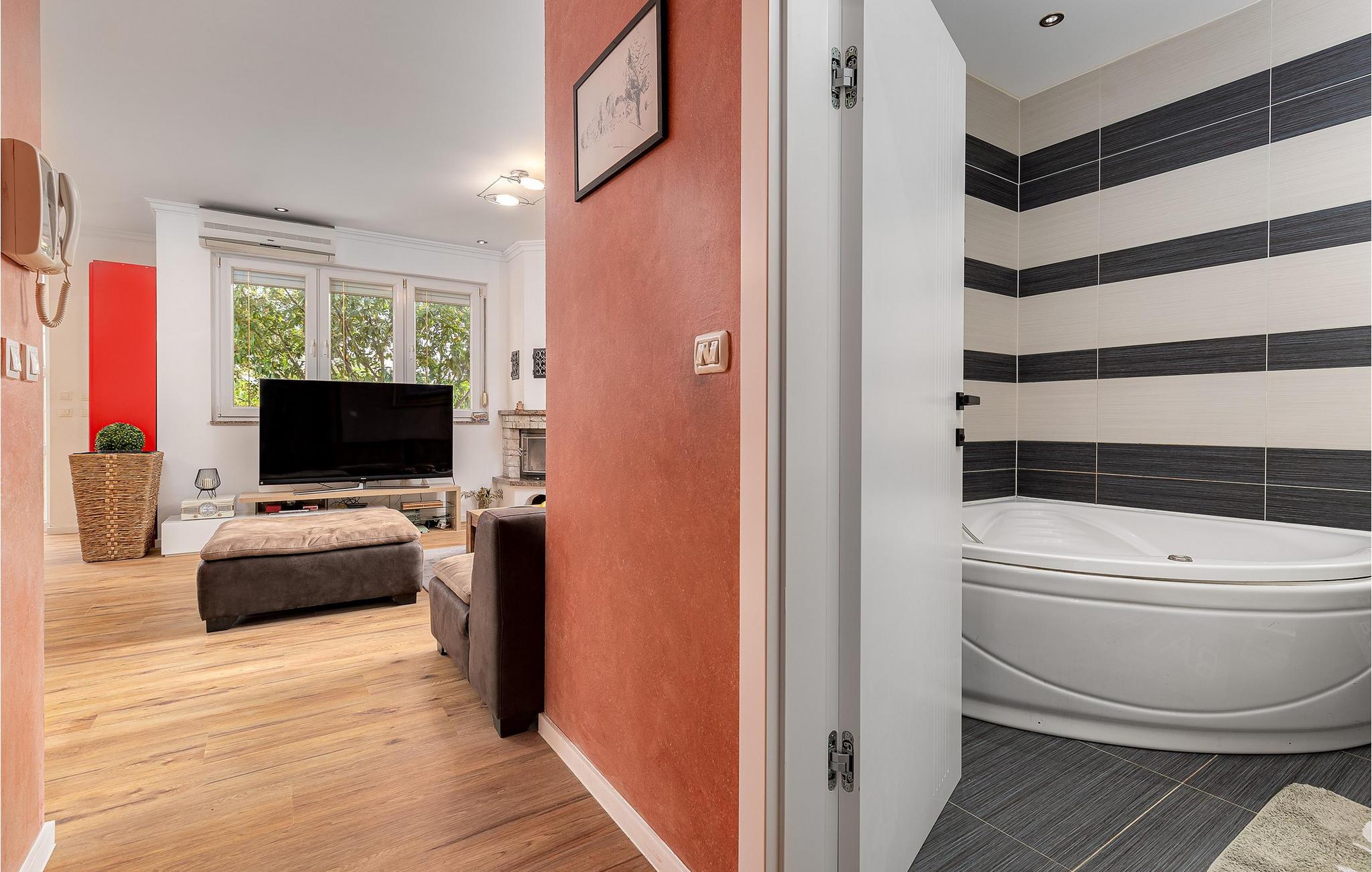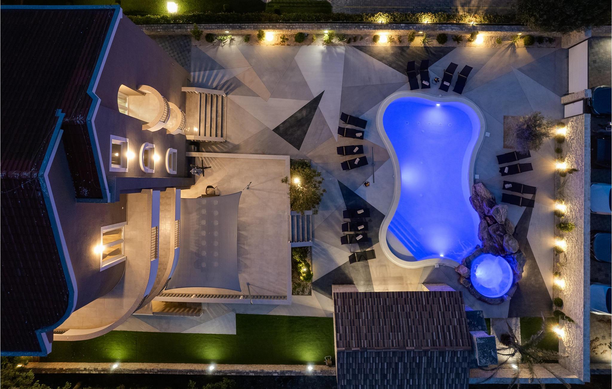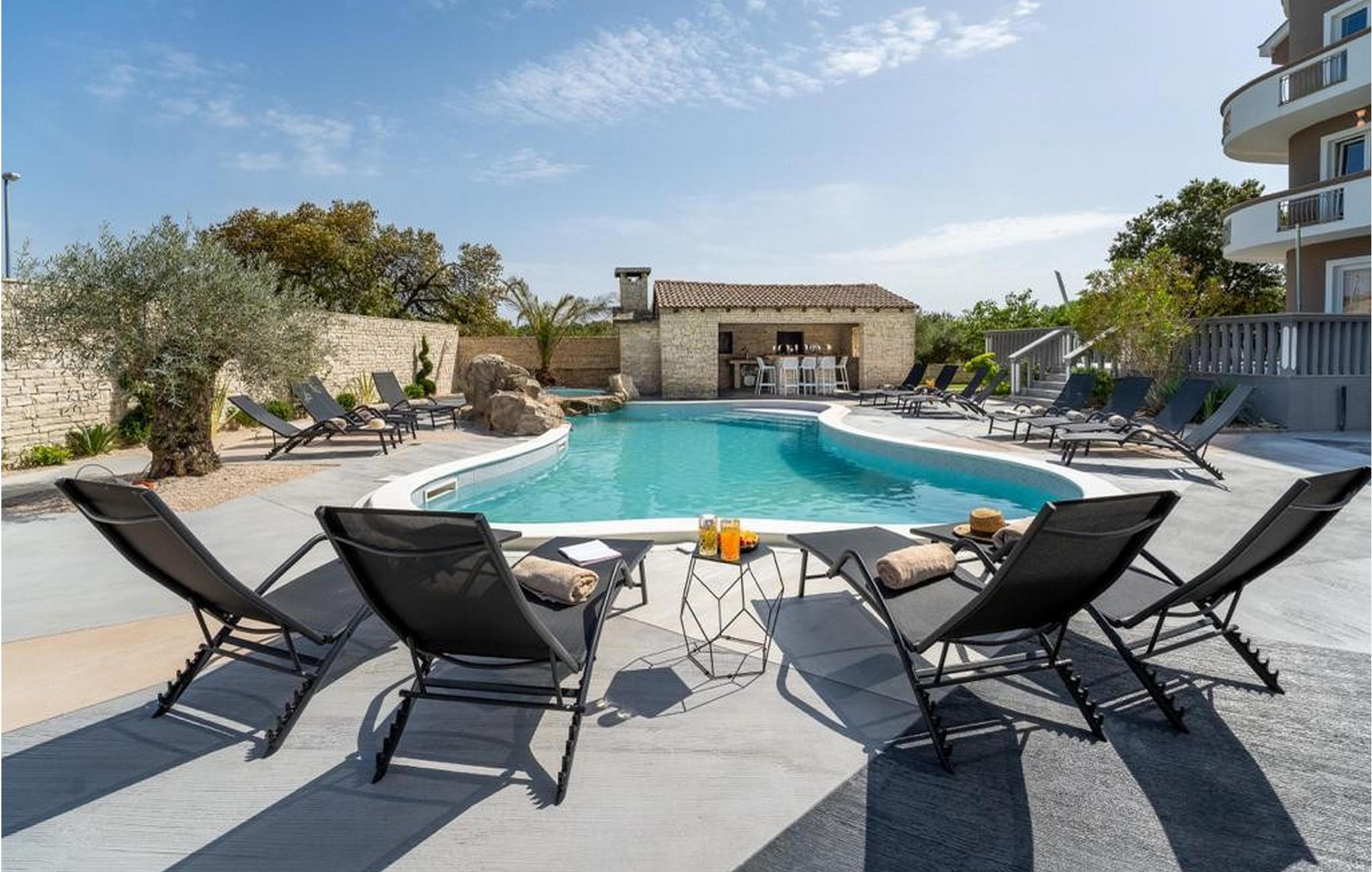 Udendørs venter en stor, opvarmet pool, hvor I kan nyde den kroatiske sol i timevis, mens børnene morer sig på trampolinen eller i den lukkede have. Tilbered lækre tilbehør til grillmad i sommerkøkkenet og nyd den autentiske atmosfære i den hyggelige taverna.