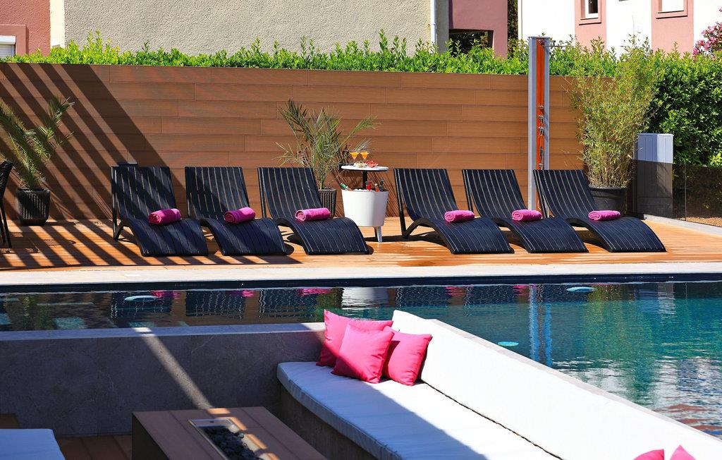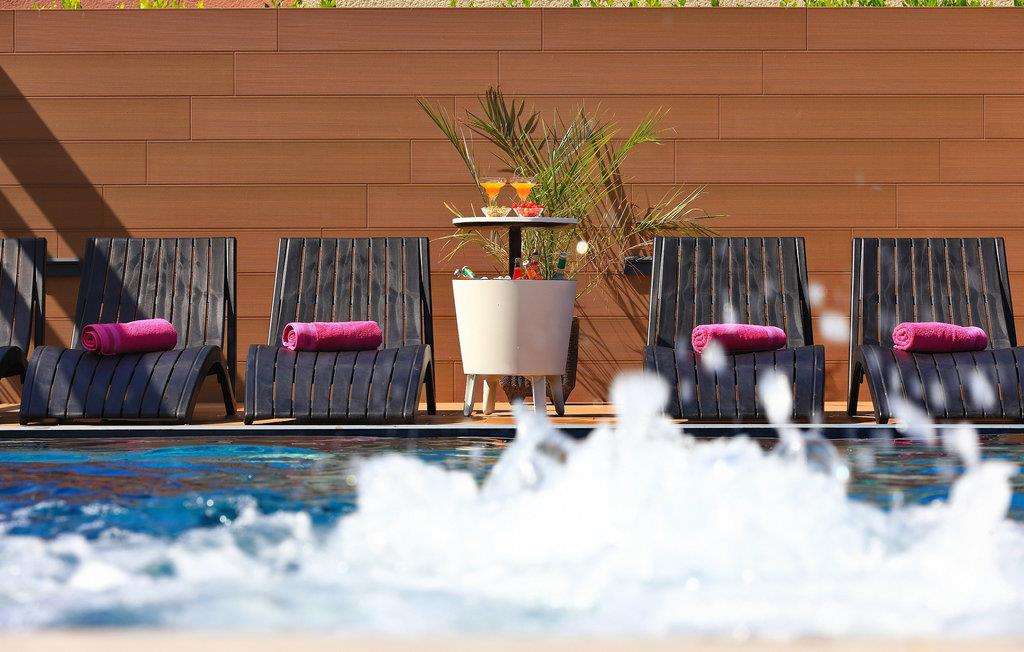 På udendørsterrassen venter en stor, opvarmet pool, hvor I kan slappe af i timevis på behagelige liggestole. Server forfriskende cocktails i loungeområdet, mens børnene leger i den lukkede have, forkæl jer selv med afslappende øjeblikke i spabadet og fejr tiden sammen med mindeværdige grillmiddage.