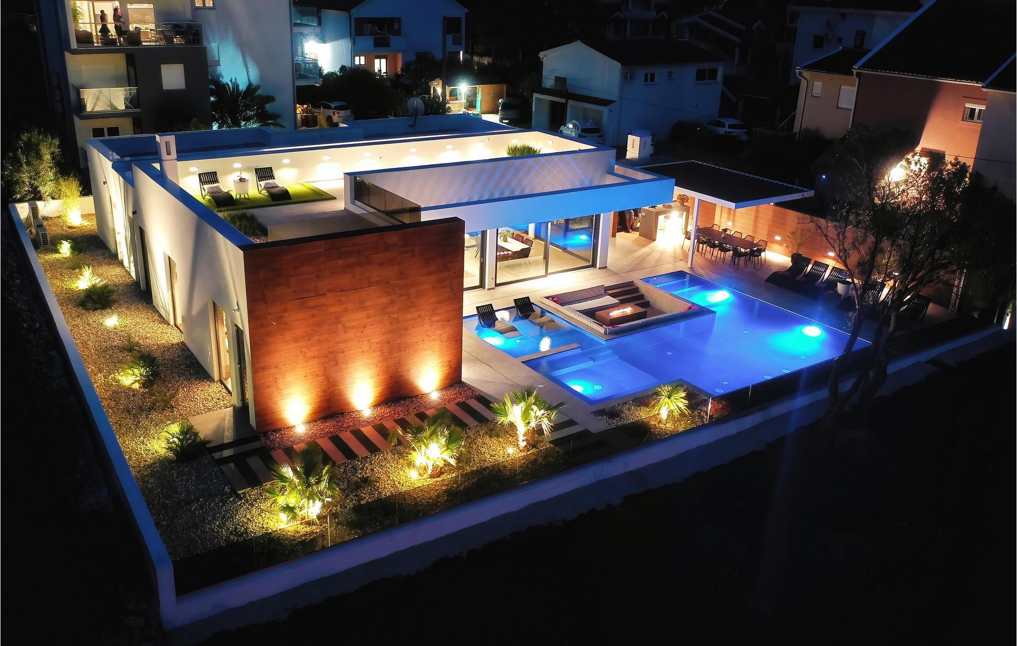 Den sensationelle designervilla Royal Sunset byder jer velkommen kun få skridt fra stranden med et rummeligt og luksuriøst møbleret interiør og tilbyder det perfekte sted til en afslappende ferie med venner eller familie når som helst på året. Skab kulinariske lækkerier og nyd stilfulde måltider ved det indbydende spisebord. find sammen til stimulerende samtaler i den rummelige stue eller nyd den elegante atmosfære med stille læsning.
