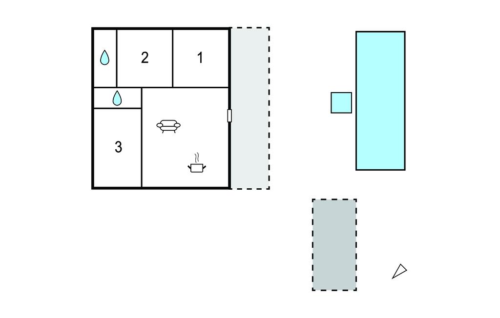 Opholdsstue/køkken 30m2 - 2 Sovepladser. (Sofa, madras eller lignende).