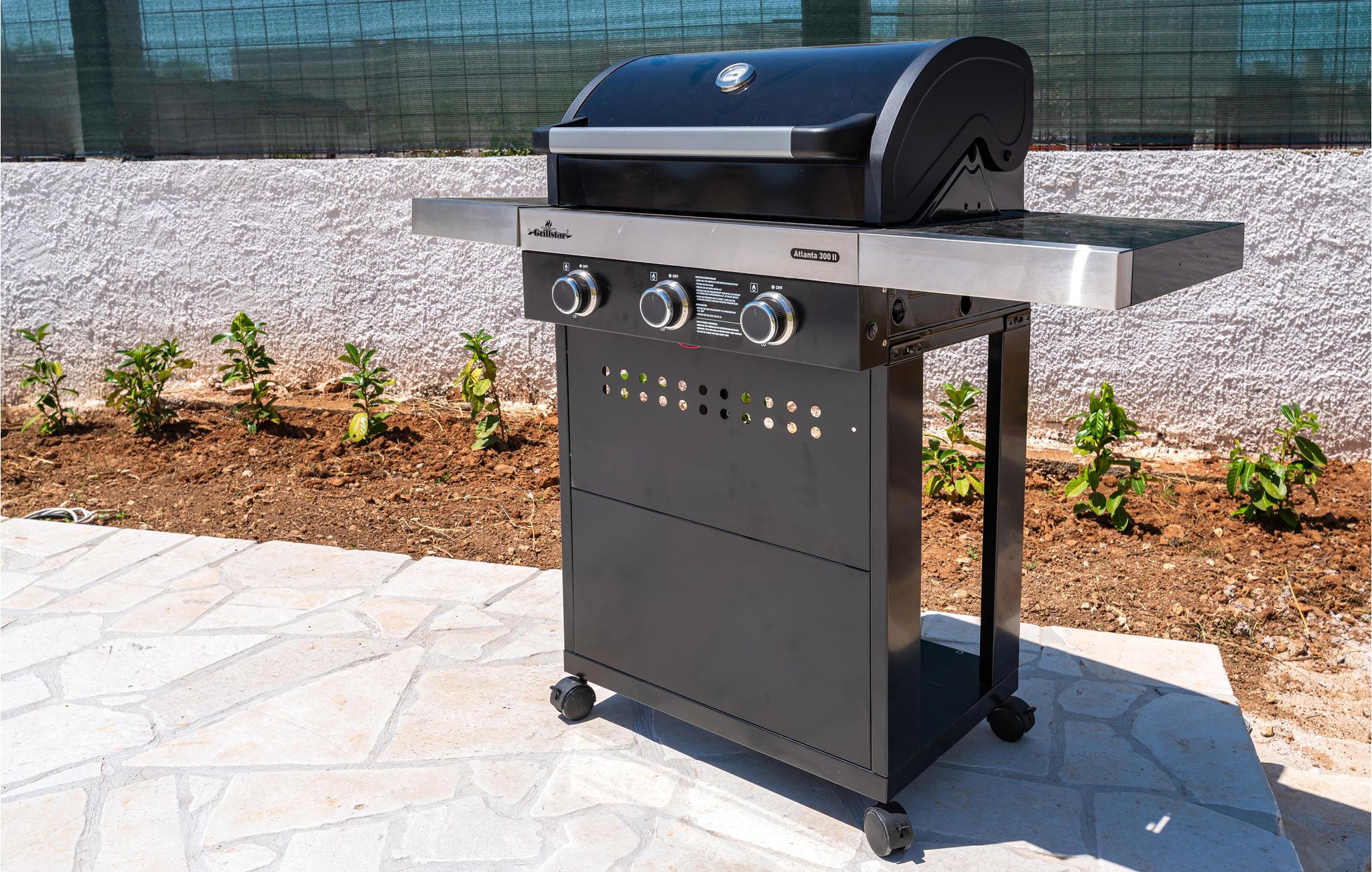 Nyd solen i husets have, hvor I kan slappe af på den overdækkede terrasse. Tilbered lækre måltider på grillen. Jeres børn finder mange legeredskaber og meget legetøj at underholde sig med.