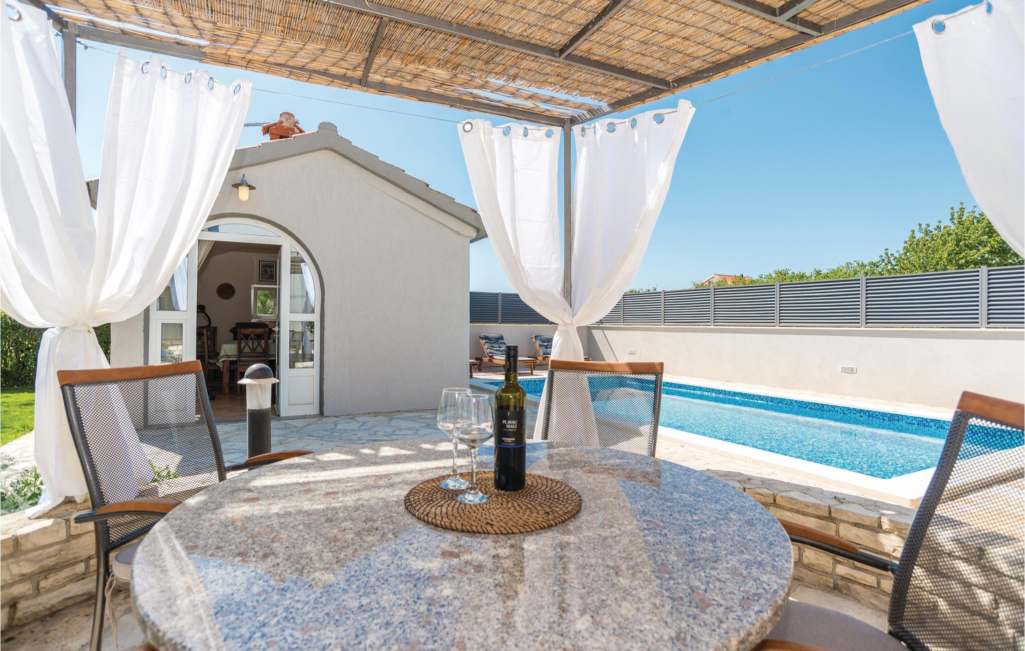 Dette smagfuldt indrettede feriehus med pool er som skabt til familieferie. Det ligger ca. to km fra strandene Borik og Puntamika i Zadarregionen. På de hede sommerdag kan I hoppe en tur i poolen og det er også muligt at slappe af i den lune udendørs whirlpool, der er dejligt ugenert. Når I er mætte af solen og huden skal have pause, så sid i skyggen mens maden steger færdig på grillen. Centrum af Zadar, med attraktioner som Hilsen til solen og Havorgelet, samt en perlerække af arrangementer, folklore festivaller og koncerter, ligger blot en bekvem køretur væk i bil. Husets første sal er lukket af for gæster.