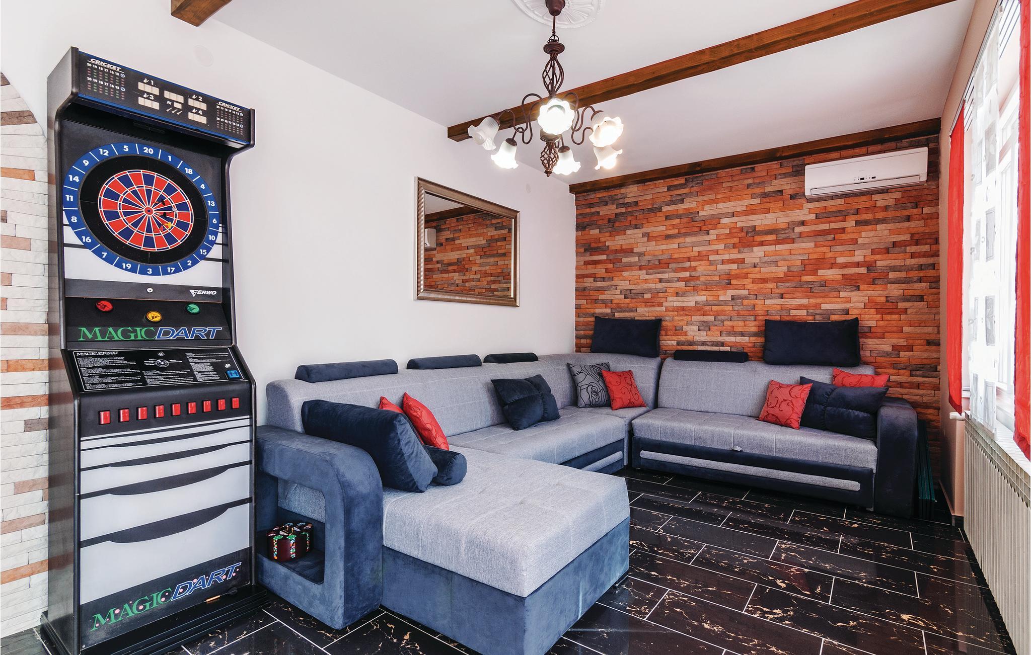 Tilbring en skøn sommerferie i den populære by Zadar, i dette smagfuldt indrettede feriehus med pool. Grunden er omgivet af smukke stenmure der samtidig giver privatliv. I stueplan er der et komfortabelt køkken med spiseafdeling og et badeværelse, mens soveværelserne ligger på første sal. Her behøver ingen kede sig for der er både dart, billard og en Wii. Ligesom I kan nyde husets private wellness med udendørs pool, en whirlpool til seks personer og en finsk sauna. I bor perfekt, hverken langt fra Zadars centrum eller stranden og havet. Besøg også nationalparkerne Kornati og Paklenca samt naturparken Telašica.