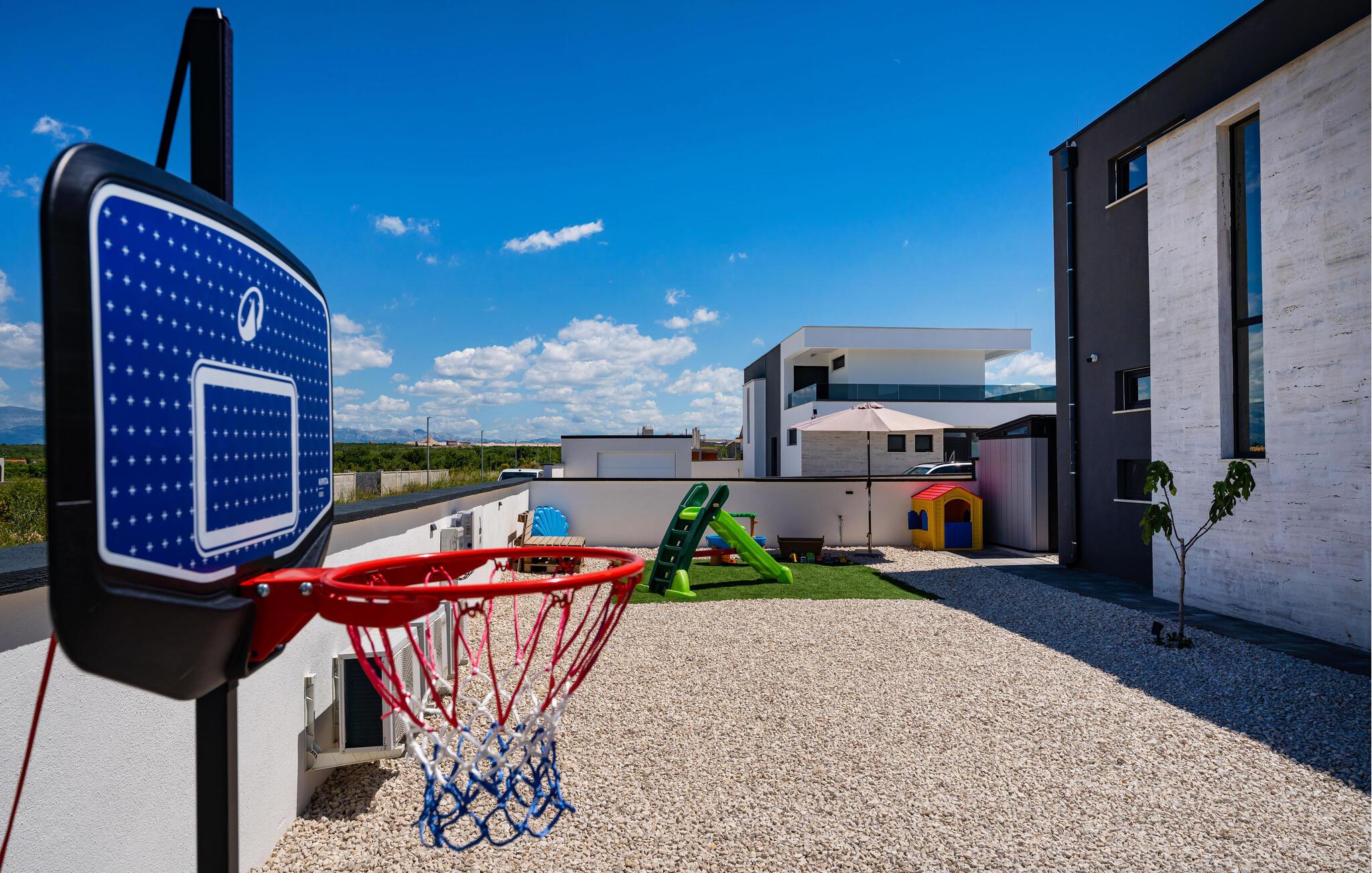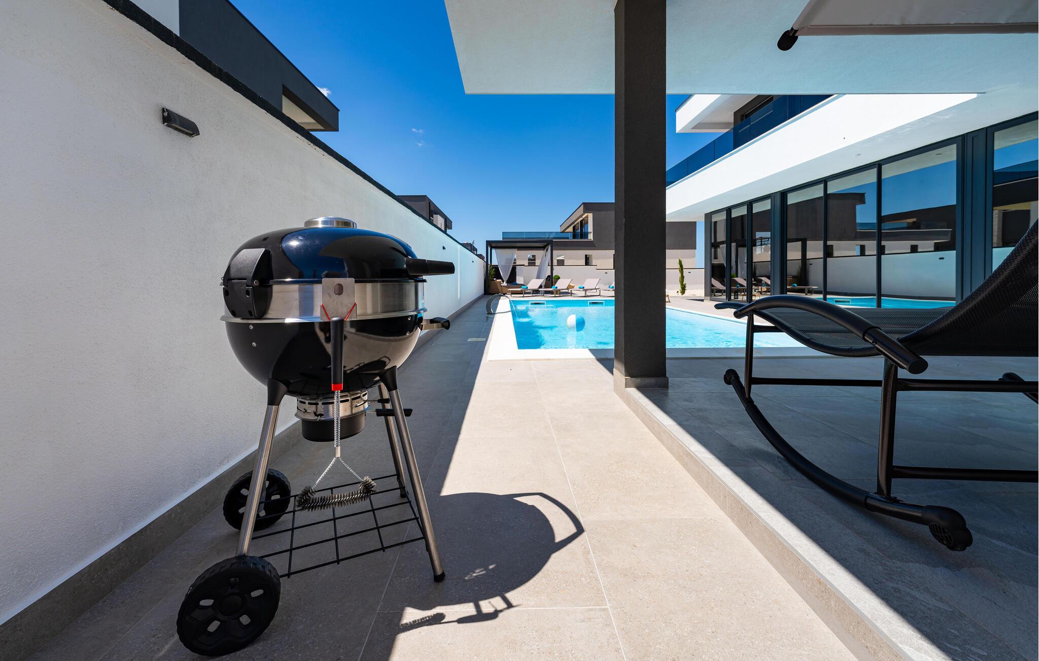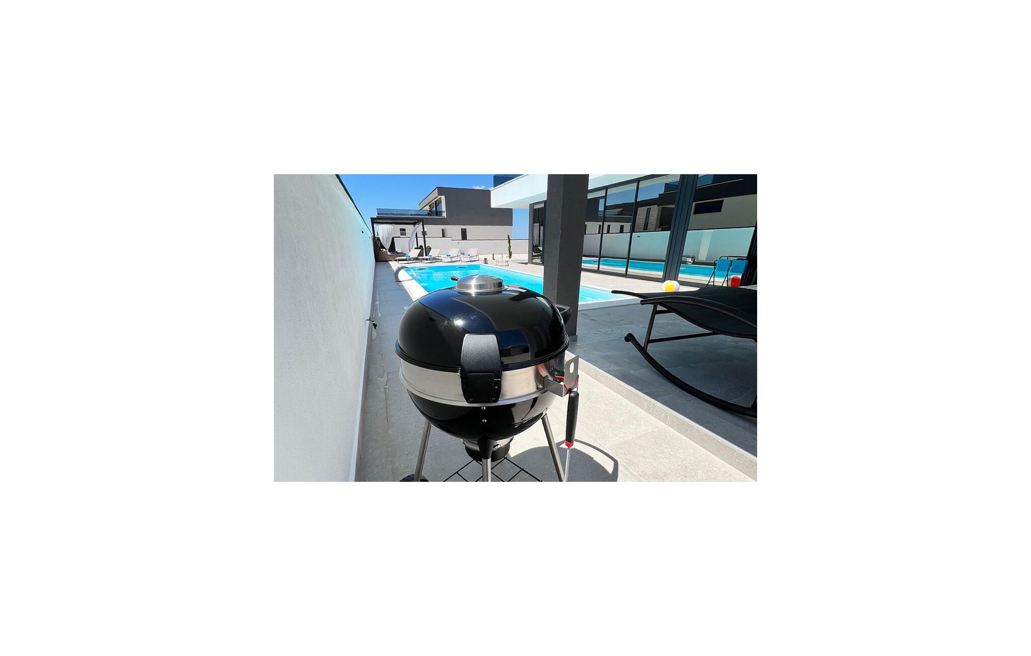 Begynd dagene med en friskbrygget kop kaffe på den solrige terrasse. Nyd nogle afslappende timer på liggestolene og forkæl jer selv med en frisk dukkert i poolen når som helst. En basketballkurv er tilgængelig for aktive gæster, mens de små kan boltre sig i deres eget legeområde. Om aftenen kan I grille lækre måltider og samles til et måltid under åben himmel.