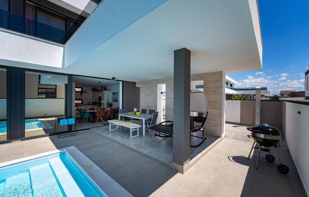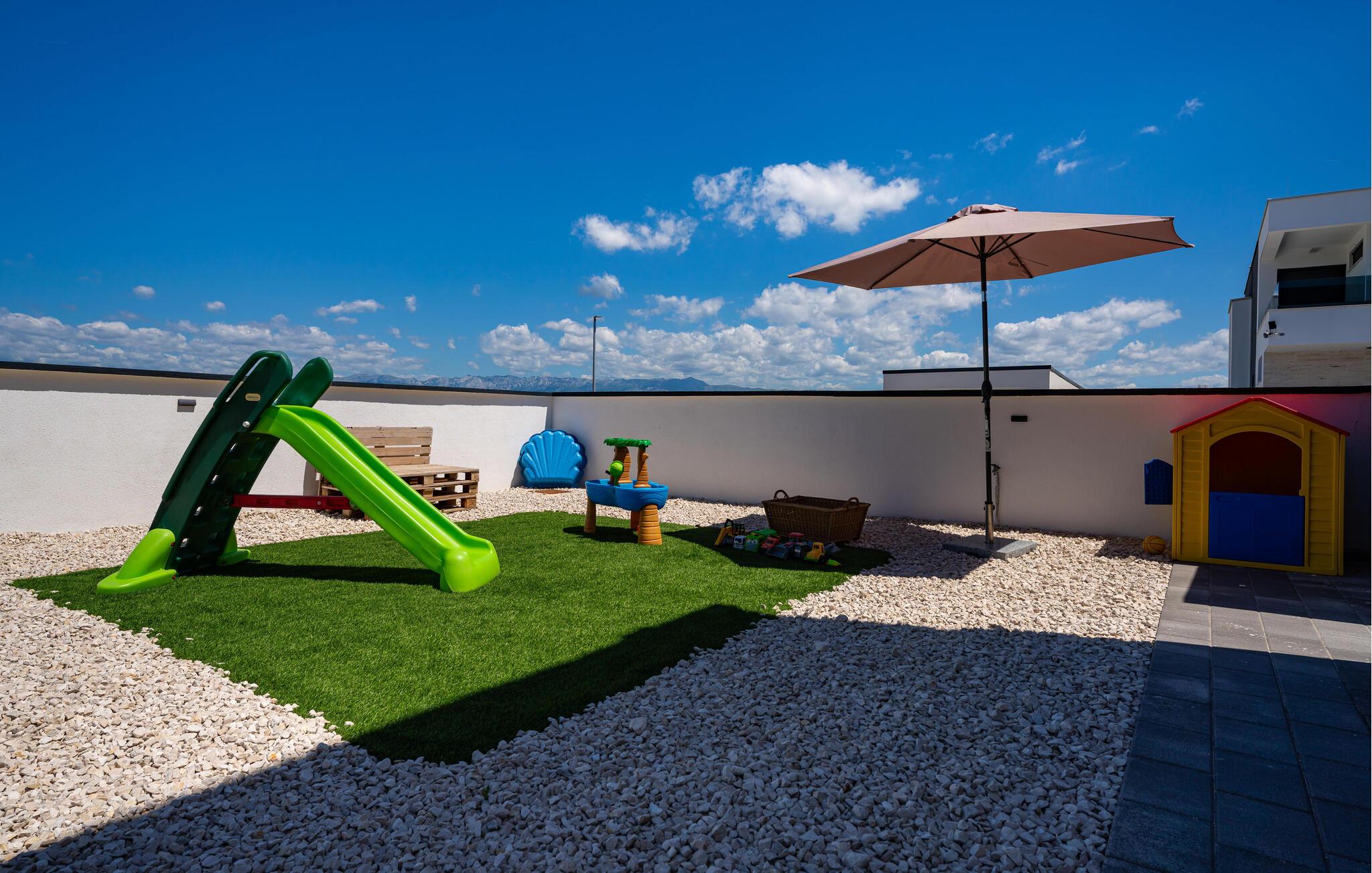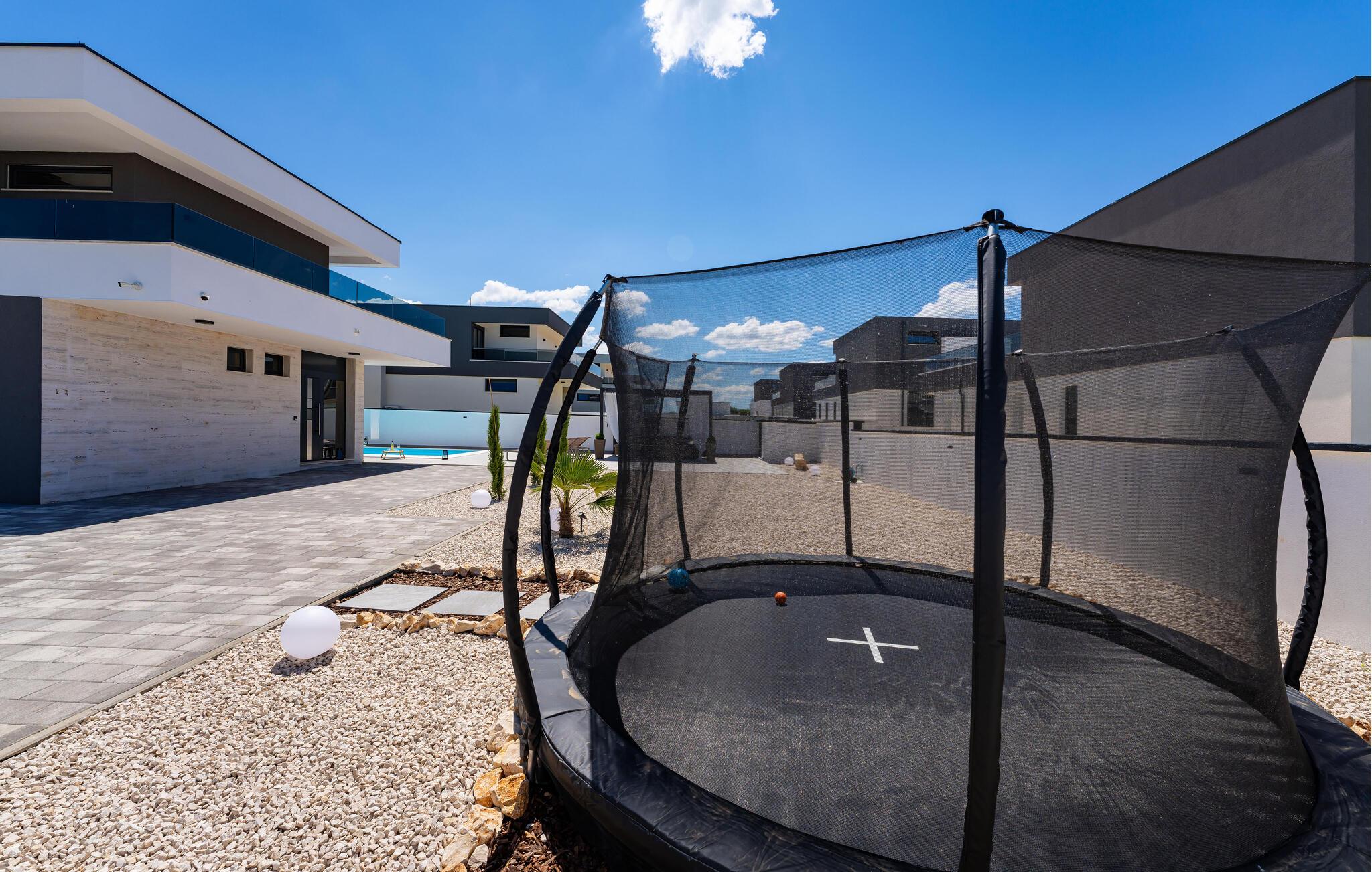Begynd dagene med en friskbrygget kop kaffe på den solrige terrasse. Nyd nogle afslappende timer på liggestolene og forkæl jer selv med en frisk dukkert i poolen når som helst. En basketballkurv er tilgængelig for aktive gæster, mens de små kan boltre sig i deres eget legeområde. Om aftenen kan I grille lækre måltider og samles til et måltid under åben himmel.