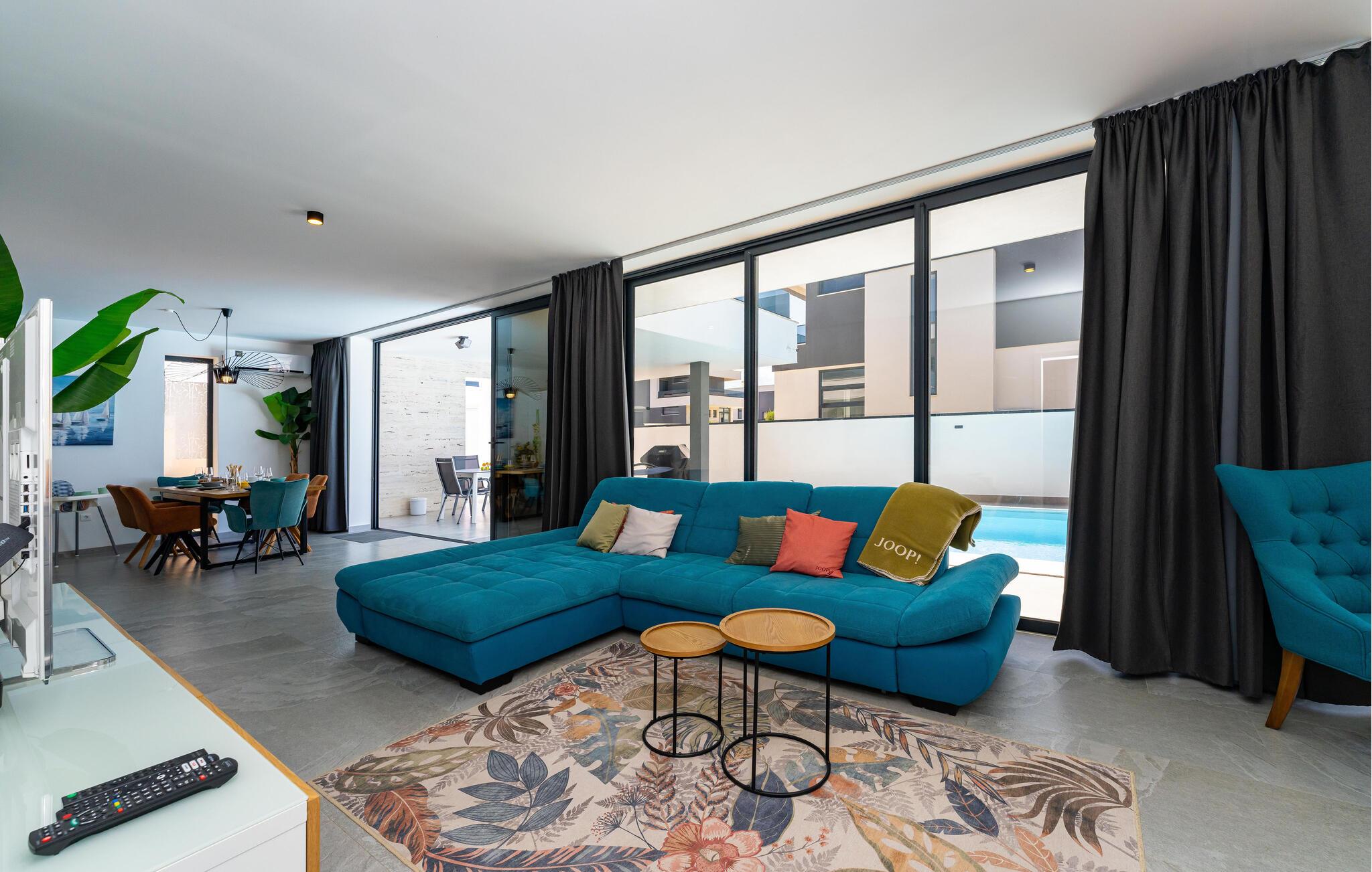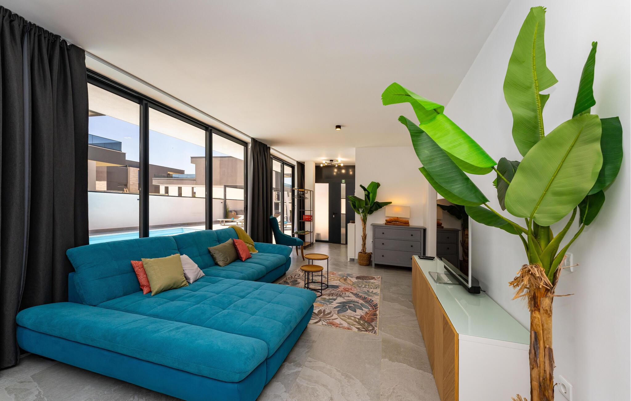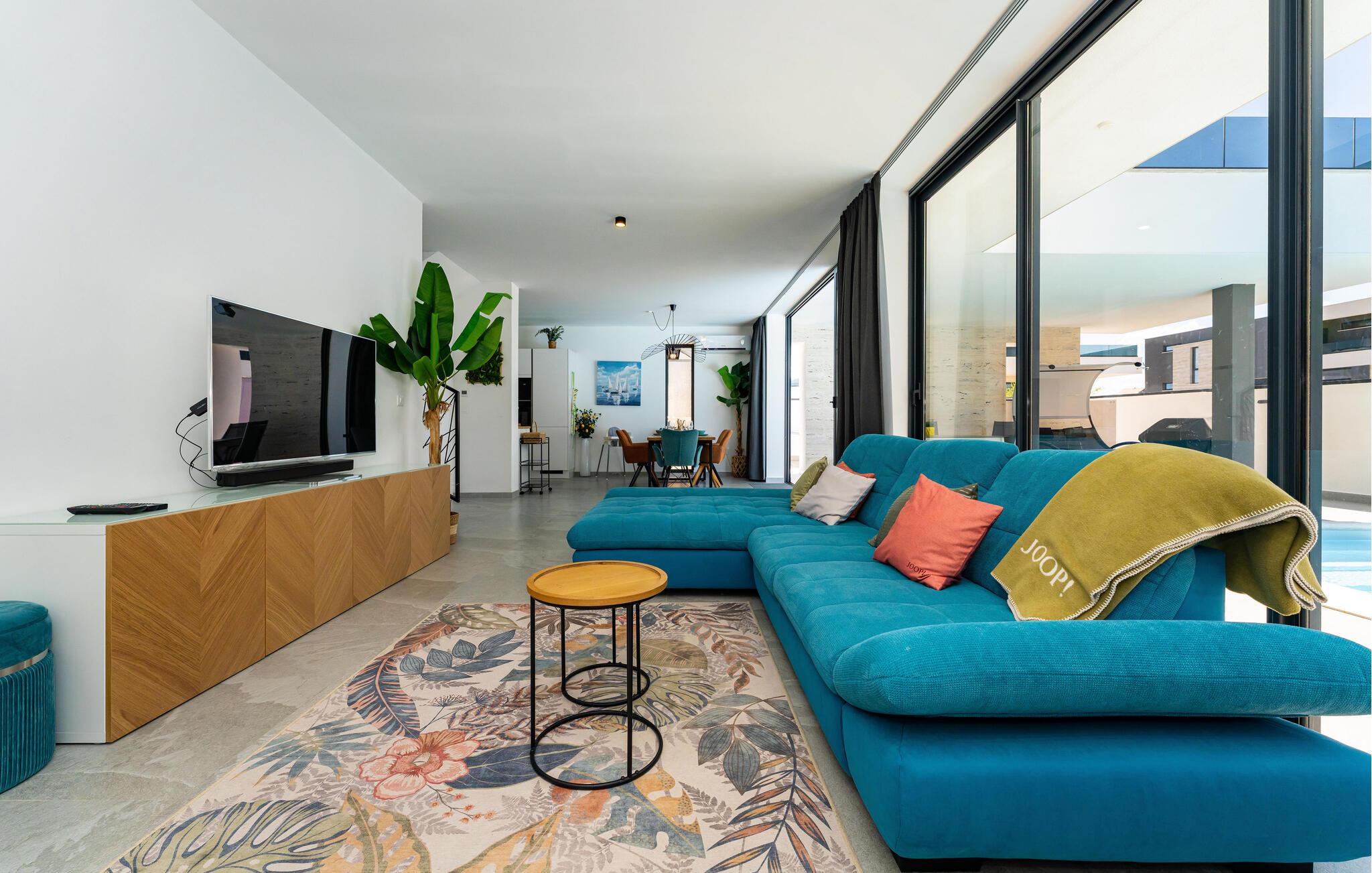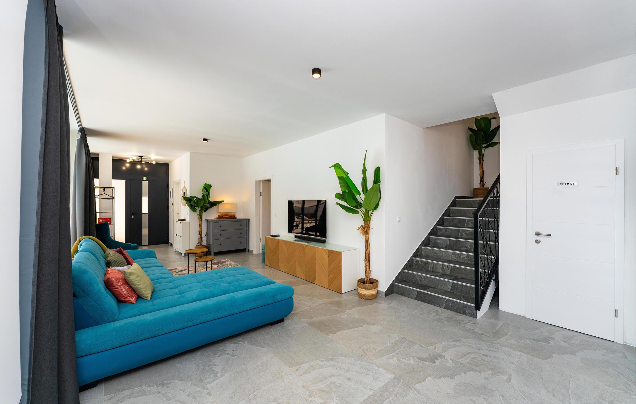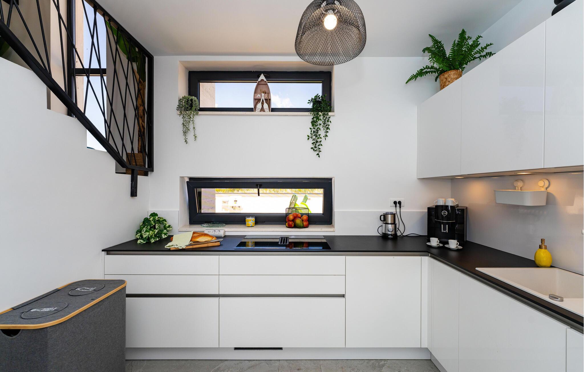 Den moderne bolig kan prale af store vinduer, der lukker masser af lys ind, og en indretning, der på smart vis kombinerer stil og komfort. Find jer til rette her. Bland iskolde drikkevarer i det veludstyrede køkken og tilbring afslappende eftermiddage på den komfortable sofagruppe – lyt til en lydbog, snak eller lav bare ingenting.