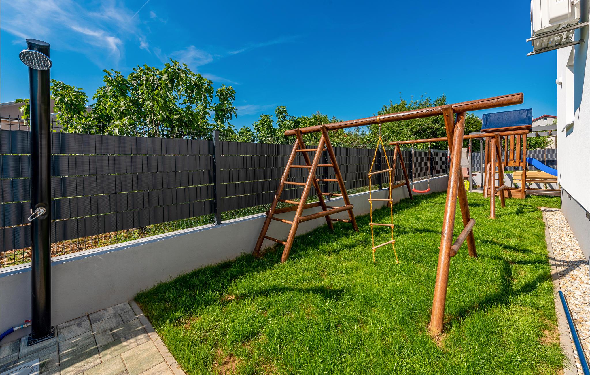 Huset er lyst og velholdt. Den fælles grund har en udendørs pool og legetøj til jeres børn samt en grill.