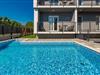 Moderne hus tæt på strand og by.