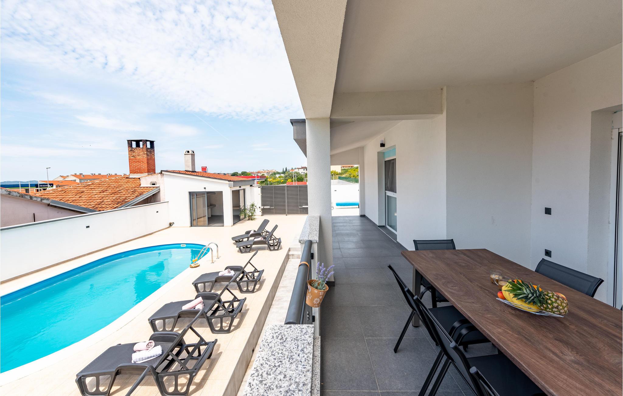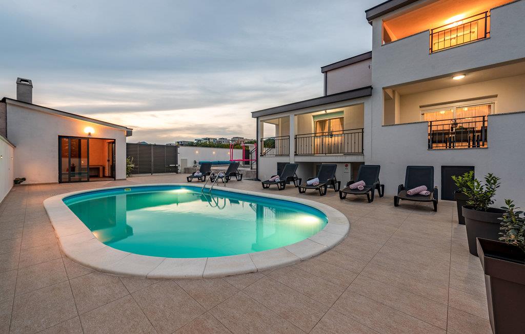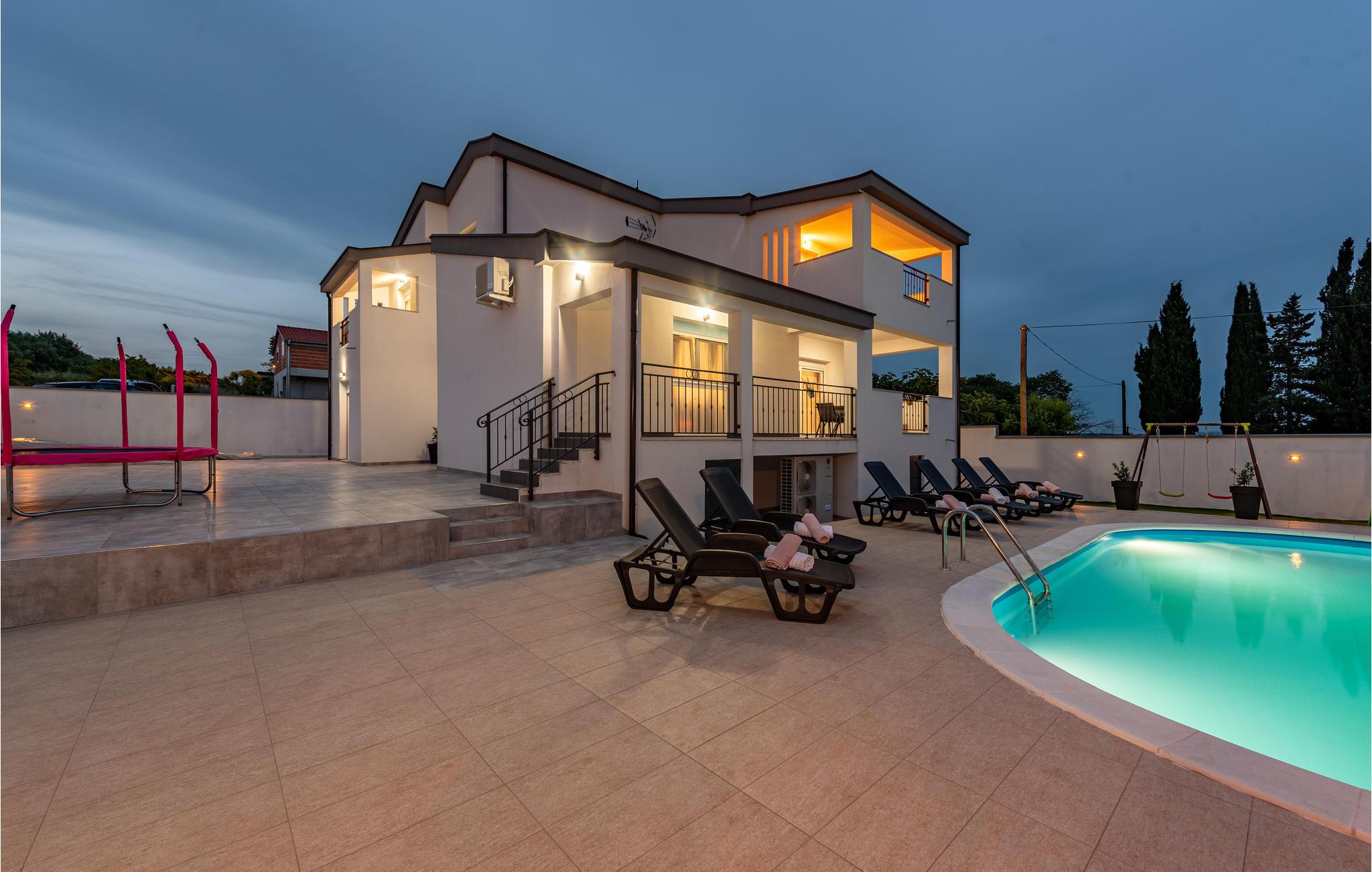 Dette feriehus ligger i et boligområde i den historiske by Zadar. Interiøret af høj kvalitet strækker sig over flere etager og gør et smagfuldt indtryk. For større eller flere familier, der drømmer om en afslappende ferie med komfort og underholdning, er dette sommerhus bare perfekt.