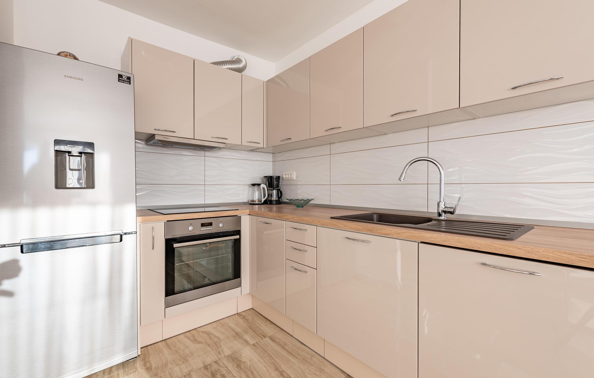 Fra jeres bolig kan I hurtigt nå den imponerende gamle bydel i Zadar, som tiltrækker med en række forskellige seværdigheder. Besøg for eksempel Sankt Donatus-kirken fra 800-tallet, Forum Romanum eller oplev det originale havorgel ved havnen. Gå en tur gennem de gamle gader i den gamle bydel, fordyb jer i den unikke atmosfære og lad jer senere rive med af det rige kulinariske udbud. Ved færgehavnen kan I også besøge offshore-øerne på en dagstur.
