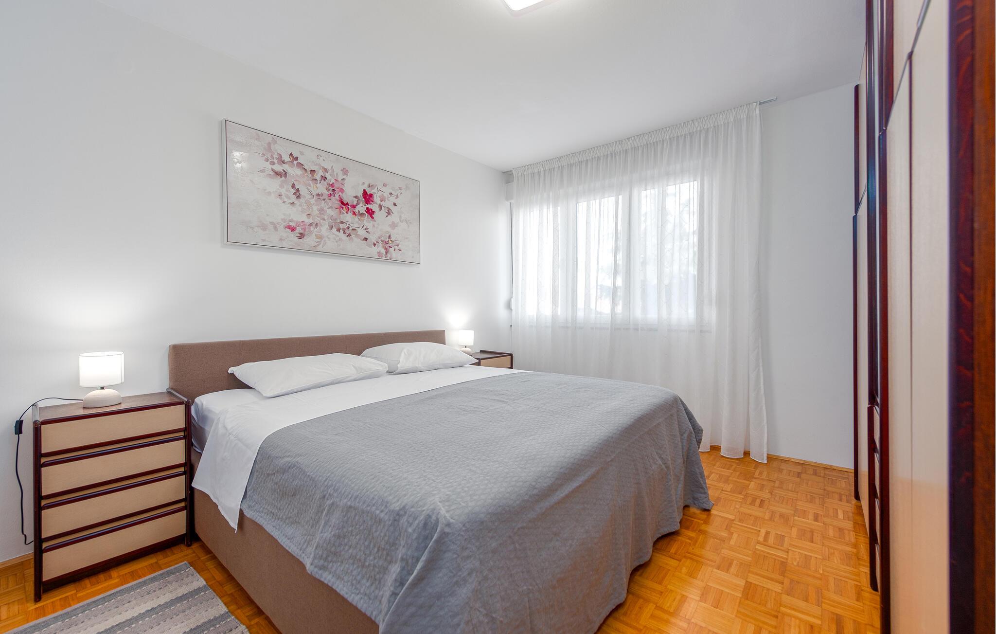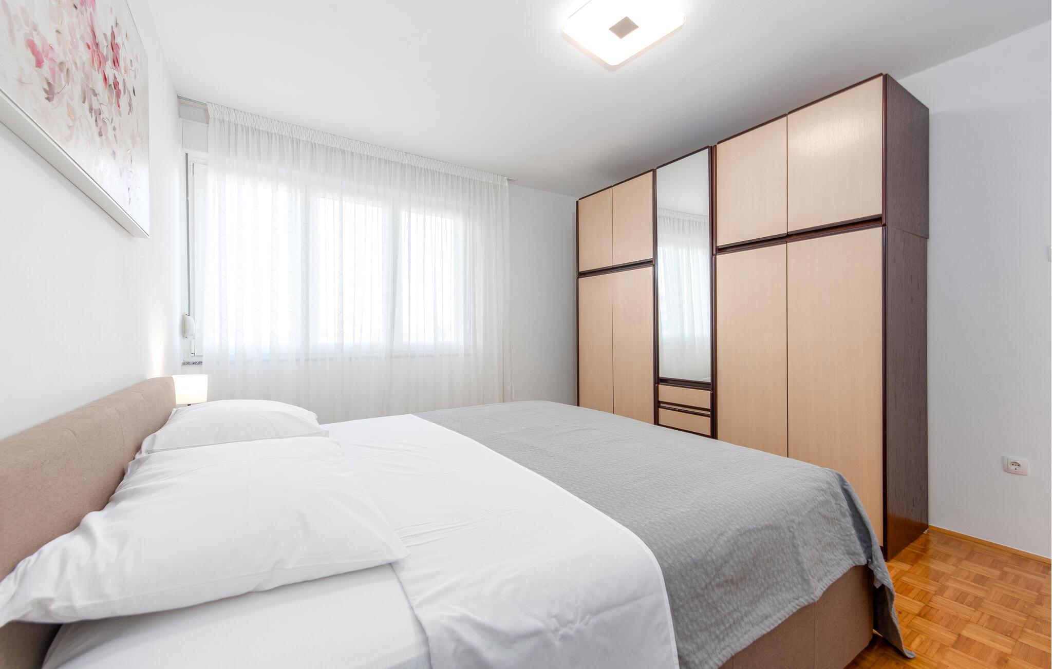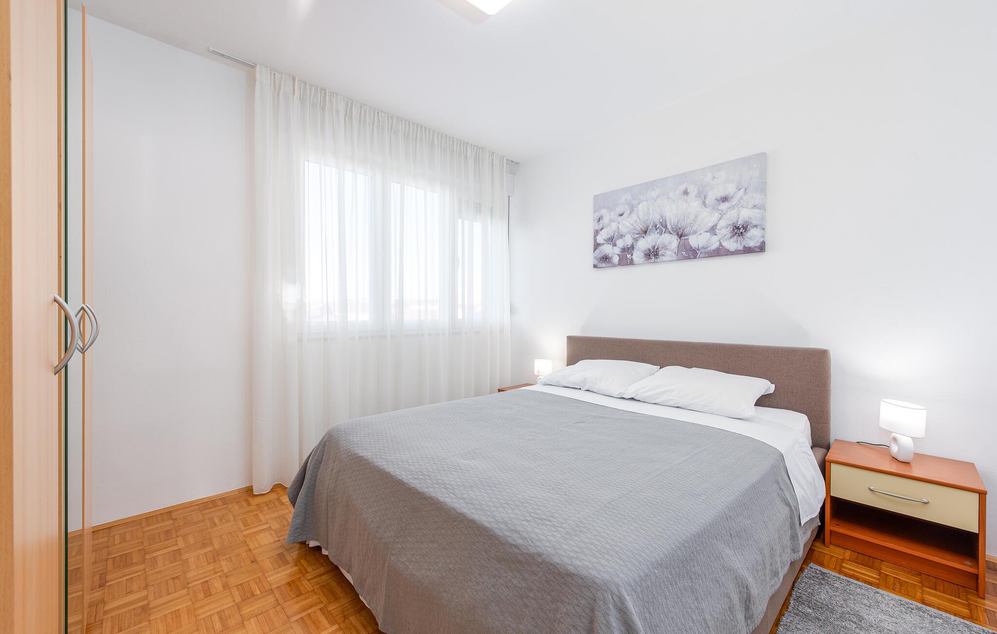Denne centralt beliggende ferielejlighed ligger i et boligområde i den historiske by Zadar ved Adriaterhavskysten. De veludstyrede værelser giver et lyst og hjemligt indtryk og byder jer og jeres familie velkommen til en afslappet atmosfære. Om aftenen kan I nyde godt af det gode køkken og afslutte en begivenhedsrig dag med en sjov film.