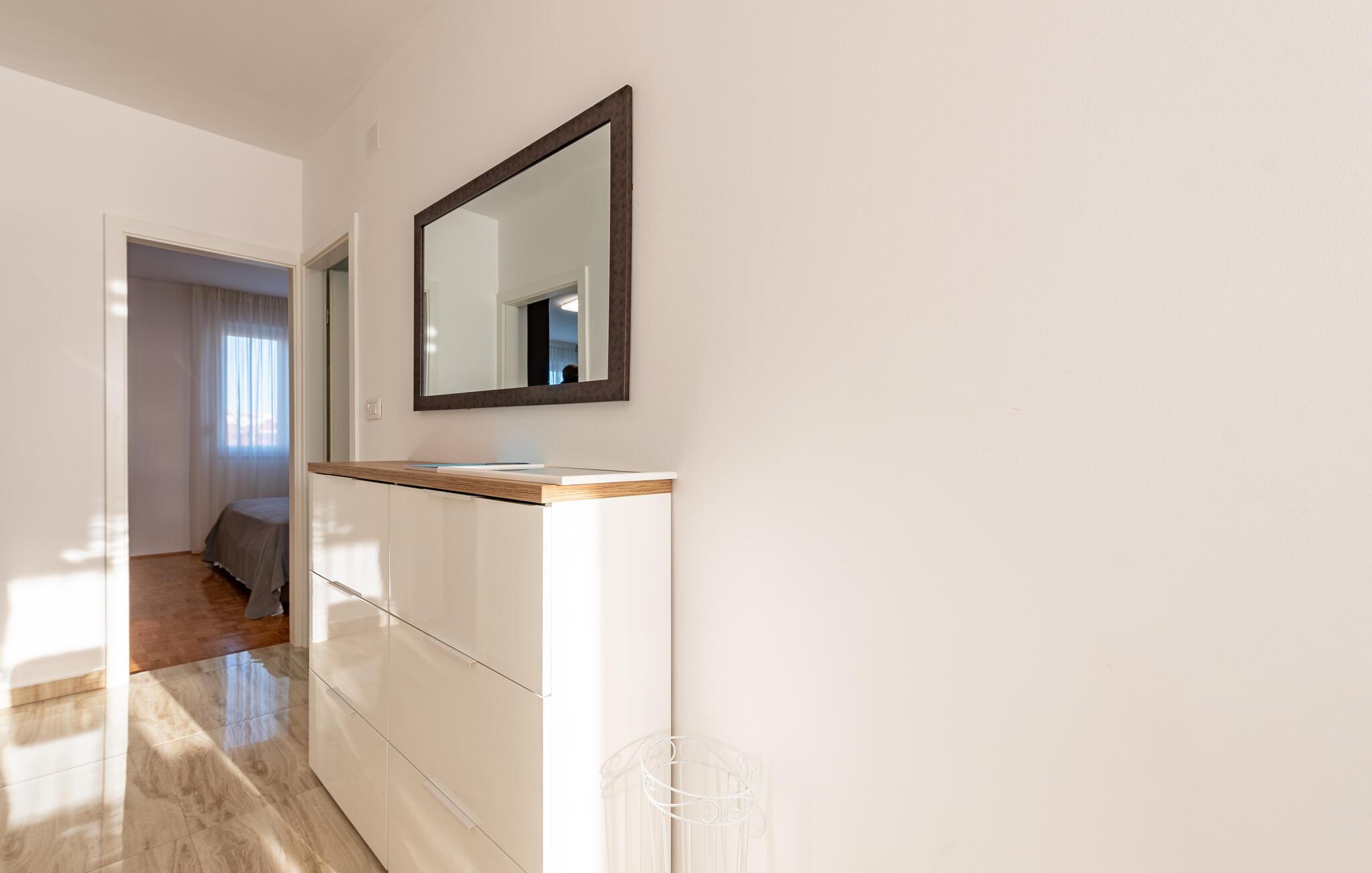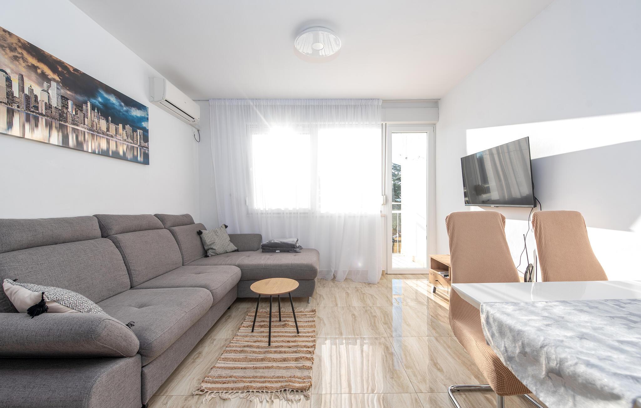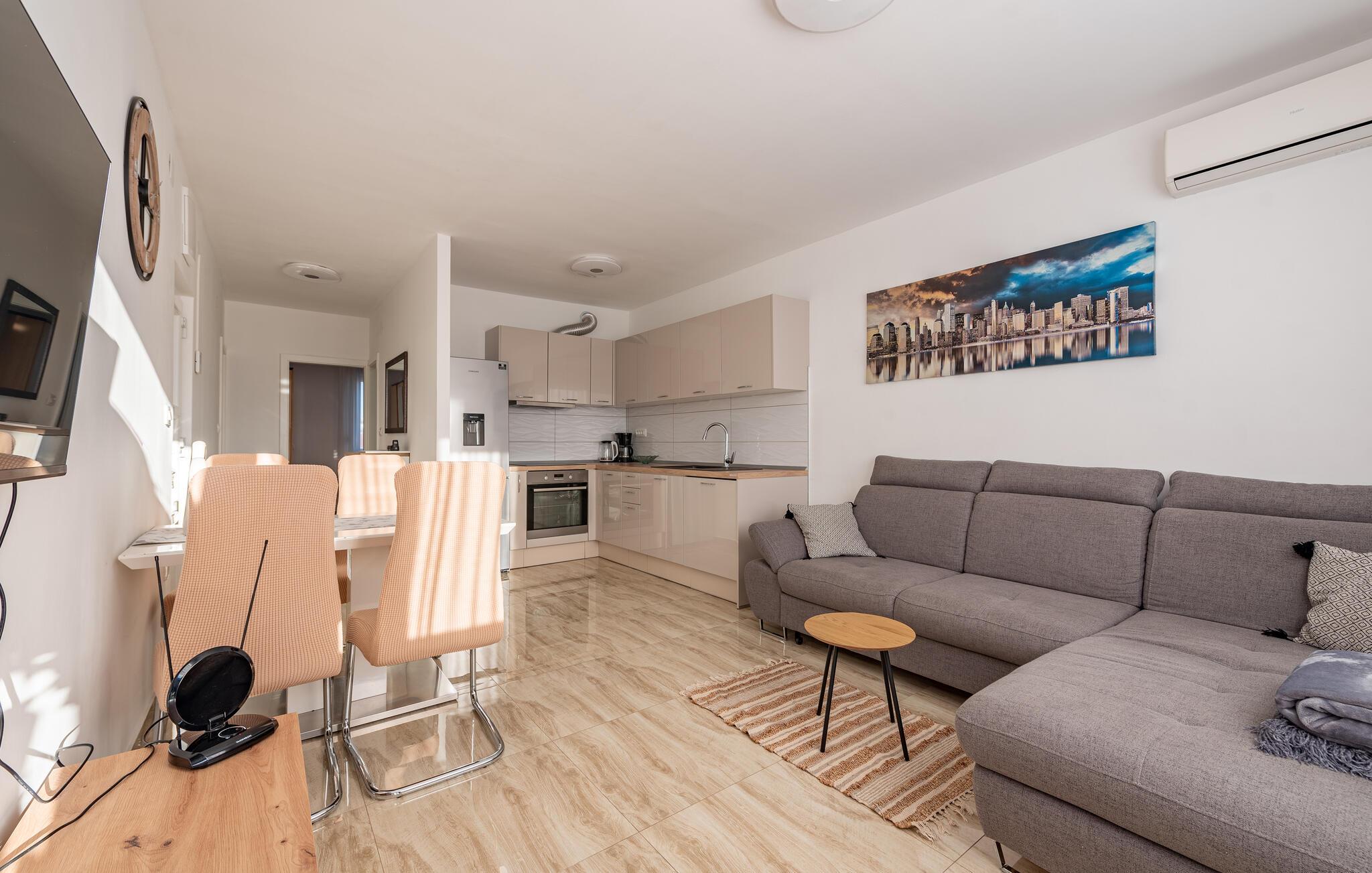 Denne centralt beliggende ferielejlighed ligger i et boligområde i den historiske by Zadar ved Adriaterhavskysten. De veludstyrede værelser giver et lyst og hjemligt indtryk og byder jer og jeres familie velkommen til en afslappet atmosfære. Om aftenen kan I nyde godt af det gode køkken og afslutte en begivenhedsrig dag med en sjov film.