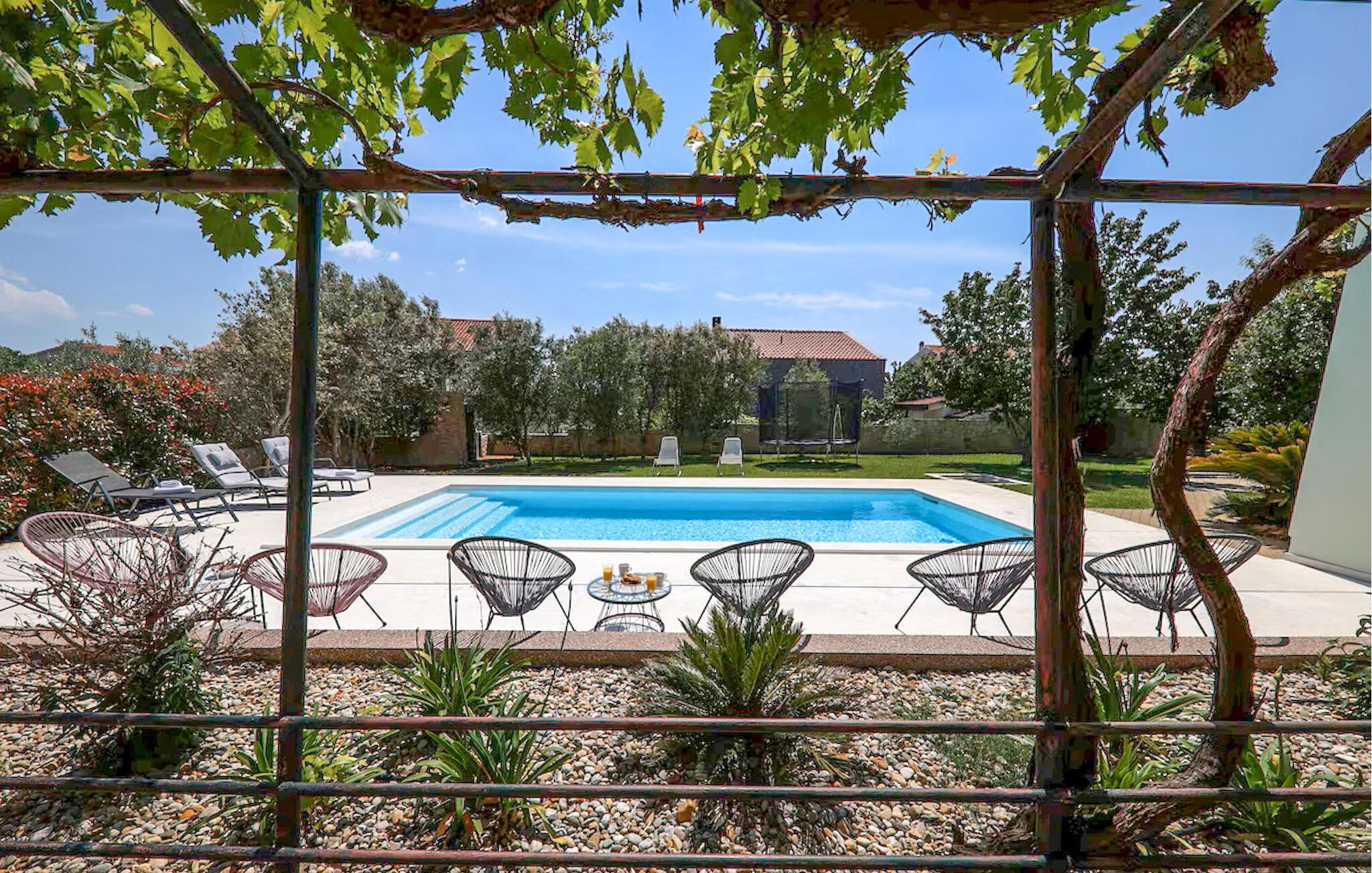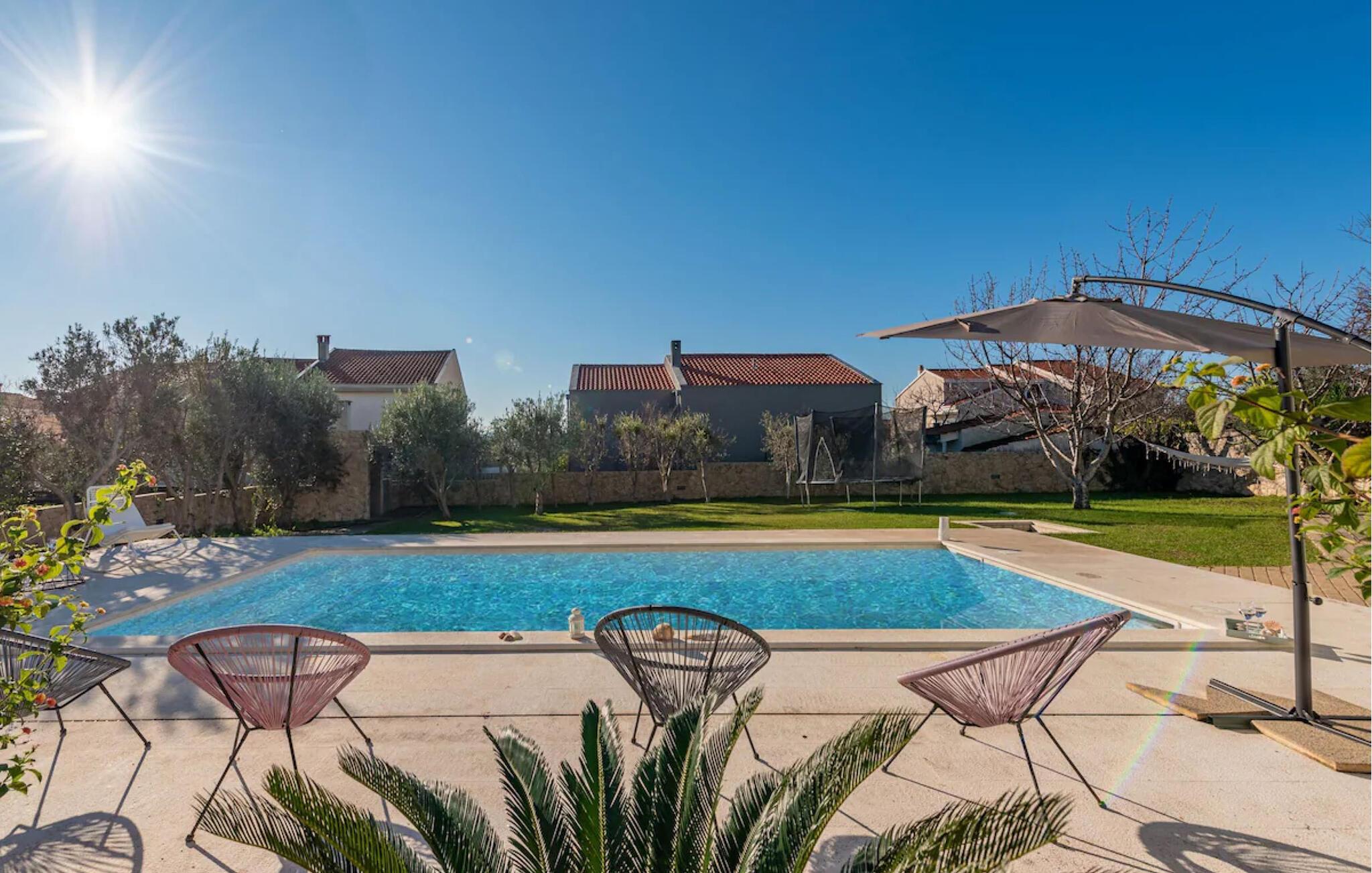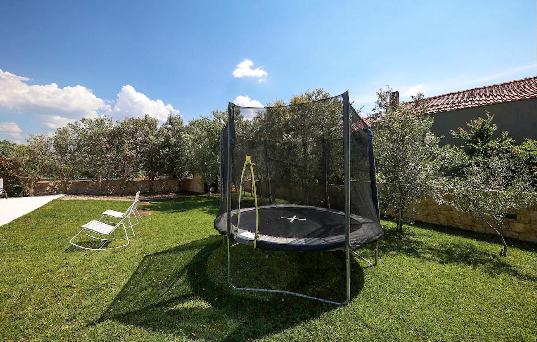 Nyd det rummelige udendørsområde med den private pool, omgivet af en velholdt have og komfortable liggestole. Dyk ned i det krystalklare vand og lad hverdagen bag jer. Begynd dagen med morgenmad på den overdækkede terrasse. Og tilbring hyggelige aftener på terrassen eller på en af ??altanerne med udsigt til området og havet. børnene vil elske den store have og trampolinen samt de mange andre legeredskaber. Sjov og afslapning for hele familien er dagens orden her.