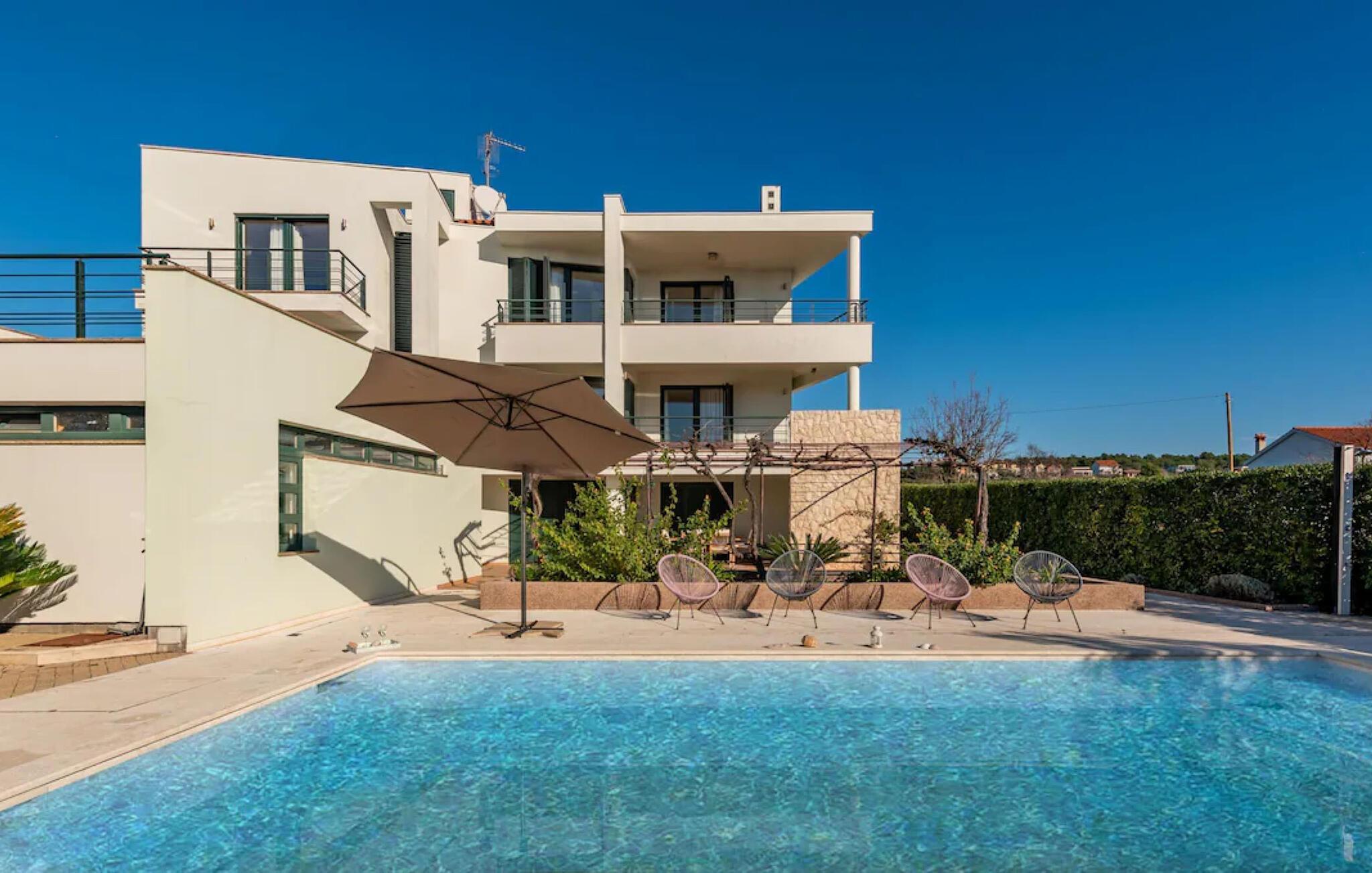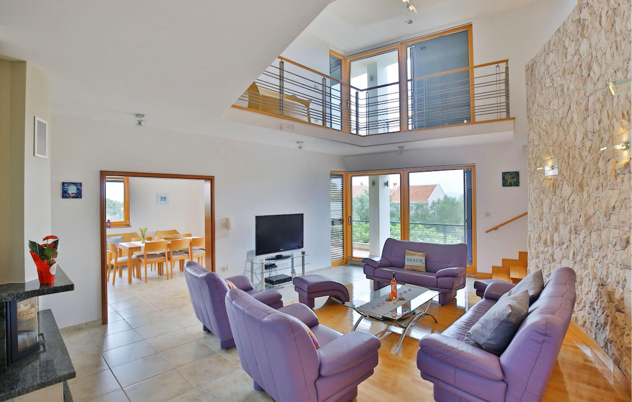 Dette rummelige feriehus i Zadar med plads til en større gruppe tilbyder jer en dejlig blanding af afslapning og eventyrmuligheder. Tilbered måltider i det fuldt udstyrede køkken og spis derefter i den elegante spiseplads. Brug de komfortable møbler i stuen til at slappe af. De komfortable sofaer og den moderne atmosfære skaber den ideelle atmosfære.