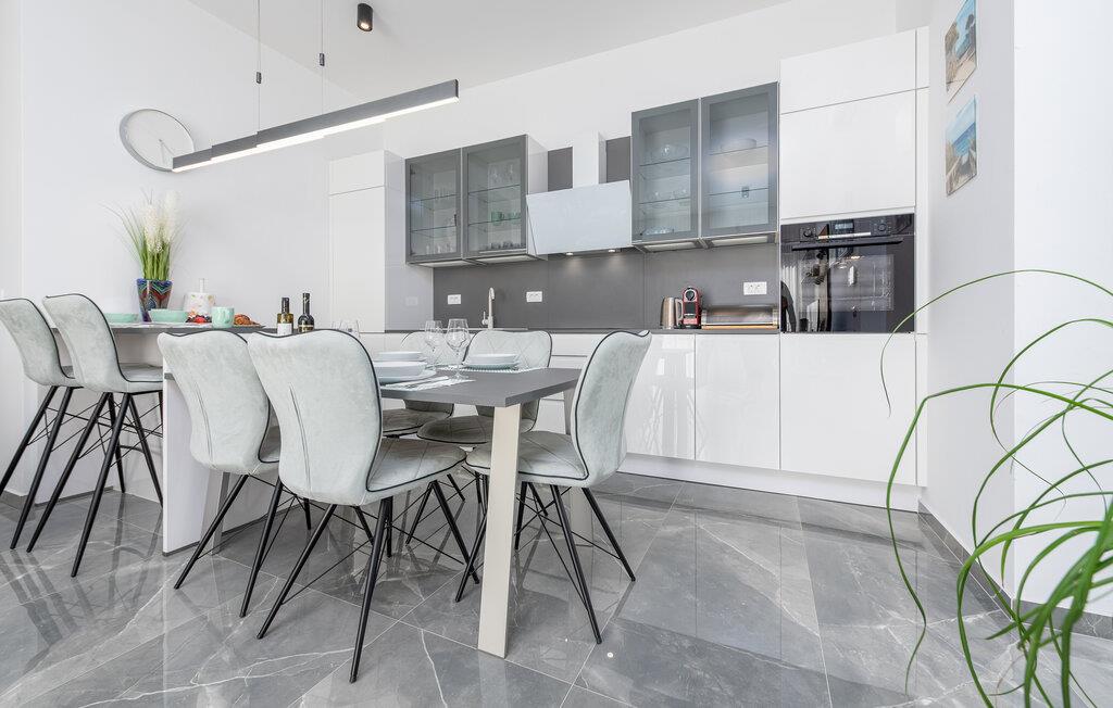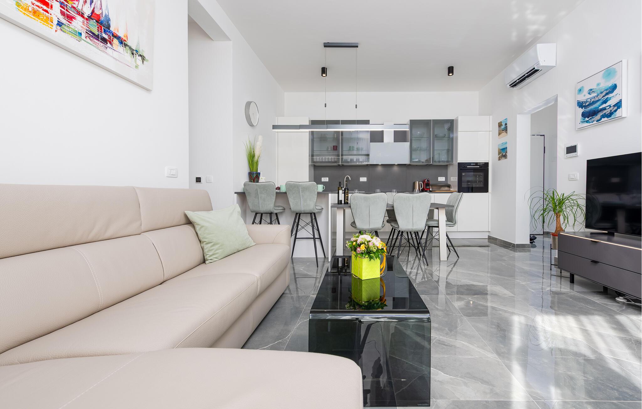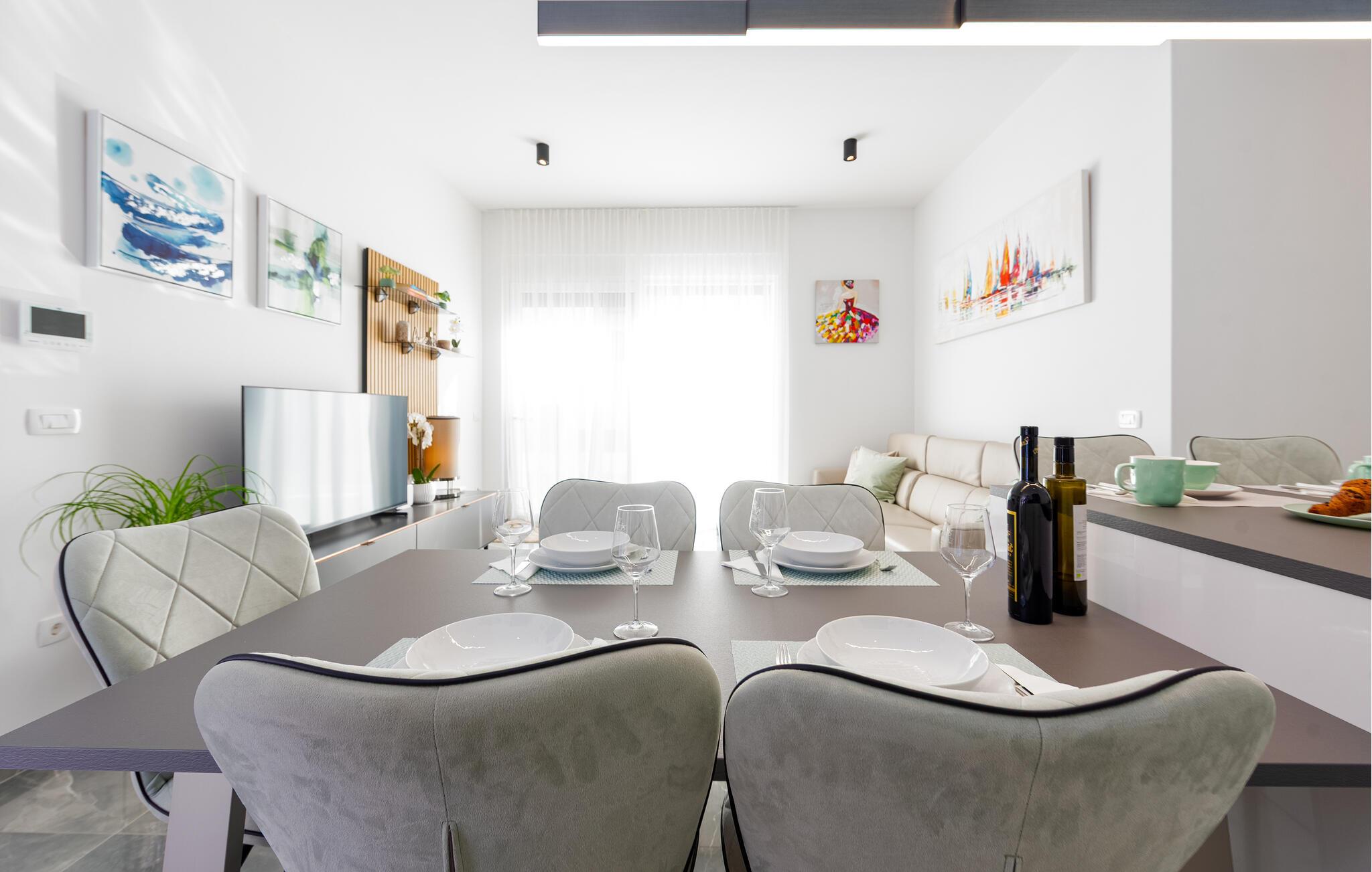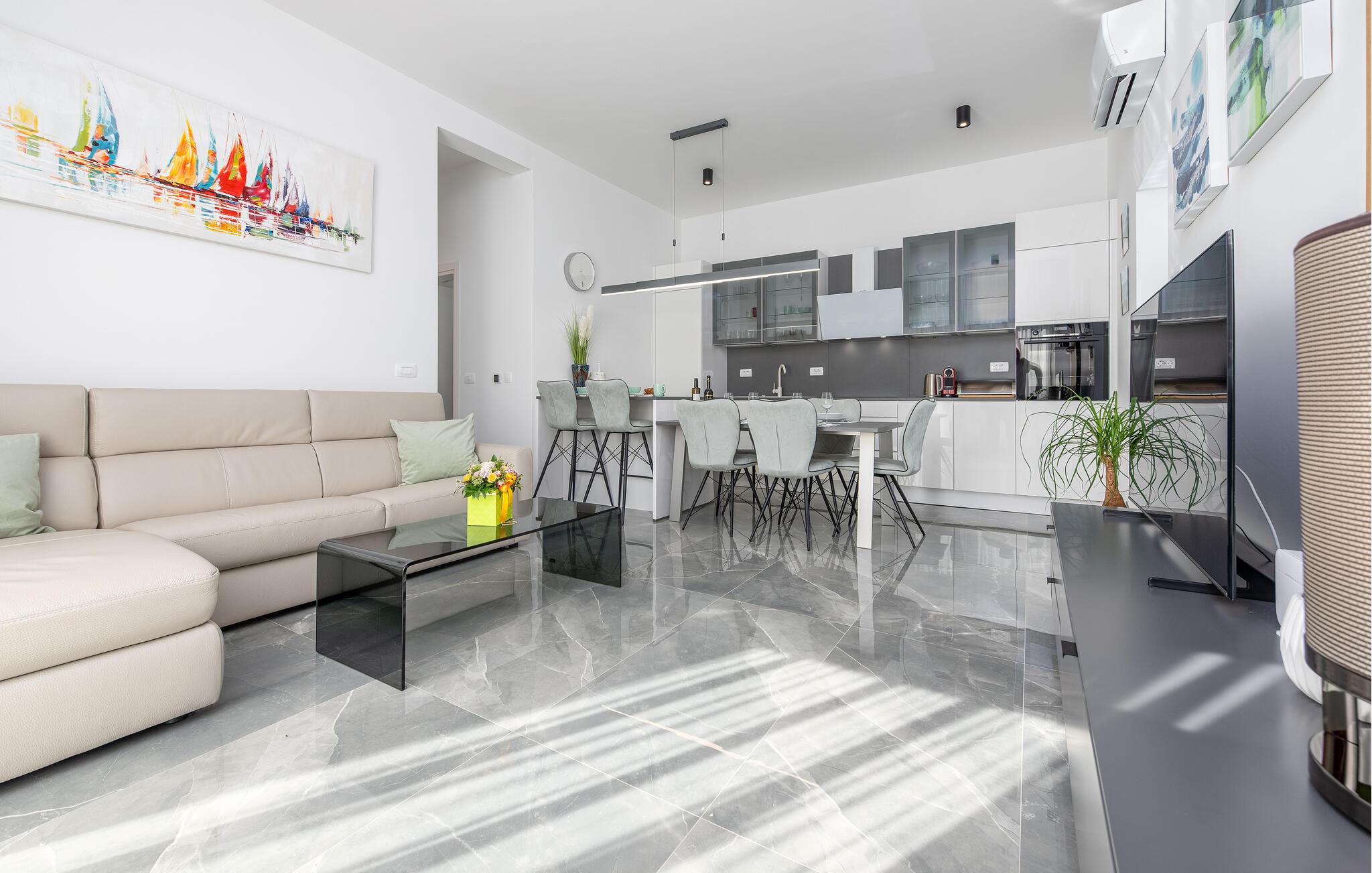 Nyd en dejlig ferie i denne komfortable ferielejlighed nær stranden. Denne moderne lejlighed kombinerer elegance og komfort på harmonisk vis. Masser af varmt naturligt lys, diskrete farver og et elegant sofaområde skaber en fredelig atmosfære, hvor I hurtigt kan slappe af og genoplade batterierne. Uanset om I streamer jeres yndlingsserie, lytter til en interessant podcast eller tilbereder lækre måltider i det moderne køkken – her sætter I tempoet for jeres dag. Om morgenen inviterer terrassen med den behagelige sofa jer til at blive hængende. Slap af her med en duftende kaffe og en let morgenmad, inden I begiver jer ud på dagens aktiviteter. Om eftermiddagen kan I slappe af her eller nyde jeres ferielæsning med en kølig drink. Tag en slentretur til stranden og nyd det krystalklare vand i det kroatiske Adriaterhav. Bagefter kan I udforske den charmerende gamle bydel i Zadar med dens historiske bygninger og maleriske gyder. Om aftenen kan I blive fortryllet af det berømte Havorgel og lysshowet "Hilsen til solen". I kan også tage en tur til de nærliggende nationalparker for at opleve Kroatiens naturlige mangfoldighed.