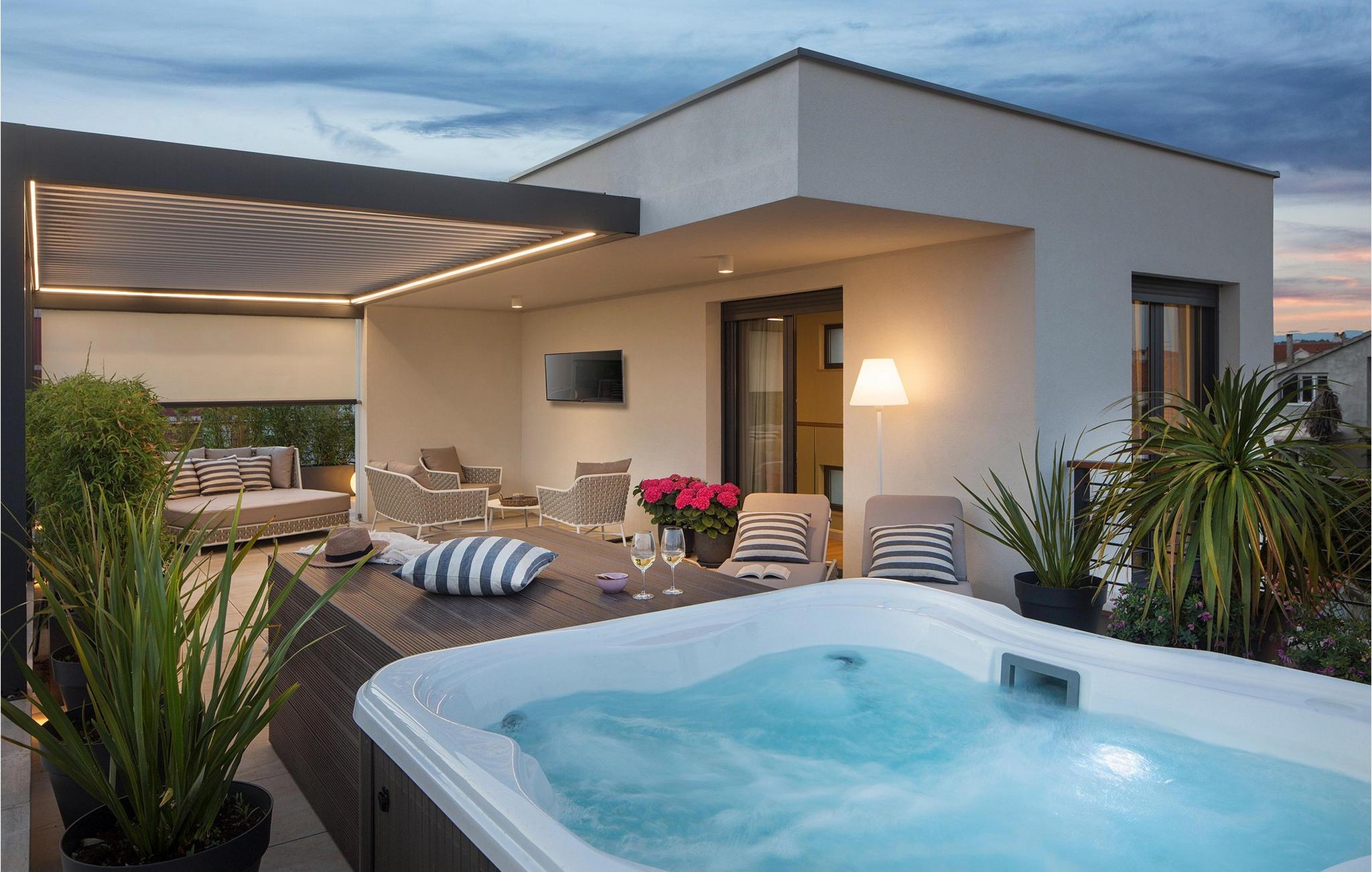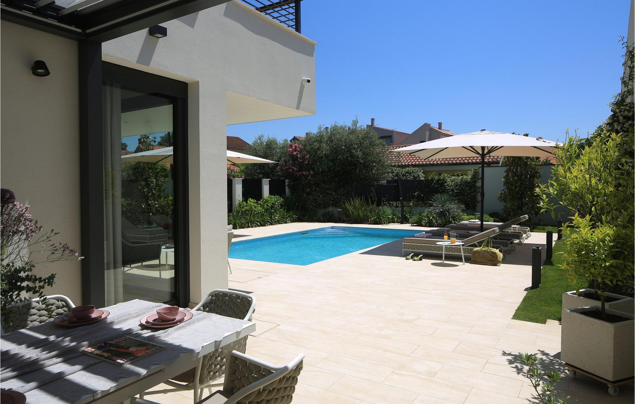 Nyd denne luksuriøse villa med pool og tagterrasse – jeres tilflugtssted i Zadar. Den elegante Villa Tereza byder jer velkommen i hjertet af Zadar og tilbyder lyse, rummelige soveværelser og stilfulde opholdsområder. Det fuldt udstyrede køkken og spisepladsen lægger op til at hygge jer, mens haven med swimmingpool og grillplads er ideel til afslappende ferier. Et højdepunkt er tagterrassen med spabad, som tilbyder en fantastisk udsigt over byen – ideel til at afslutte dagen på en afslappet måde. Zadar, en af Kroatiens smukkeste byer, har som noget særligt en rig kulturarv, en malerisk gammel bydel og en pulserende middelhavsatmosfære. Restauranter, caféer og butikker er direkte tilgængelige fra villaen. Udnyt den centrale beliggenhed til udflugter til de nærliggende nationalparker Kornati, Krka eller Paklenica. Disse tilbyder betagende landskaber, vandrestier og muligheder for bådture eller svømning – en uforglemmelig ferie er garanteret. Bemærk venligst: Ejendommen accepterer ikke ungdomsgrupper under 30 år eller polterabender. Bookinger fra sådanne grupper vil blive afvist, selv ved ankomst eller under opholdet, uden refusion.