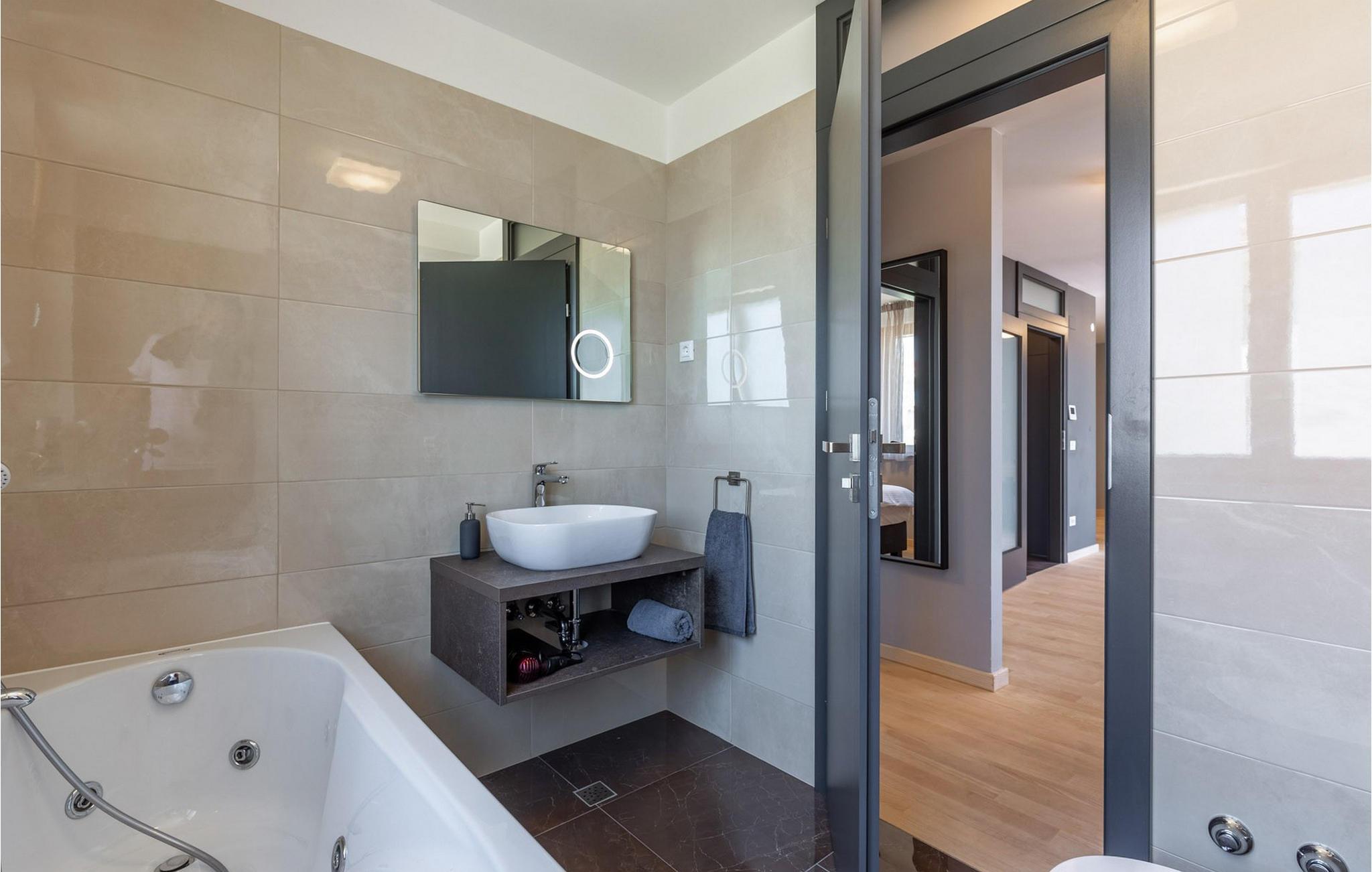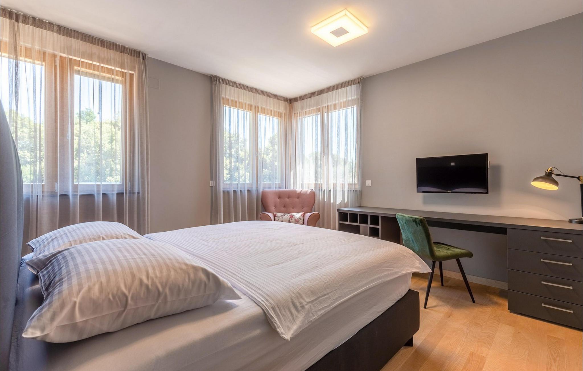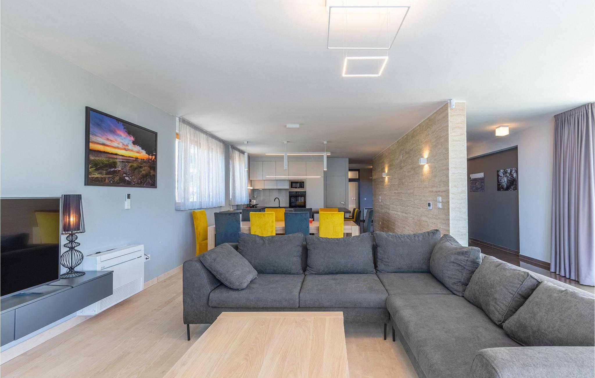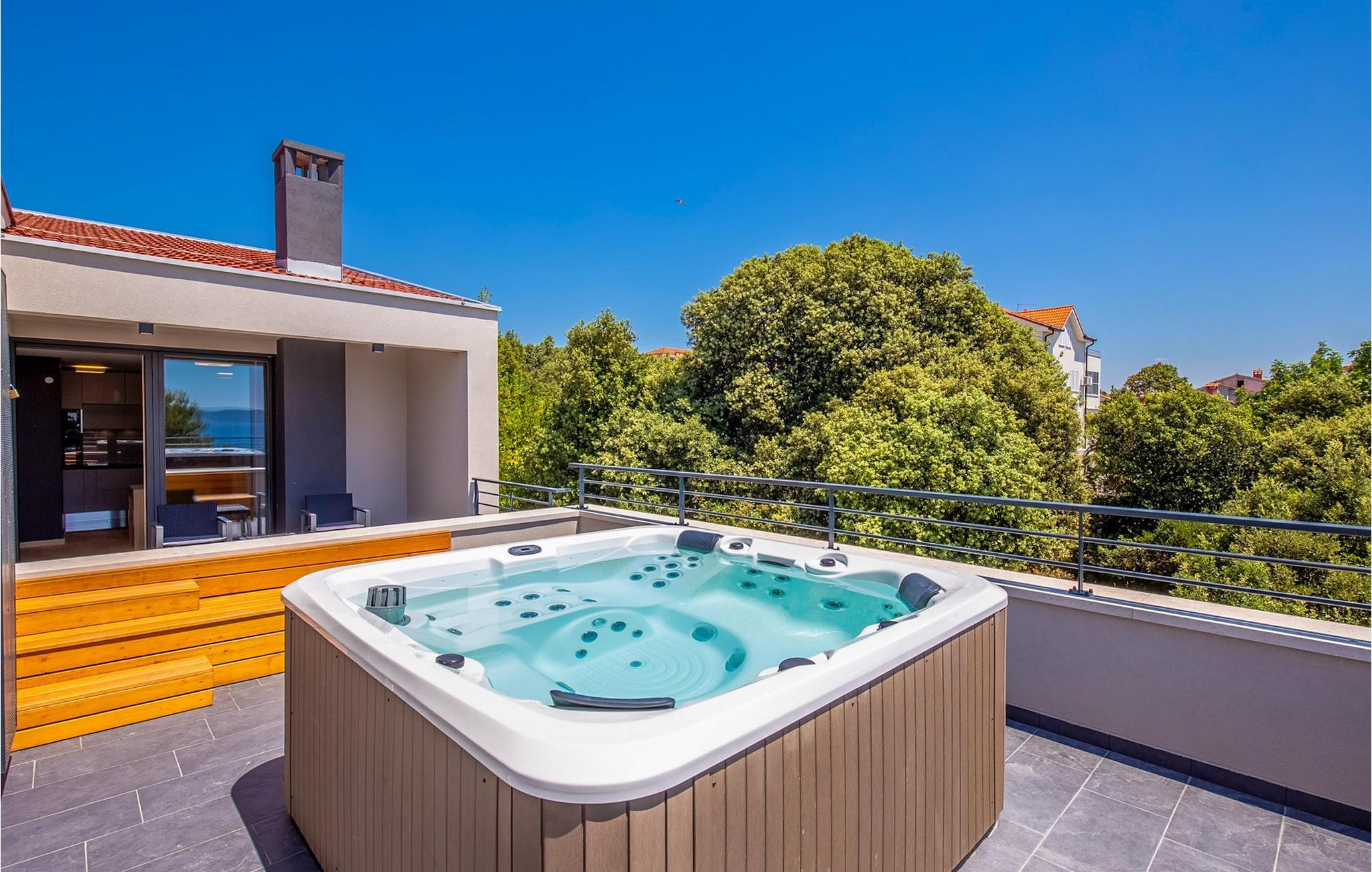 Vågn op hver morgen til havudsigt i denne smukke villa med swimmingpool, udendørs pool og spabad. Nyd jeres ophold i den eksklusive Villa Luca, kun få meter fra havet, med en betagende udsigt over Zadars øer. Dette luksuriøse feriehus tilbyder alt, hvad I behøver for en perfekt ferie – fra en stilfuld indendørs pool og sauna til et fitnessrum og hyggelige lounges. Udforsk soveværelserne og opholdsområderne, der er fordelt på flere etager, og bliv imponeret af de luksuriøse faciliteter. Det åbne køkken med grill lægger op til at nyde hyggelige madlavningsaftener, mens I slapper af på en af de rummelige terrasser eller nyder den storslåede udsigt i spabadet. Den velholdte have med udendørs pool og liggestole sikrer ren afslapning. Lyt til havets brusen og saml jer til en aftengrillfest på terrassen. Kožino er en rolig ferieby, der fortryller med sine uberørte strande og maleriske middelhavsvegetation. Her kan I tage lange gåture ved havet eller slappe af i en af de stilfulde strandbarer med cocktails og kulinariske lækkerier. Kun få kilometer væk venter den pulserende by Zadar på jer med sin rige kulturarv, spændende seværdigheder og udflugter til imponerende nationalparker. Den perfekte kombination af ro og underholdning gør Kožino til et ideelt feriemål for alle, der elsker naturen og havet. Bemærk venligst: Ejendommen accepterer ikke ungdomsgrupper under 30 år eller polterabender. Bookinger fra sådanne grupper vil blive afvist, selv ved ankomst eller under opholdet, uden refusion.