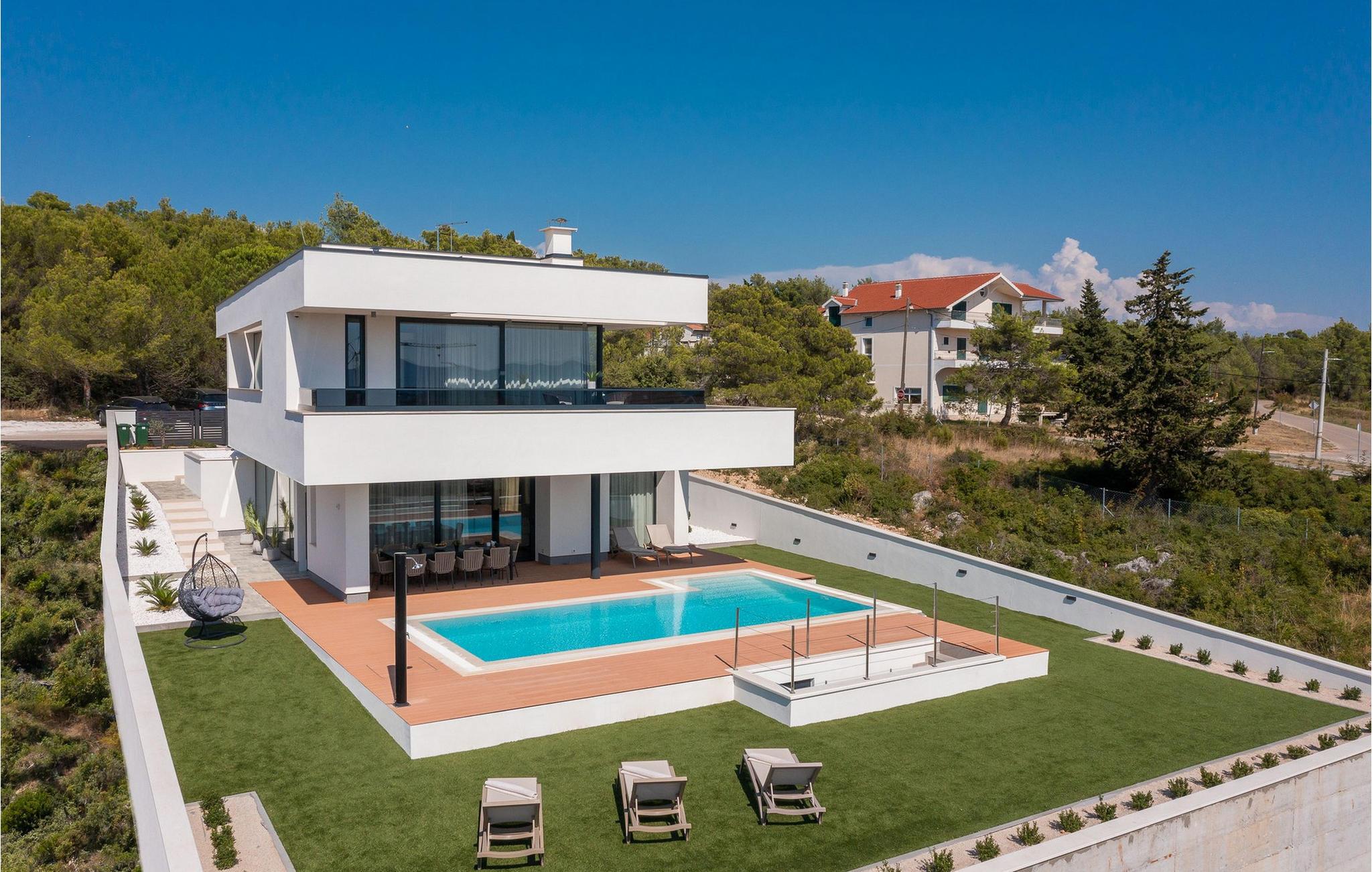 Den storslåede Villa Calvi byder jer velkommen lige uden for den charmerende by Zadar med et rummeligt, højkvalitets og smagfuldt møbleret interiør. Skab kulinariske lækkerier, planlæg jeres udflugter over harmoniske måltider i den hyggelige spisestue, brug træningsudstyret til jeres daglige træning, og slap af i saunaen. find sammen til en god samtale i den komfortable stue eller fordyb jer i jeres yndlingsferiebøger.