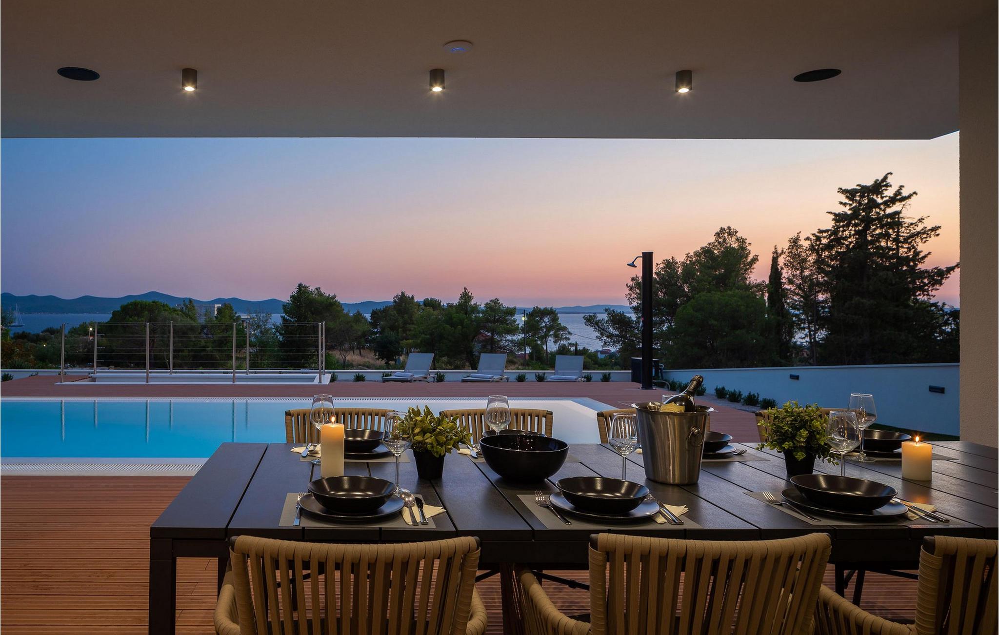 Jeres pool giver jer mulighed for at få en frisk dukkert i dagens varmeste timer og inviterer jer takket være den stemningsfulde belysning også til at svømme om natten. Gå en tur gennem Zadars gamle bydel med det berømte Havorgel og Solhilsen, og forkæl jer selv med kroatiske specialiteter i en af ??de mange restauranter. Tag en bådtur til de nærliggende øer som Dugi Otok eller snorkel i de krystalklare bugter i Kornati-øgruppen. Udforsk Krka Nationalpark med dens imponerende vandfald, besøg maleriske kystbyer som Nin eller Pag, og slap af på de smukke strande omkring Zaton og Bibinje.