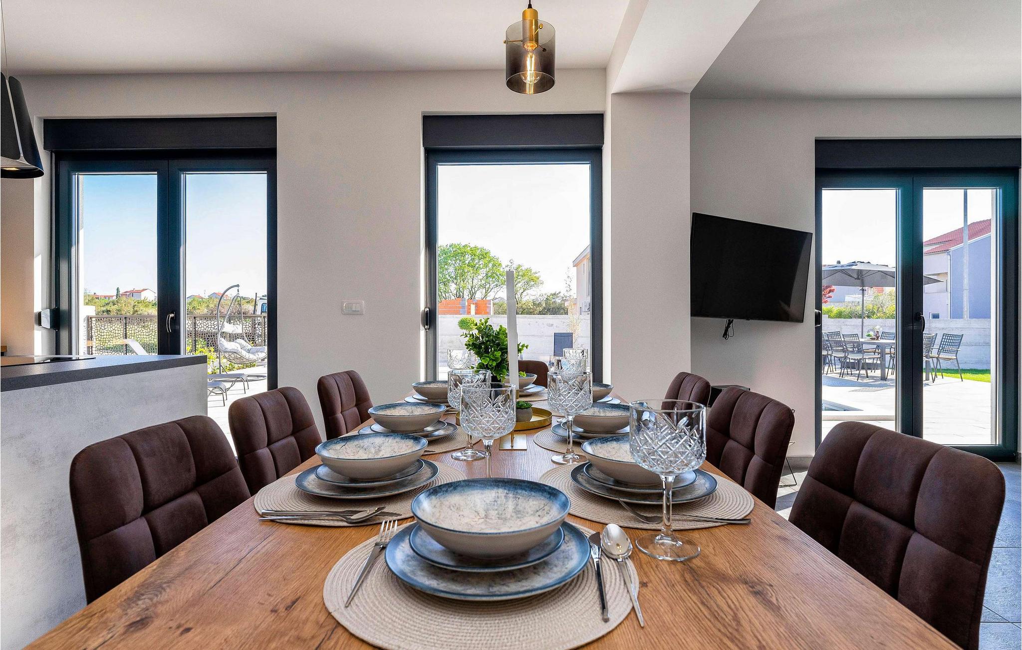 Den luksuriøst møblerede Villa Madis ligger i den smukke by Zadar og har et lyst og stilfuldt interiør. Tilbered lækre måltider med friske råvarer fra markedet i godt selskab, planlæg jeres udflugter over harmoniske måltider i det åbne opholdsområde, og efter en begivenhedsrig dag kan I samles i den behagelige sofa til en god samtale eller en spilleaften.
