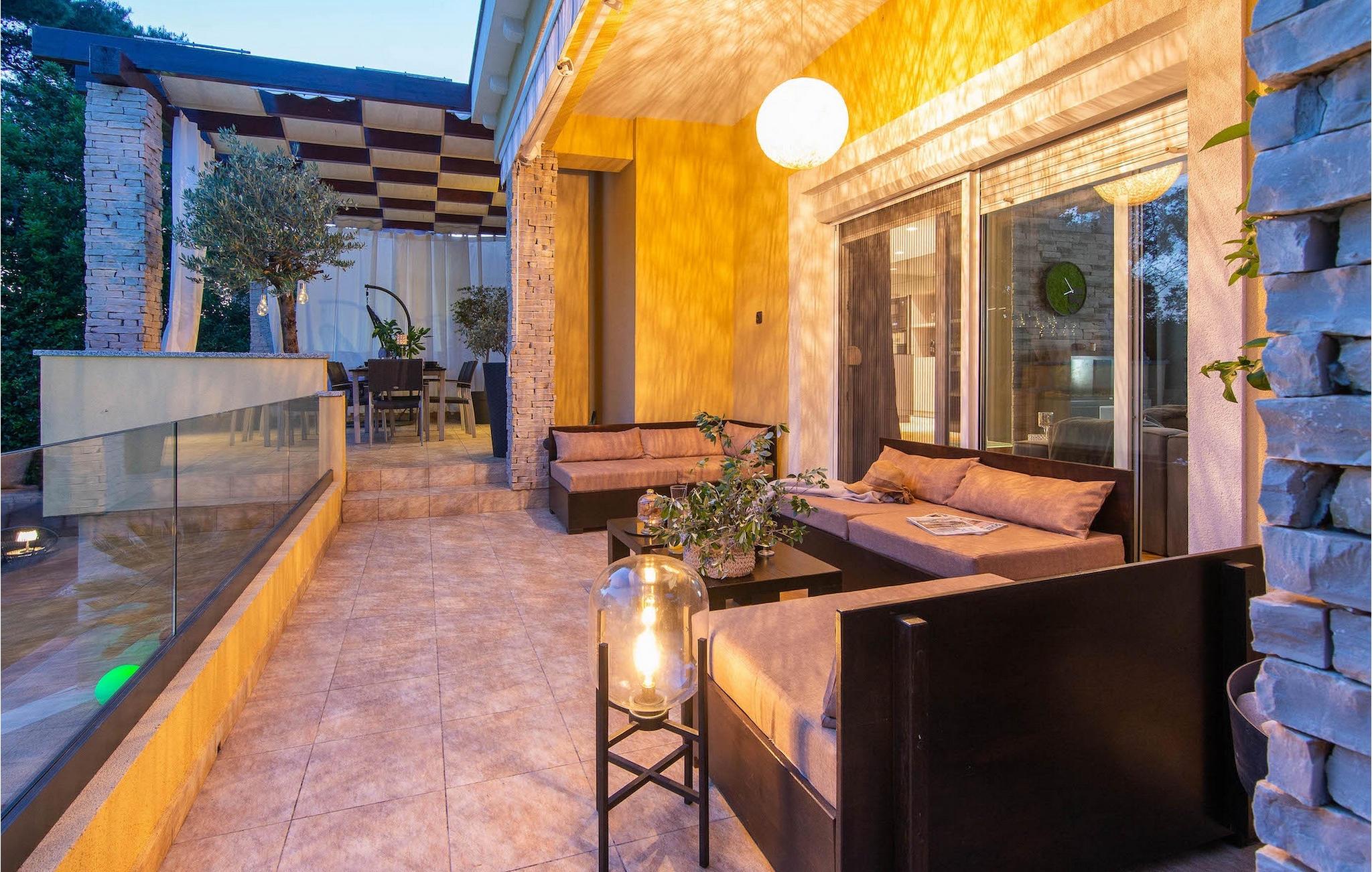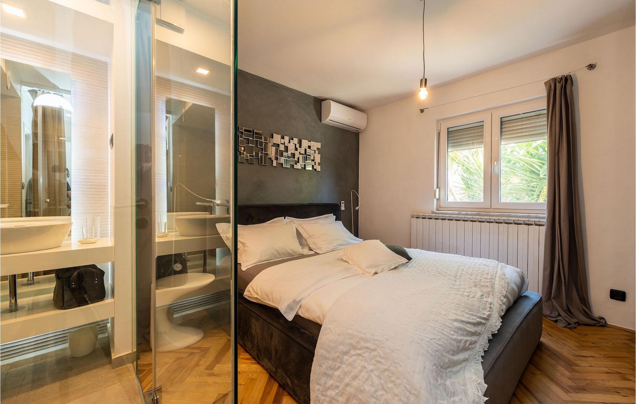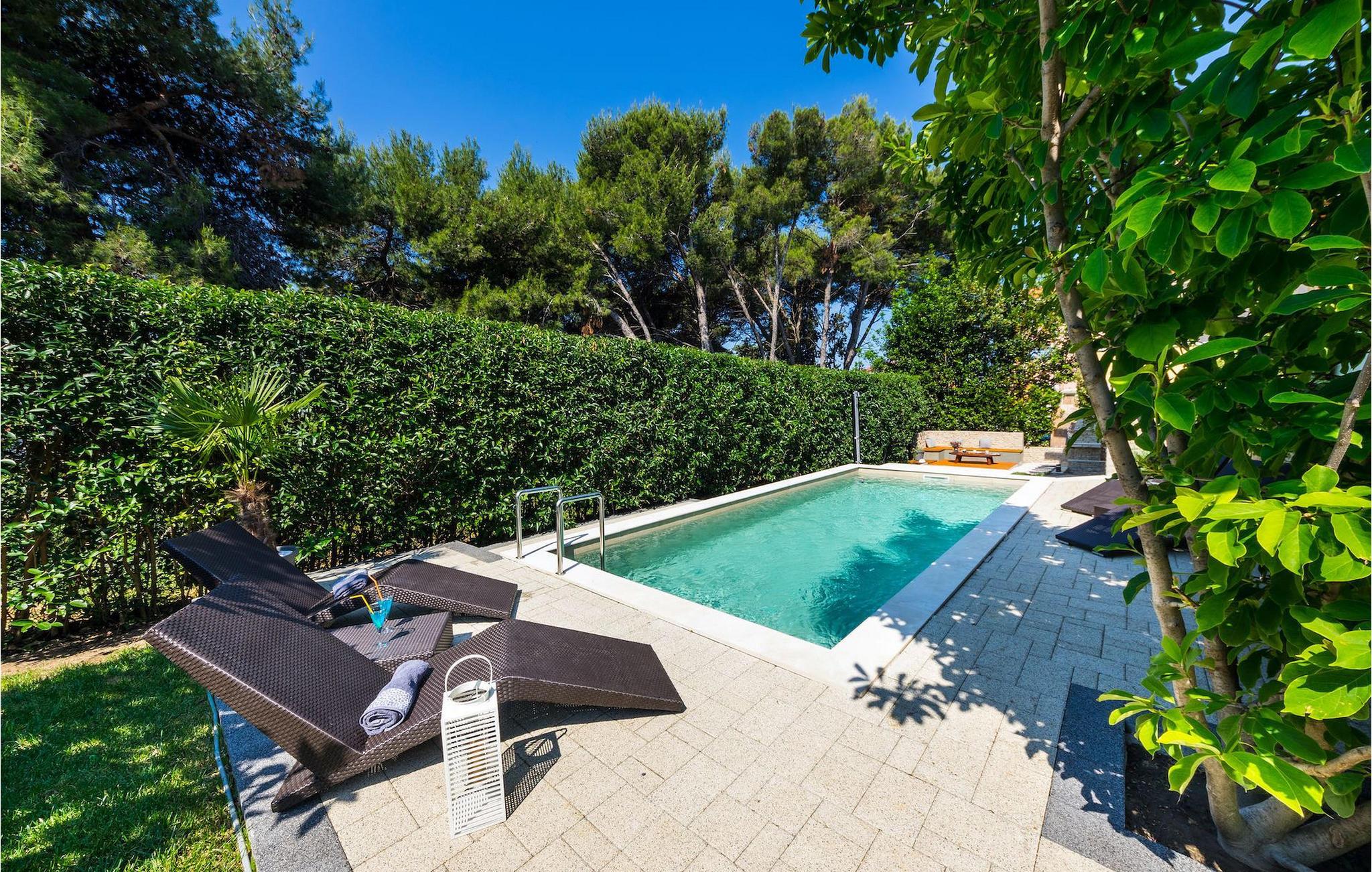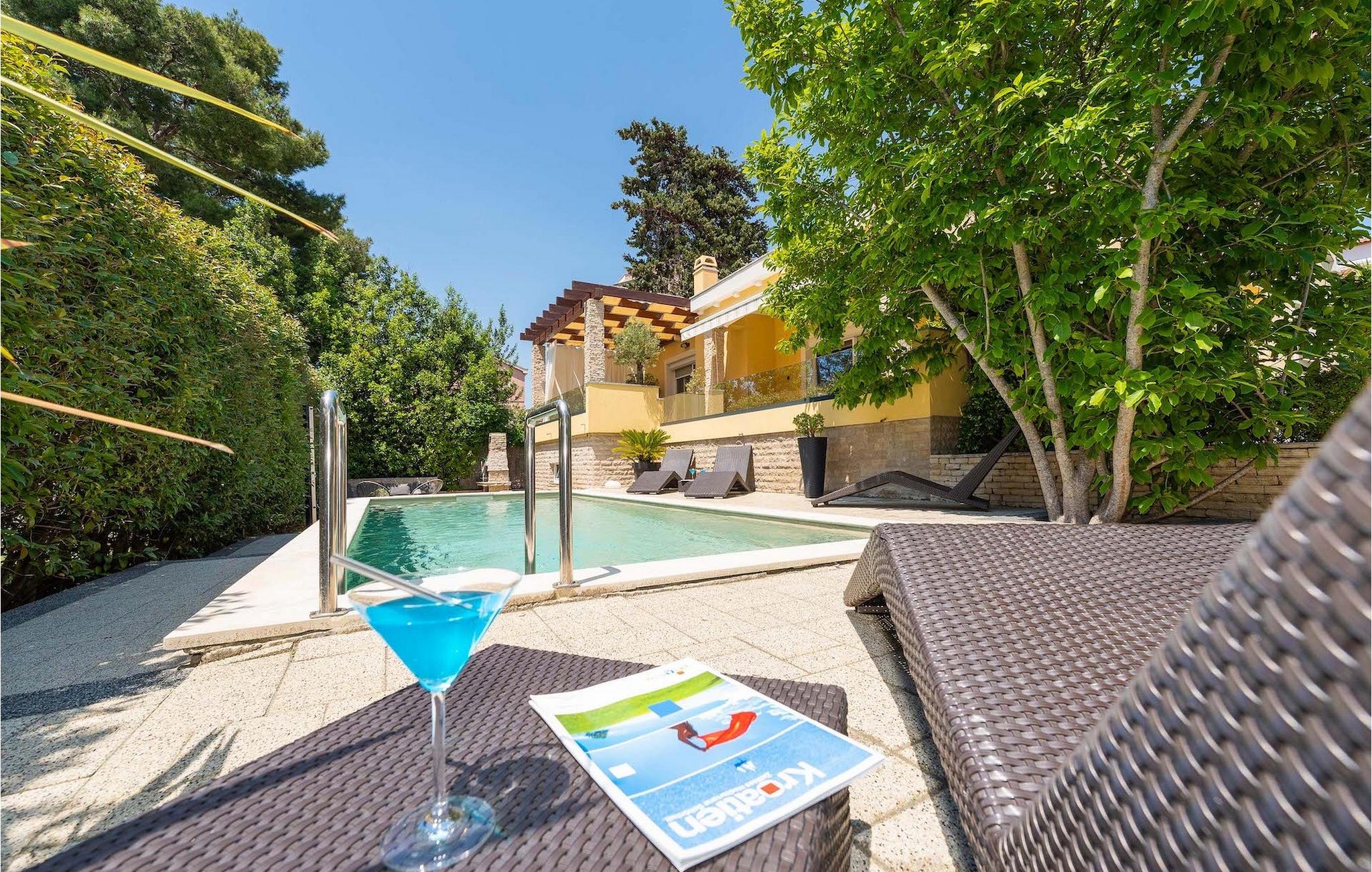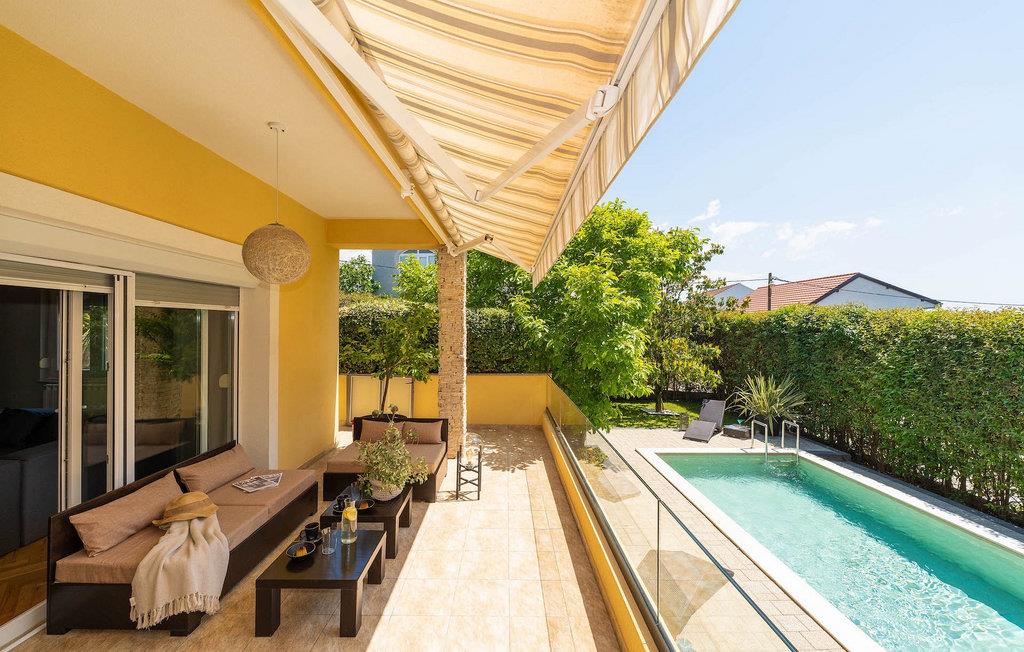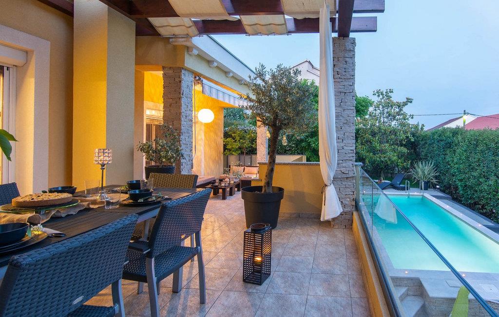 Smukke Villa Luna ligger i den storslåede by Zadar. Det tilbyder en ideel ferie for venner eller familier, der ønsker at tilbringe den på den dalmatiske kyst tæt på stranden og nyde det smukke blå Adriaterhav. Villa Luna har plads til 6 gæster. I dets stilfuldt indrettede moderne interiør er 3 soveværelser, 2 badeværelser, stue og fuldt udstyret køkken med spiseplads til din rådighed. Udendørsområdet omfatter en fuldstændig lukket grøn have med en swimmingpool, hvor du kan slappe af og nyde solen i fuldstændig fred. På terrassen er en udendørs spiseplads med en kulgrill og en lounge til din rådighed. Villaen har aircondition, Wi-Fi, privat parkering til 3 biler og giver alt til en fornøjelig ferie. Smukke Villa Luna ligger i den storslåede by Zadar. Zadar er en gammel by med historisk og kulturel arv, der er værd at se. Den berømte Alfred Hitchcock sagde, at Zadar har den smukkeste solnedgang i verden - gå ikke glip af det! Den gamle bydel byder på monumenter fra oldtiden, middelalderen og renæssancen: Romerpladsen (1. århundrede), kirken St. Donat (9. århundrede), kirken St. Marija (11. århundrede, genopbygget i det 16. århundrede), katedralen i St. Stošija (12.-13. århundrede), dele af forsvarsmuren. I dag er det berømt for symfoni af Havorgelet og lysinstallationen "Pozdrav Suncu" (Hilsen solen). Alt er tæt på - strand, historisk arkitektur, restauranter med middelhavskøkken, nationalparker og naturparker (Krka-vandfaldene, Kornati-øerne, Plitvice-søerne, Telašcica, Paklenica...). Hvis du leder efter mere sjov fra solnedgang til solopgang er der strandklubber, kaffebarer og efter midnat kan du nyde den behagelige atmosfære i natbarer og klubber. Under dit ophold i Zadar glem ikke at smage den søde Maraschino kirsebærlikør!