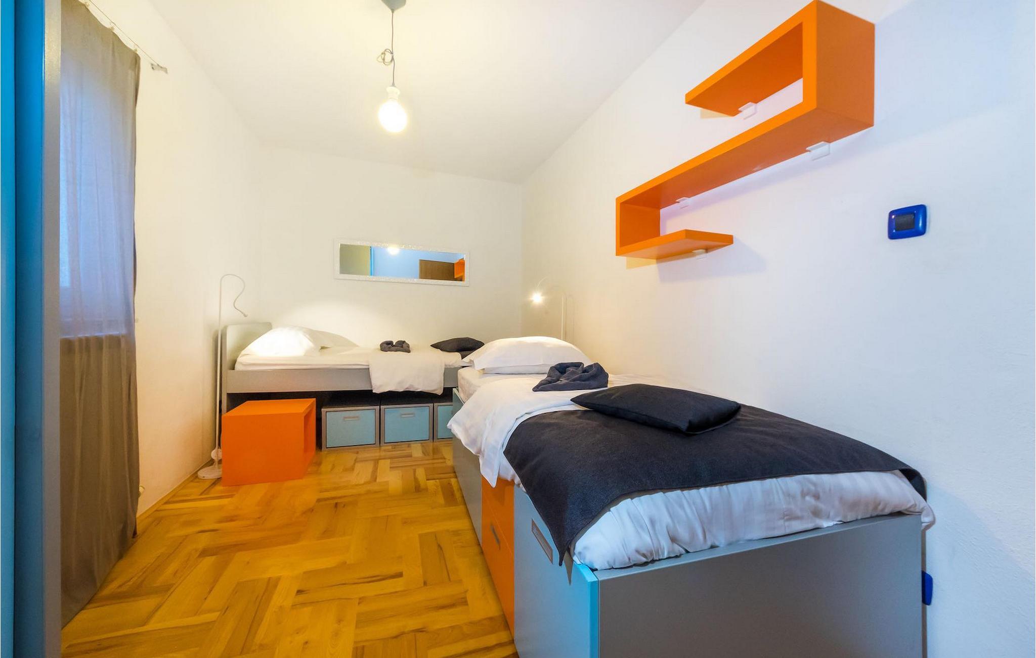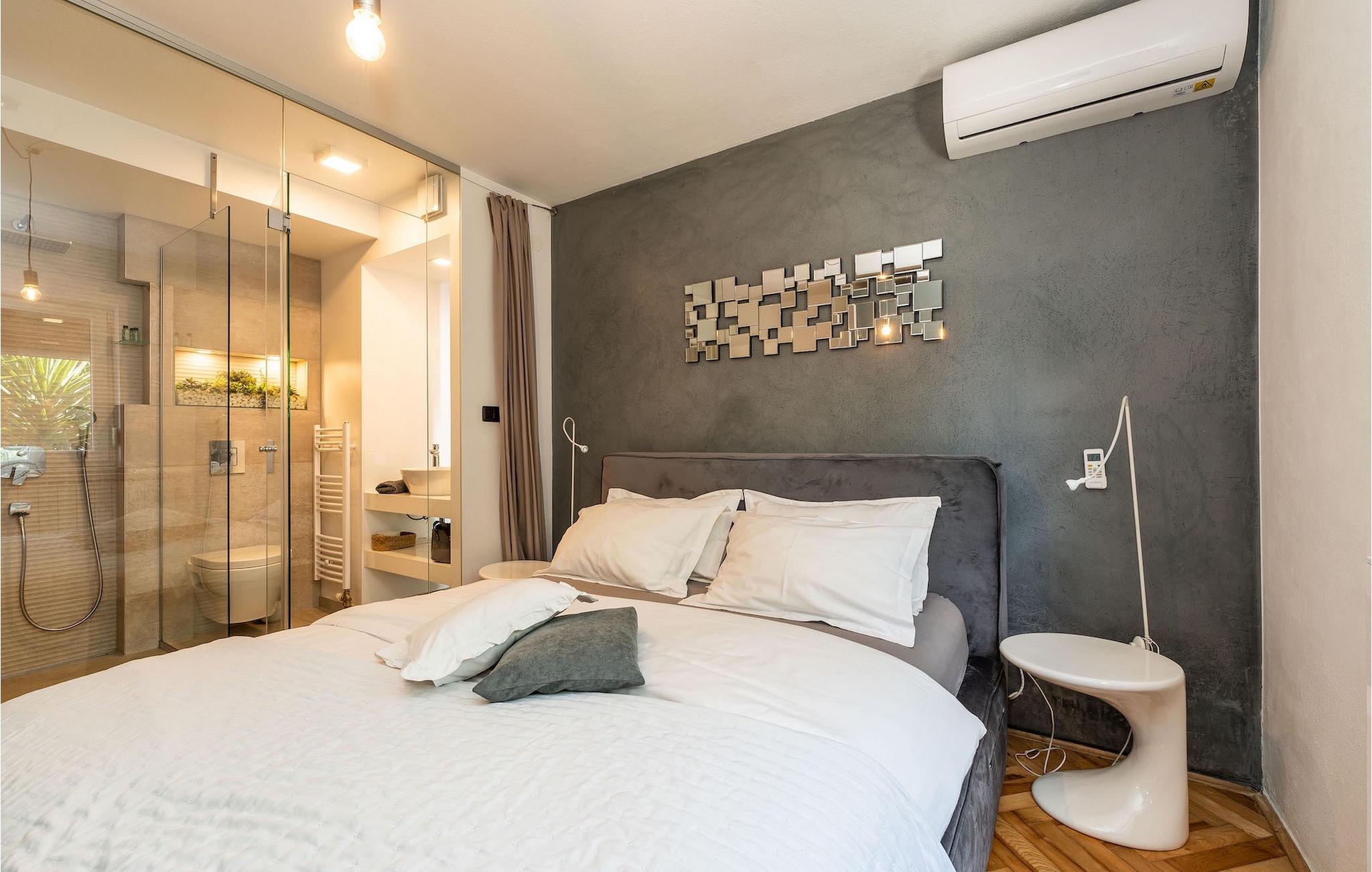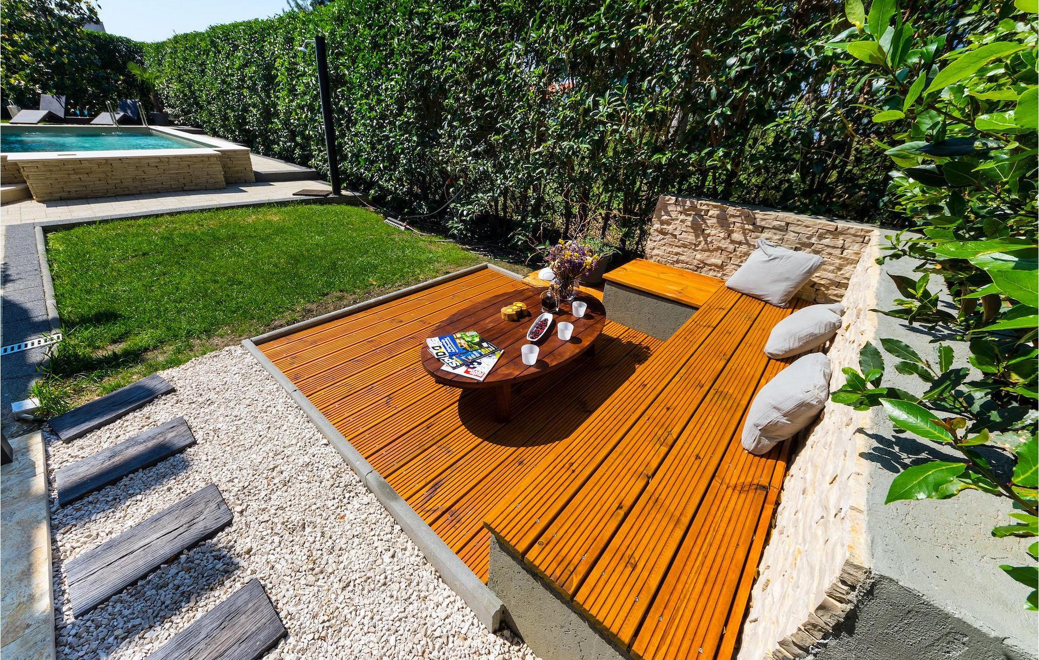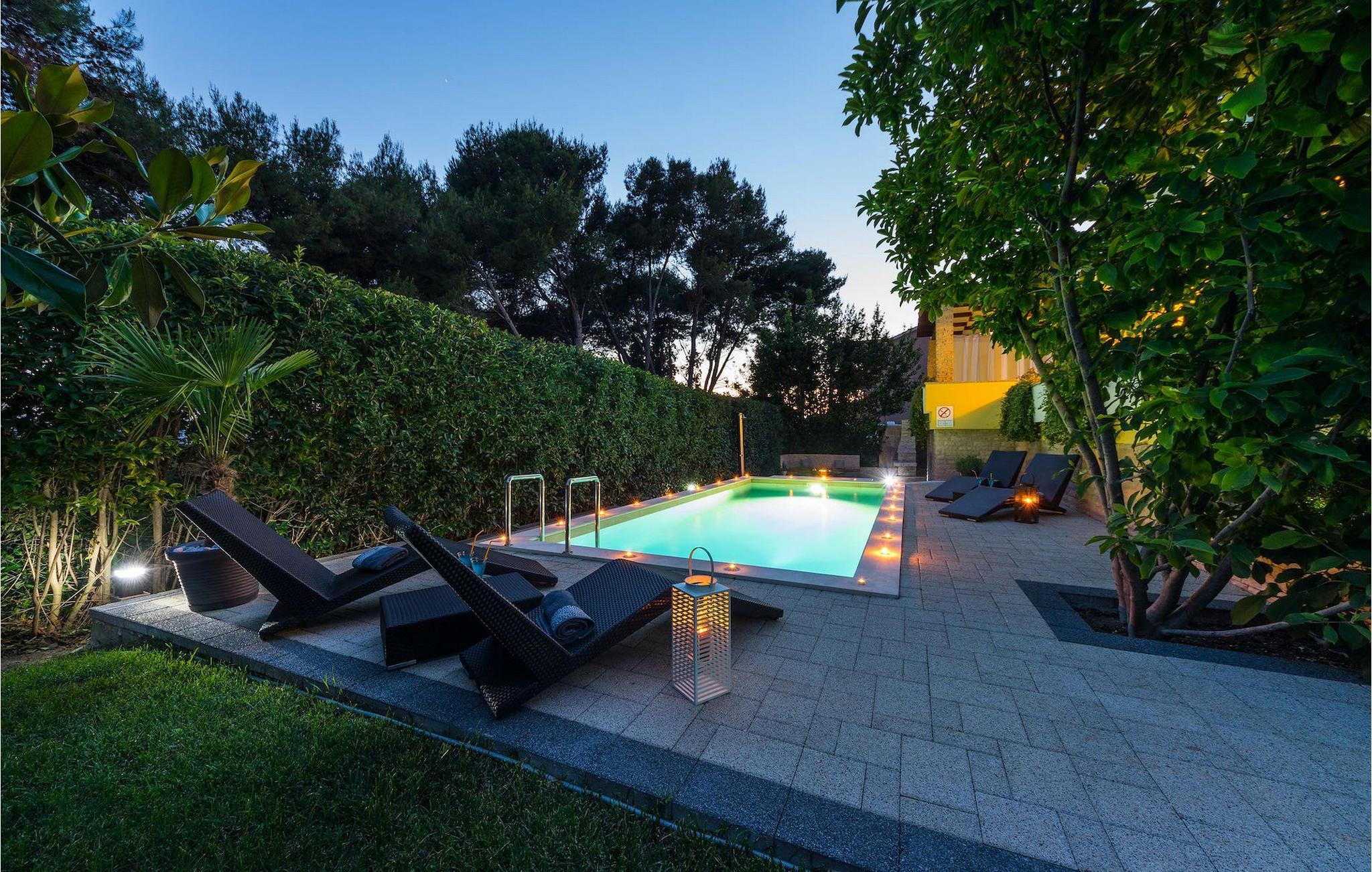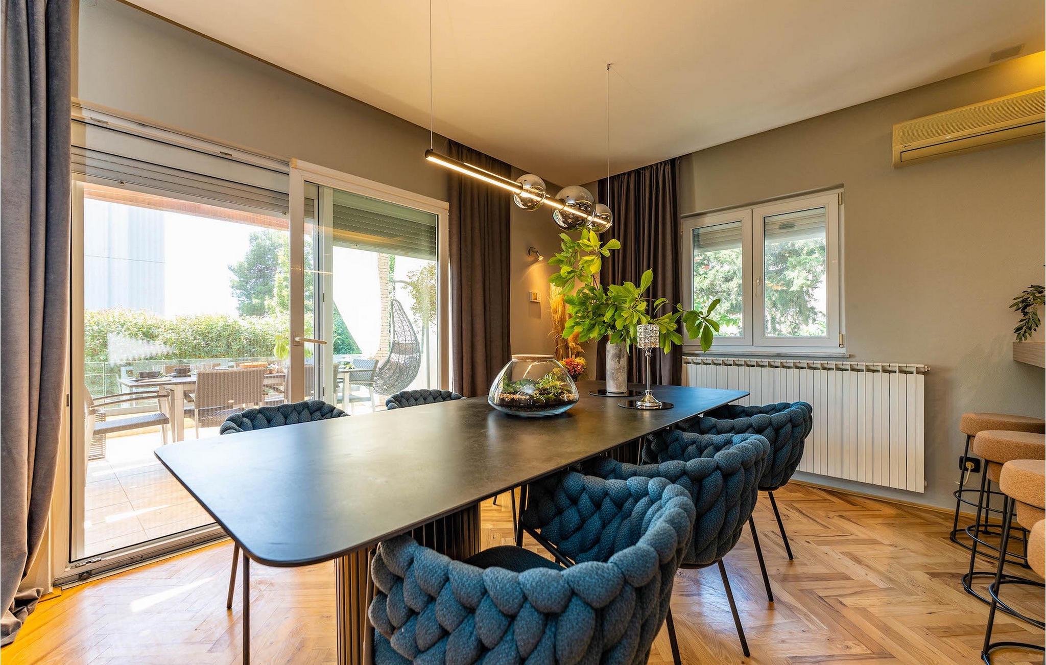 Smukke Villa Luna ligger i den storslåede by Zadar. Det tilbyder en ideel ferie for venner eller familier, der ønsker at tilbringe den på den dalmatiske kyst tæt på stranden og nyde det smukke blå Adriaterhav. Villa Luna har plads til 6 gæster. I dets stilfuldt indrettede moderne interiør er 3 soveværelser, 2 badeværelser, stue og fuldt udstyret køkken med spiseplads til din rådighed. Udendørsområdet omfatter en fuldstændig lukket grøn have med en swimmingpool, hvor du kan slappe af og nyde solen i fuldstændig fred. På terrassen er en udendørs spiseplads med en kulgrill og en lounge til din rådighed. Villaen har aircondition, Wi-Fi, privat parkering til 3 biler og giver alt til en fornøjelig ferie. Smukke Villa Luna ligger i den storslåede by Zadar. Zadar er en gammel by med historisk og kulturel arv, der er værd at se. Den berømte Alfred Hitchcock sagde, at Zadar har den smukkeste solnedgang i verden - gå ikke glip af det! Den gamle bydel byder på monumenter fra oldtiden, middelalderen og renæssancen: Romerpladsen (1. århundrede), kirken St. Donat (9. århundrede), kirken St. Marija (11. århundrede, genopbygget i det 16. århundrede), katedralen i St. Stošija (12.-13. århundrede), dele af forsvarsmuren. I dag er det berømt for symfoni af Havorgelet og lysinstallationen "Pozdrav Suncu" (Hilsen solen). Alt er tæt på - strand, historisk arkitektur, restauranter med middelhavskøkken, nationalparker og naturparker (Krka-vandfaldene, Kornati-øerne, Plitvice-søerne, Telašcica, Paklenica...). Hvis du leder efter mere sjov fra solnedgang til solopgang er der strandklubber, kaffebarer og efter midnat kan du nyde den behagelige atmosfære i natbarer og klubber. Under dit ophold i Zadar glem ikke at smage den søde Maraschino kirsebærlikør!