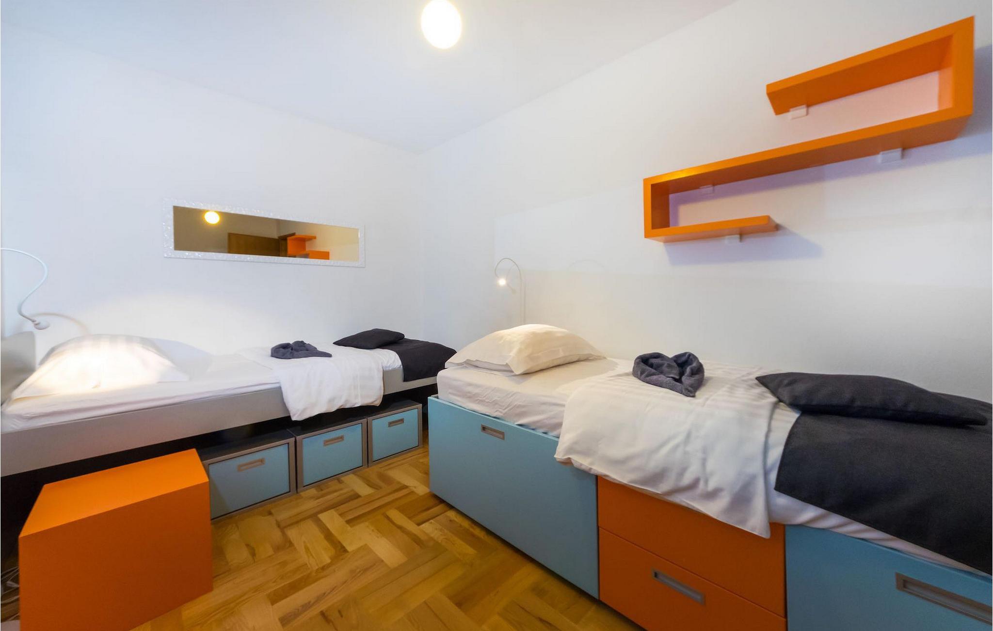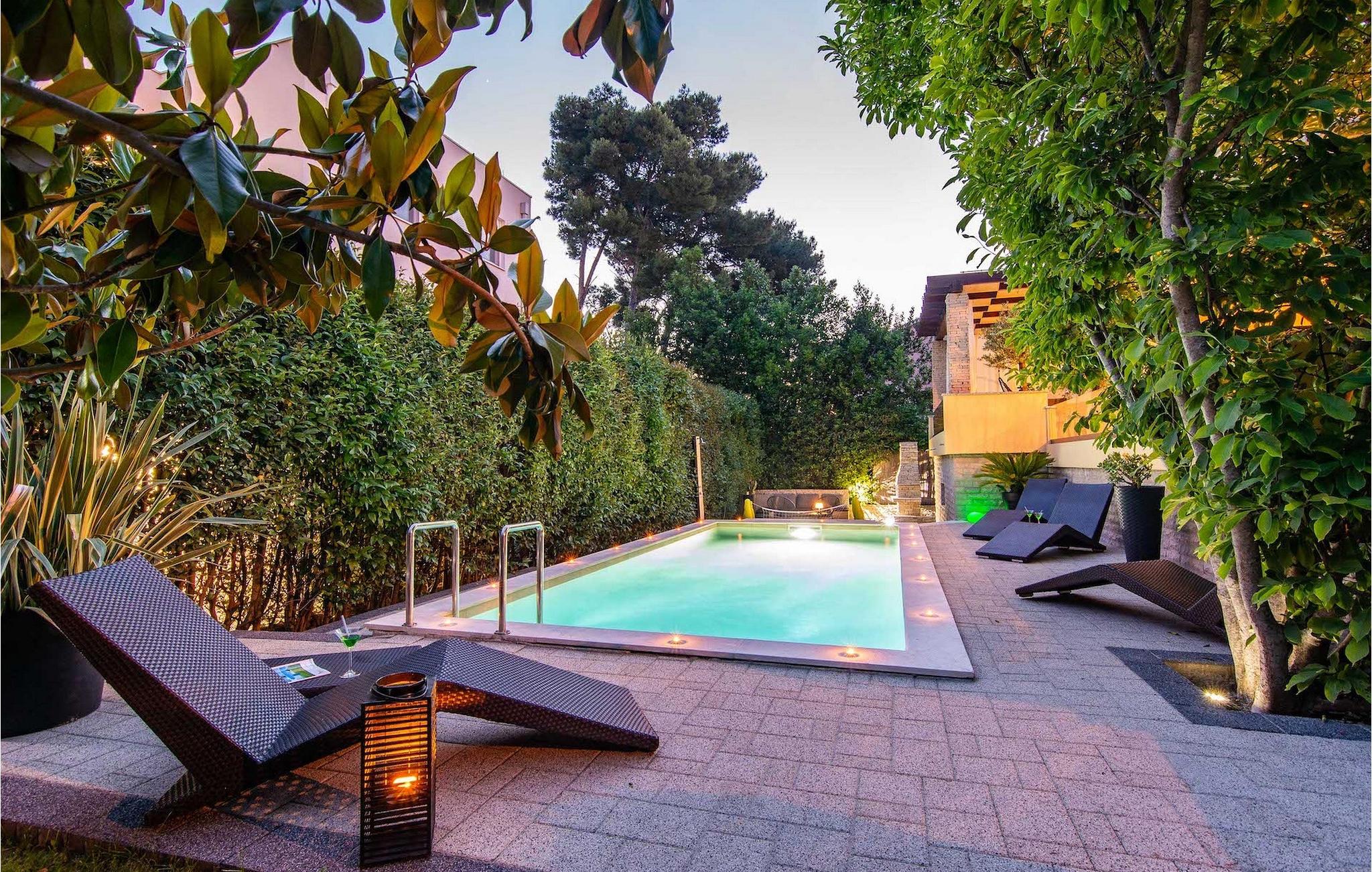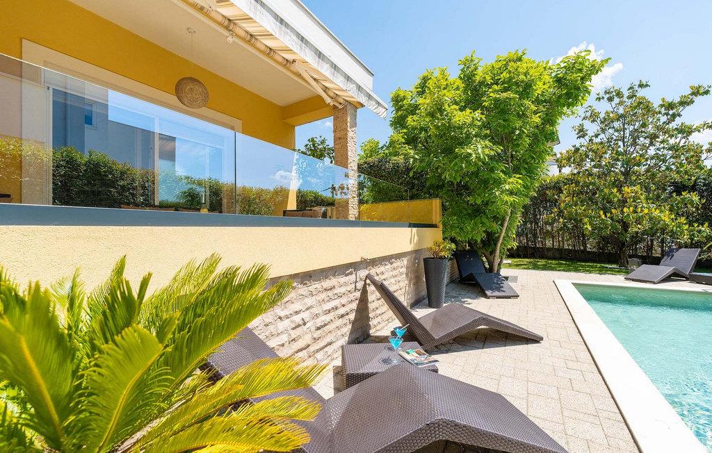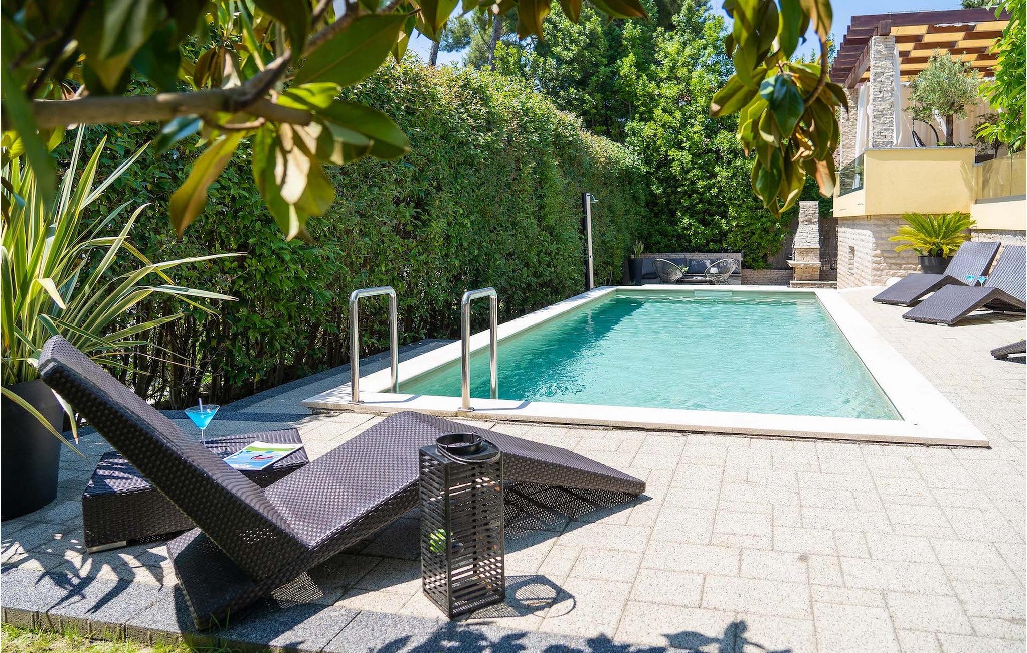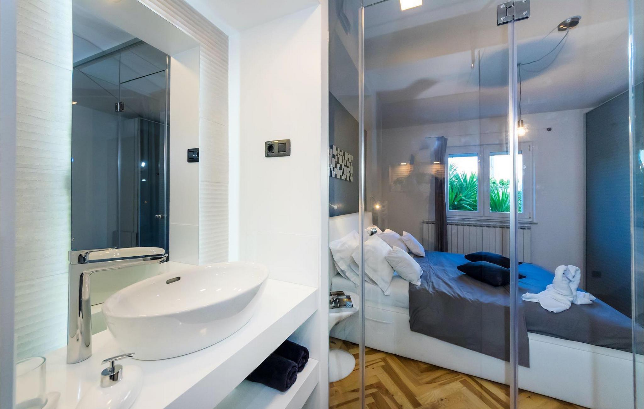 Smukke Villa Luna ligger i den storslåede by Zadar. Det tilbyder en ideel ferie for venner eller familier, der ønsker at tilbringe den på den dalmatiske kyst tæt på stranden og nyde det smukke blå Adriaterhav. Villa Luna har plads til 6 gæster. I dets stilfuldt indrettede moderne interiør er 3 soveværelser, 2 badeværelser, stue og fuldt udstyret køkken med spiseplads til din rådighed. Udendørsområdet omfatter en fuldstændig lukket grøn have med en swimmingpool, hvor du kan slappe af og nyde solen i fuldstændig fred. På terrassen er en udendørs spiseplads med en kulgrill og en lounge til din rådighed. Villaen har aircondition, Wi-Fi, privat parkering til 3 biler og giver alt til en fornøjelig ferie. Smukke Villa Luna ligger i den storslåede by Zadar. Zadar er en gammel by med historisk og kulturel arv, der er værd at se. Den berømte Alfred Hitchcock sagde, at Zadar har den smukkeste solnedgang i verden - gå ikke glip af det! Den gamle bydel byder på monumenter fra oldtiden, middelalderen og renæssancen: Romerpladsen (1. århundrede), kirken St. Donat (9. århundrede), kirken St. Marija (11. århundrede, genopbygget i det 16. århundrede), katedralen i St. Stošija (12.-13. århundrede), dele af forsvarsmuren. I dag er det berømt for symfoni af Havorgelet og lysinstallationen "Pozdrav Suncu" (Hilsen solen). Alt er tæt på - strand, historisk arkitektur, restauranter med middelhavskøkken, nationalparker og naturparker (Krka-vandfaldene, Kornati-øerne, Plitvice-søerne, Telašcica, Paklenica...). Hvis du leder efter mere sjov fra solnedgang til solopgang er der strandklubber, kaffebarer og efter midnat kan du nyde den behagelige atmosfære i natbarer og klubber. Under dit ophold i Zadar glem ikke at smage den søde Maraschino kirsebærlikør!