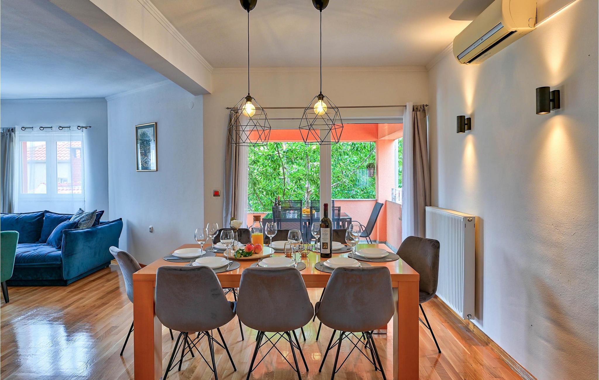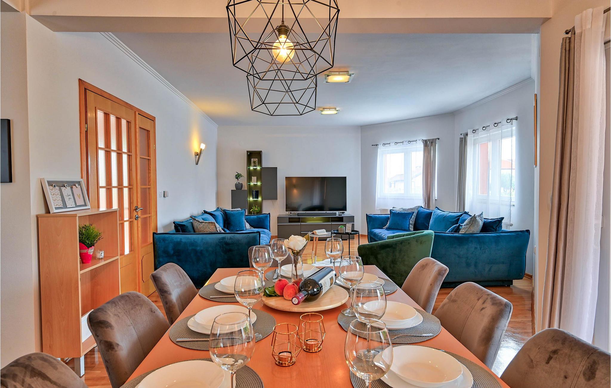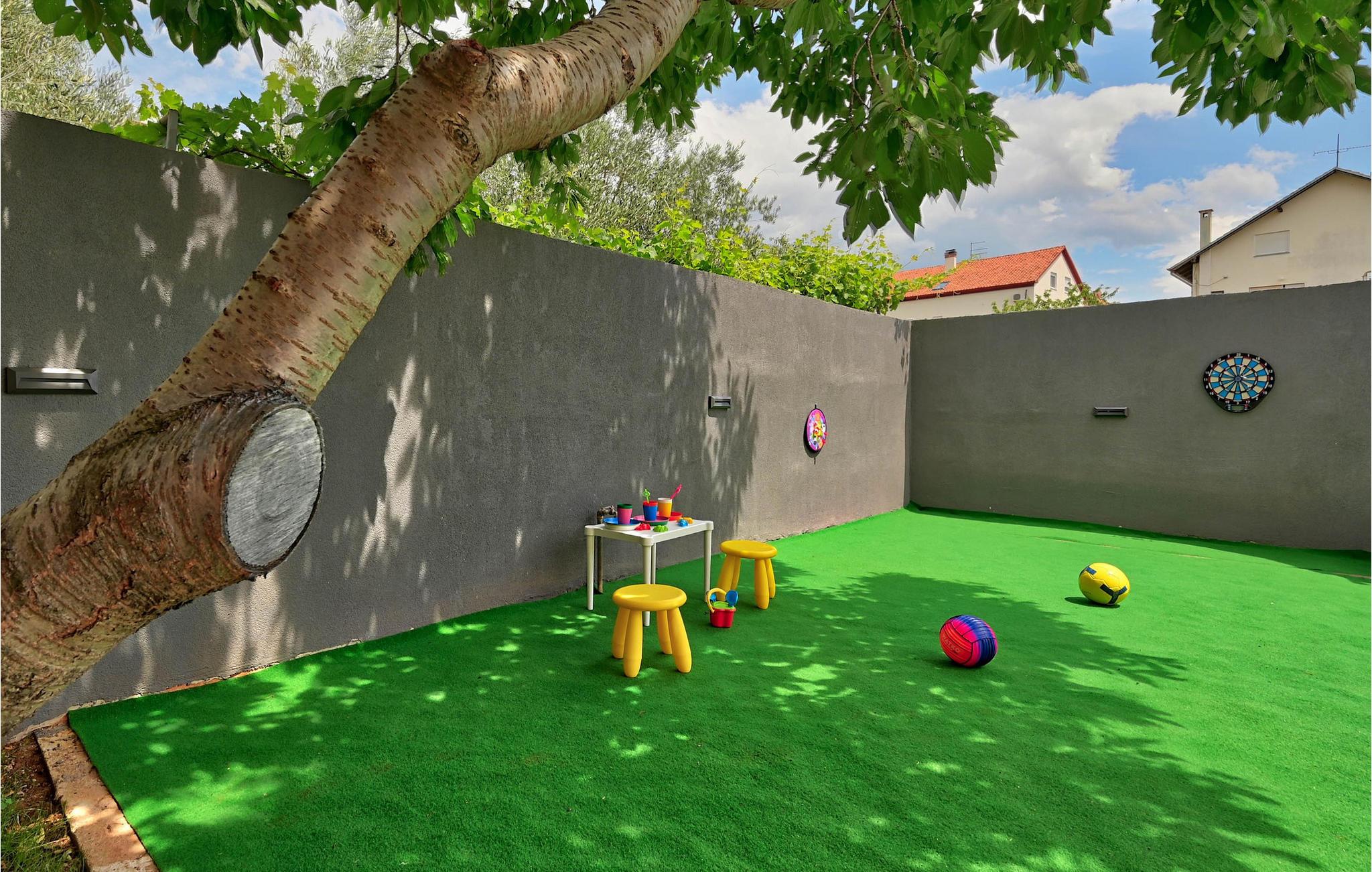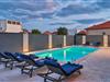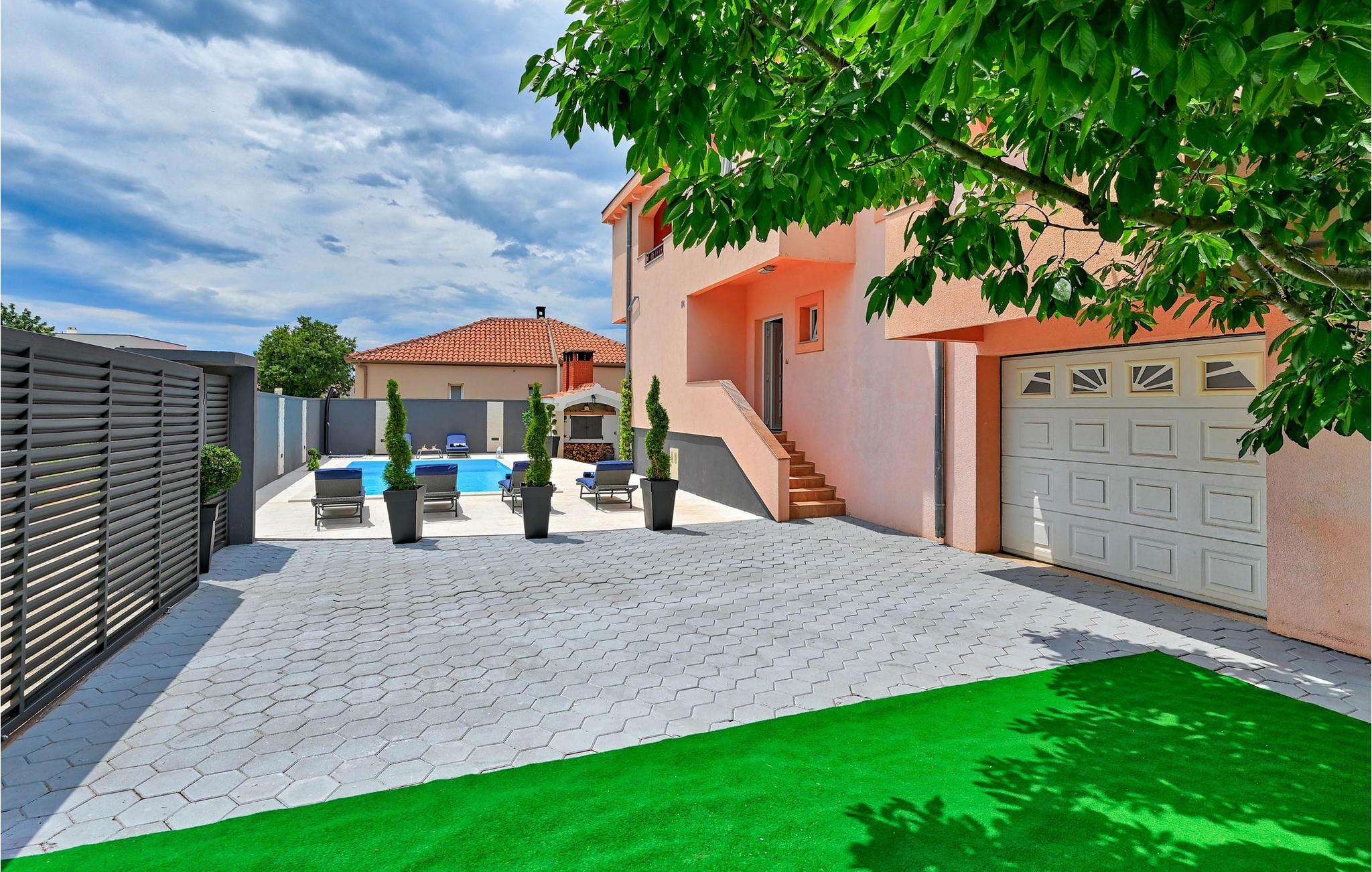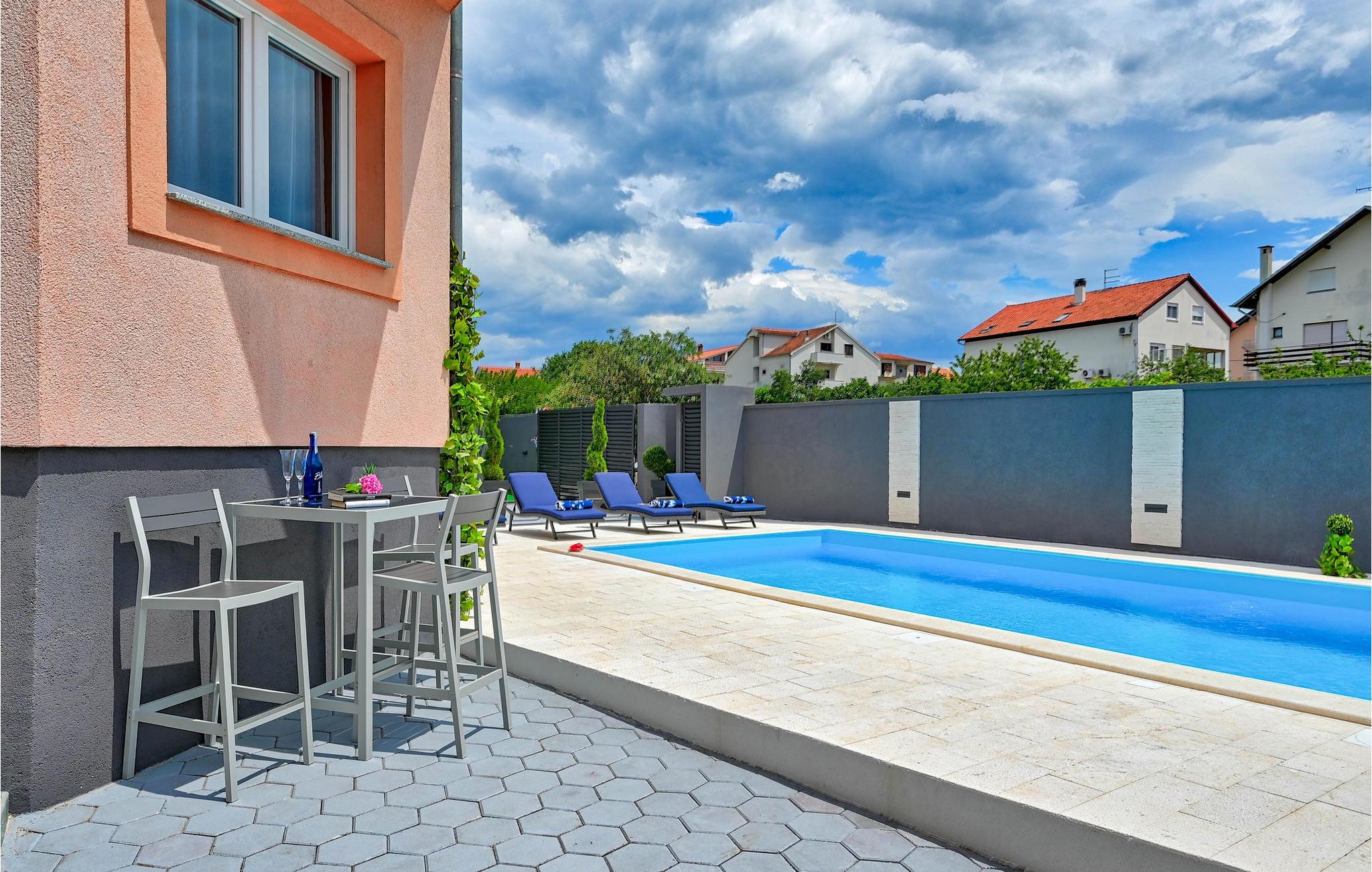 Leder du efter en villa beliggende nær havet, men også med privat pool, er Villa Balera beliggende i Zadar et godt valg. Villaen byder på fem soveværelser og har plads til ti gæster. Villaen er fordelt på tre etager. Tre lyse og komfortable soveværelser med dobbeltsenge er placeret på tredje sal, samt et stort badeværelse med to håndvaske. To soveværelser har balkon. På anden sal er der to rummelige soveværelser med dobbeltseng, der har udgang til altan, hvor man kan slappe af med en god bog. Der er også et badeværelse på samme etage. I villaens stueetage er der en rummelig stue udstyret med et TV, som er forbundet med spisestuen og et fuldt udstyret køkken i et åbent rum koncept. I villaens have kan du slappe af ved den private pool, nyde solen på liggestolene eller slappe af i en hængekøje i skyggen. Du kan nyde en forfriskende drink eller et lækkert måltid på den overdækkede terrasse. Der er også en træ- og kulgrill, hvor du kan prøve dine kulinariske færdigheder. I gårdhaven er der også en legeplads, hvor vores yngre gæster helt sikkert vil hygge sig, og hvor både voksne og børn kan more sig med at spille dart.