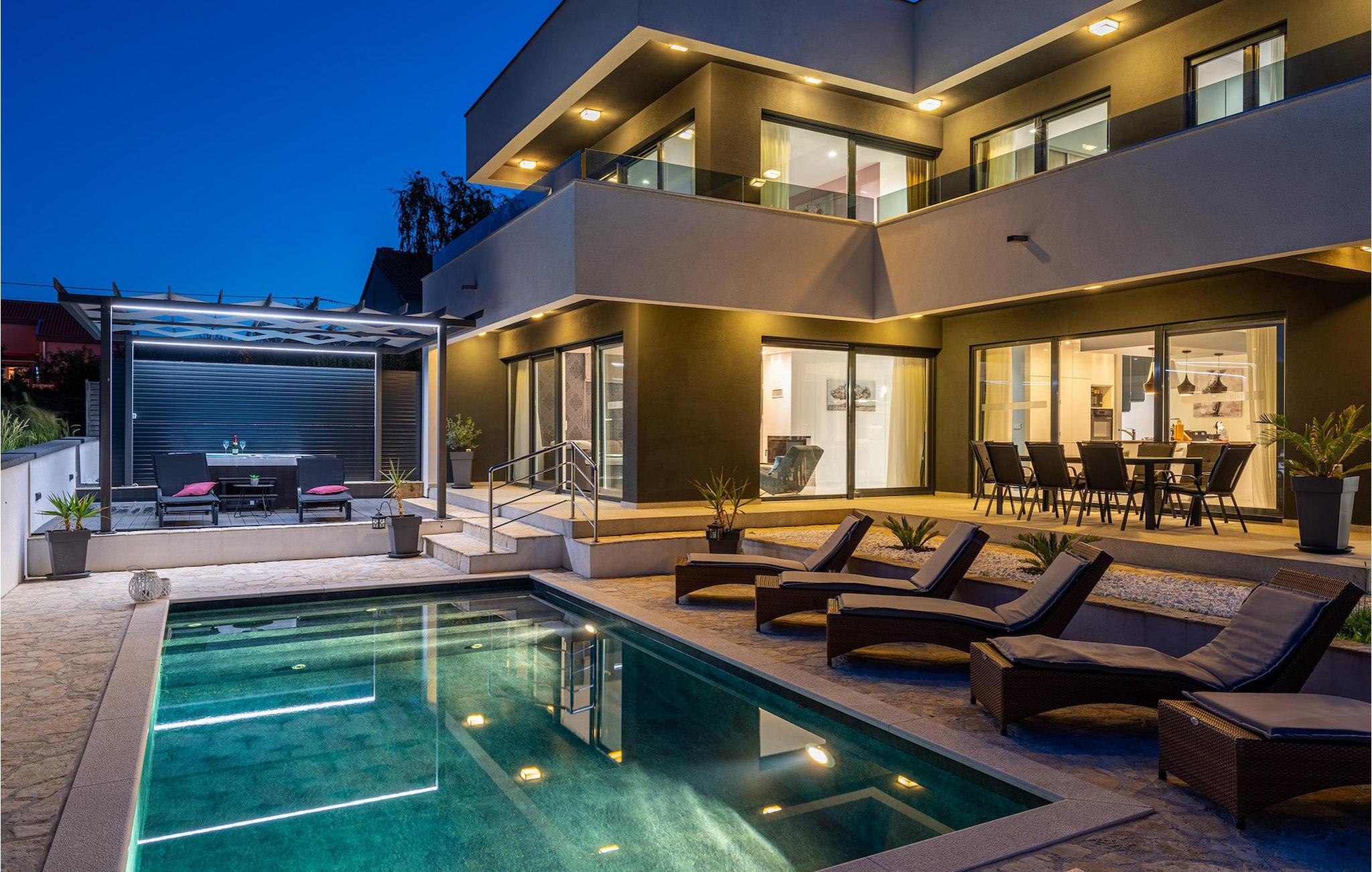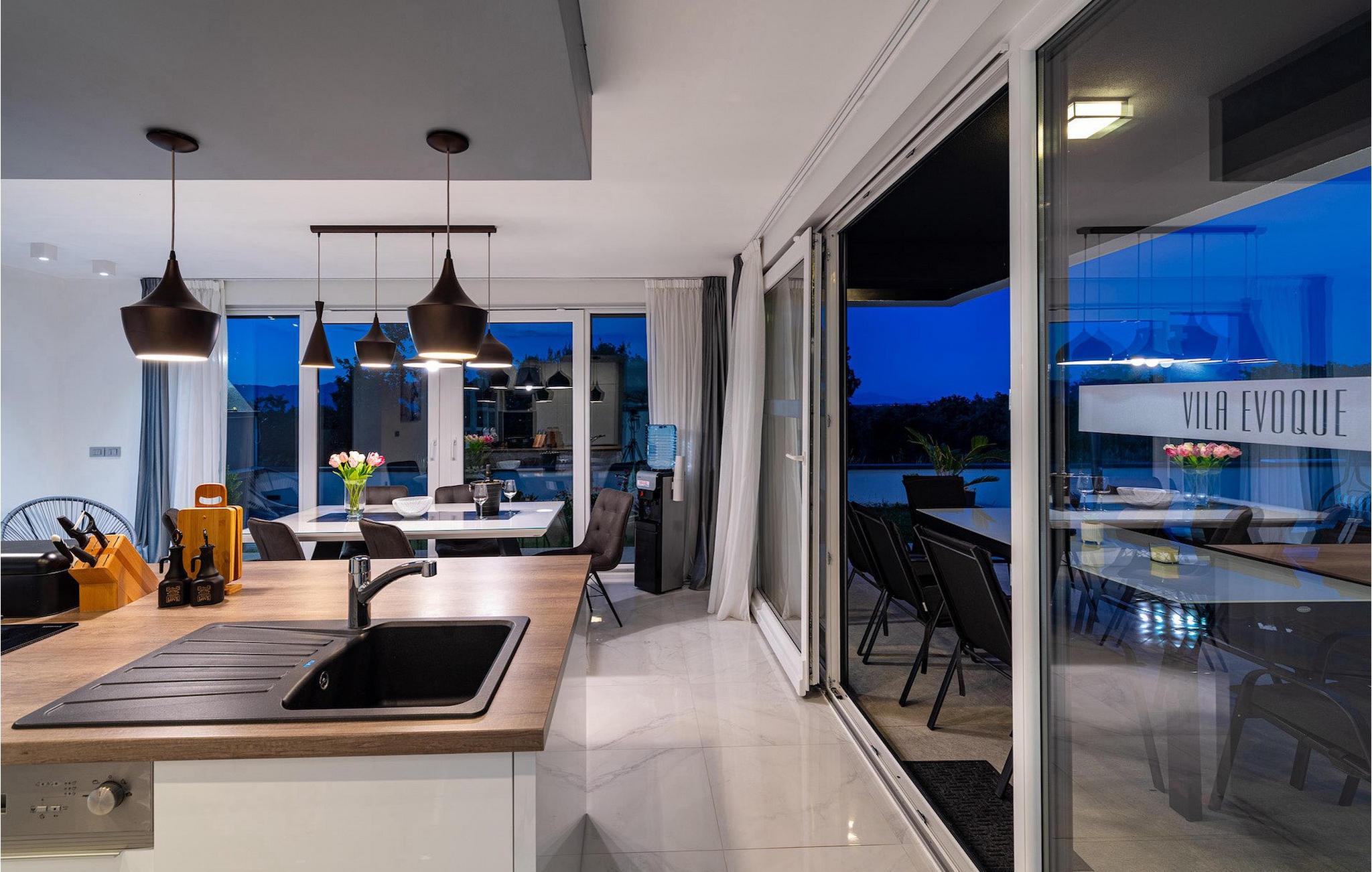 Luksusvillaen Evoque er beliggende nær byen Zadar, i en lille landsby Crno. Denne villa vil give dig et rigtigt stykke paradis og en afslappende og behagelig ferie. Villaens bekvemme beliggenhed tilbyder alle de luksuriøse og moderne bekvemmeligheder, du kan få brug for på din ferie. Denne moderne villa kan rumme i alt 6 personer i 3 komfortable soveværelser. I stueetagen af villaen er der en rummelig åben planløsning med udstyret køkken og spiseplads, og på første sal er der tre komfortable og rummelige soveværelser og to badeværelser, hvoraf det ene er en suite. Alle tre soveværelser har aircondition og har udgang til en terrasse, hvor du kan få din morgenkaffe med en smuk solopgang. Fra stuen kan du gå ud på den udendørs terrasse med pool og liggestole. Slap af i poolen og nyd solen på liggestolene, og om aftenen kan I samle familien til udendørs middage sammen. Denne villa betyder ægte afslapning i luksuriøs komfort, kom og prøv det selv.Den smukke villa Evoque er beliggende nær byen Zadar i landsbyen Crno. Kun få kilometer fra Zadars smukke strande tilbyder Villa Evoque en fantastisk beliggenhed til sine gæster. Stop ved den storslåede by Zadar og besøg restauranter og caféer. Lokale butikker ligger i bydelen 500 m fra villaen. Zadar er en gammel by med en værdifuld historisk og kulturel arv og storslåede solnedgange. Den gamle bydel er fuld af monumenter fra oldtiden, middelalderen og renæssancen, såsom den berømte romerske plads og kirken St. Donata. I dag er den bedst kendt for Havorgelsymfonien og installationen Hilsen til Solen. Nyd bølgesymfonien og smag på det dalmatiske køkken.