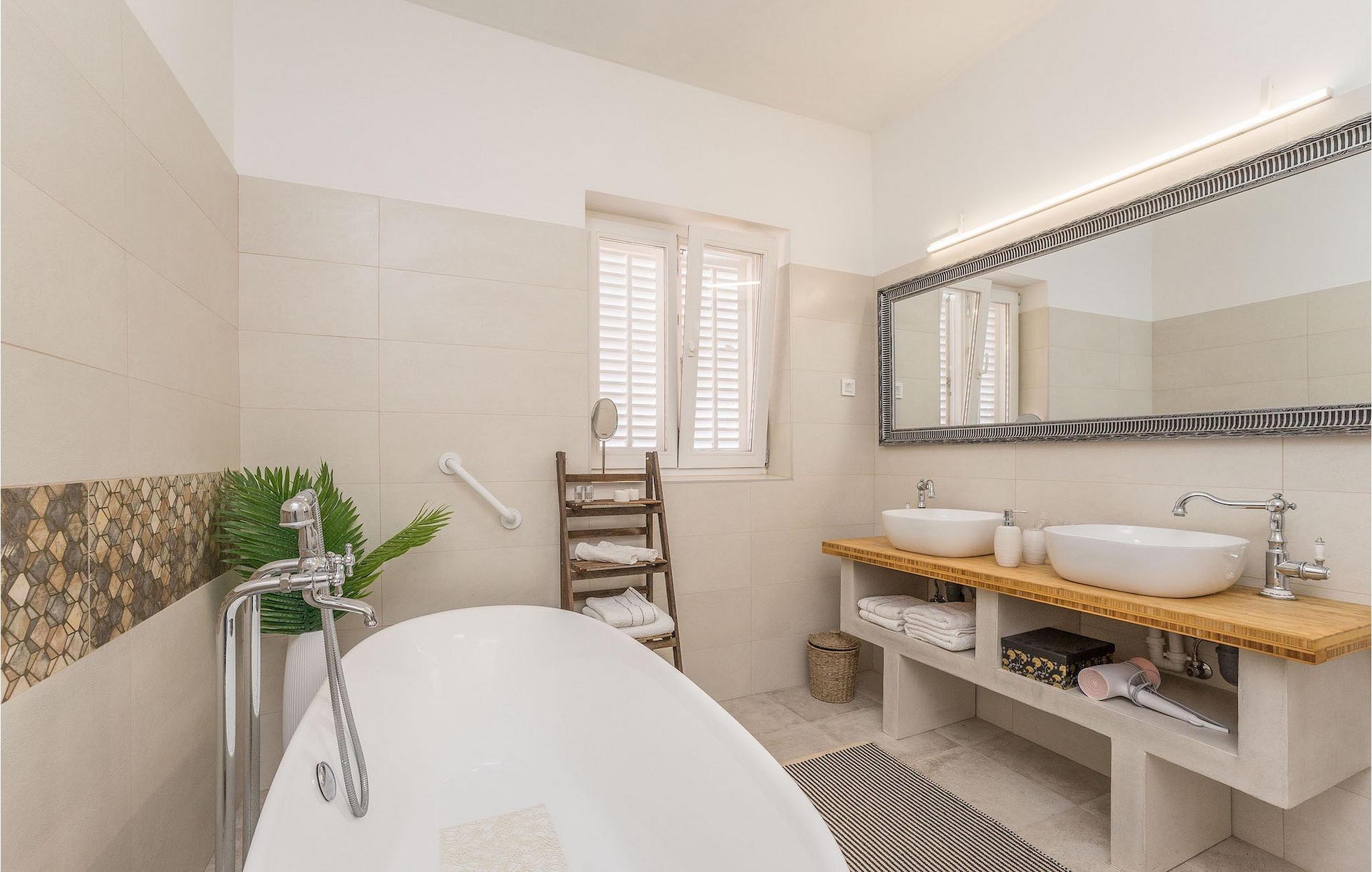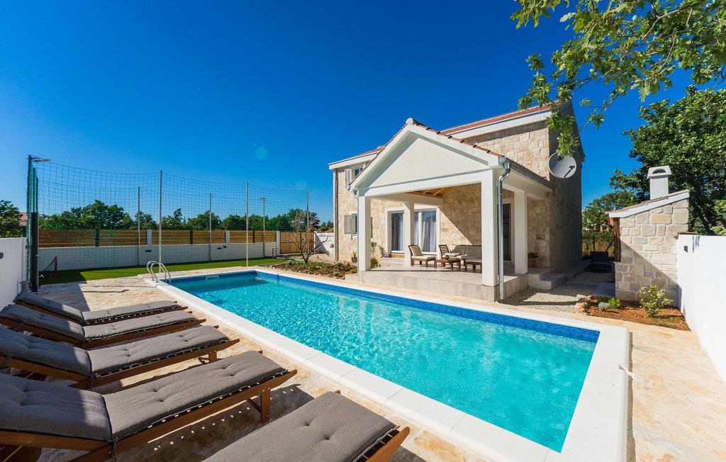 Hvad er det første, du tænker på, når du hører ferie? Er det stranden, eller er det afslapning, eller måske en aktiv ferie? Nå, Villa Aenona har alt, hvad du drømte om. Den charmerende Villa Aenona ligger i Dalmatien, nær byen Zadar. Villaen i to etager er perfekt til familier eller vennegrupper på udkig efter en afslappende, men også aktiv ferie. Stueetagen af villaen består af et fuldt udstyret køkken, en hyggelig stue med spiseplads, et vaskerum og et komfortabelt soveværelse med en dobbeltseng og et badeværelse. Ovenpå er der et legerum med et poolbord, bordfodbold, dart og en PlayStation 4, yderligere to soveværelser og to badeværelser. To badeværelser er udstyret med bruseniche, mens det ene badeværelse har badekar. Udenfor finder du et overdækket siddeområde, hvor du kan slappe af, mens din bedre halvdel tilbereder et lækkert måltid på kulgrillen til dig og din familie. Kun et skridt væk ligger den store private pool, som indbyder til en forfriskende dukkert på varme sommerdage. Villaens højdepunkt er den oplyste fodboldbane, hvor du kan hygge dig med dine børn, der spiller fodbold, badminton eller volleyball. Da villaen kun ligger få minutters gang fra sandstranden, er den også ideel for familier med små børn. Hvis du kan lide alt, hvad du har læst om denne villa indtil videre, er det tid til at booke den og opleve din næste ferie på Villa Aenona. Villa Aenona ligger i Zaton, ikke langt fra byen Nin, i gåafstand fra smukke sandstrande , og ideel til familier med små børn. Nin er kendt for sine smukke strande, men også for sin lange tradition for saltproduktion. Besøg Nin Salt Works and Museum, hvor du kan lære, hvordan salt udvindes naturligt, hvordan det opbevares og selvfølgelig smage de mange delikatesser lavet med salt såsom olivenolie, kiks og chokolade. Bortset fra sin naturlige skønhed er Nin en af de ældste byer på den østlige Adriaterhavskyst med en 3.000-årig historie. Den historiske gamle bydel i Nin ligger på en lille ø forbundet med fastlandet med to stenbroer. Gå en tur gennem byens smalle gader og opdag de skjulte hemmeligheder. Villa Aenona er også et ideelt udgangspunkt for adskillige udflugter. Gå ikke glip af at besøge byen Zadar, som vil glæde dig med sin kystpromenade, unikke havorgel og en af de smukkeste solnedgange i verden. Sørg for at du ikke går glip af et besøg på øen Pag, kendt for sin usædvanlige lettelse, lækre retter og talrige strande. Interessant nok er der 3 nationalparker i dette lille område, nemlig Paklenica National Park, Kornati National Park og Krka National Park. Alle disse parker har noget til fælles, nemlig uberørt natur, der ikke vil lade nogen uimponeret.