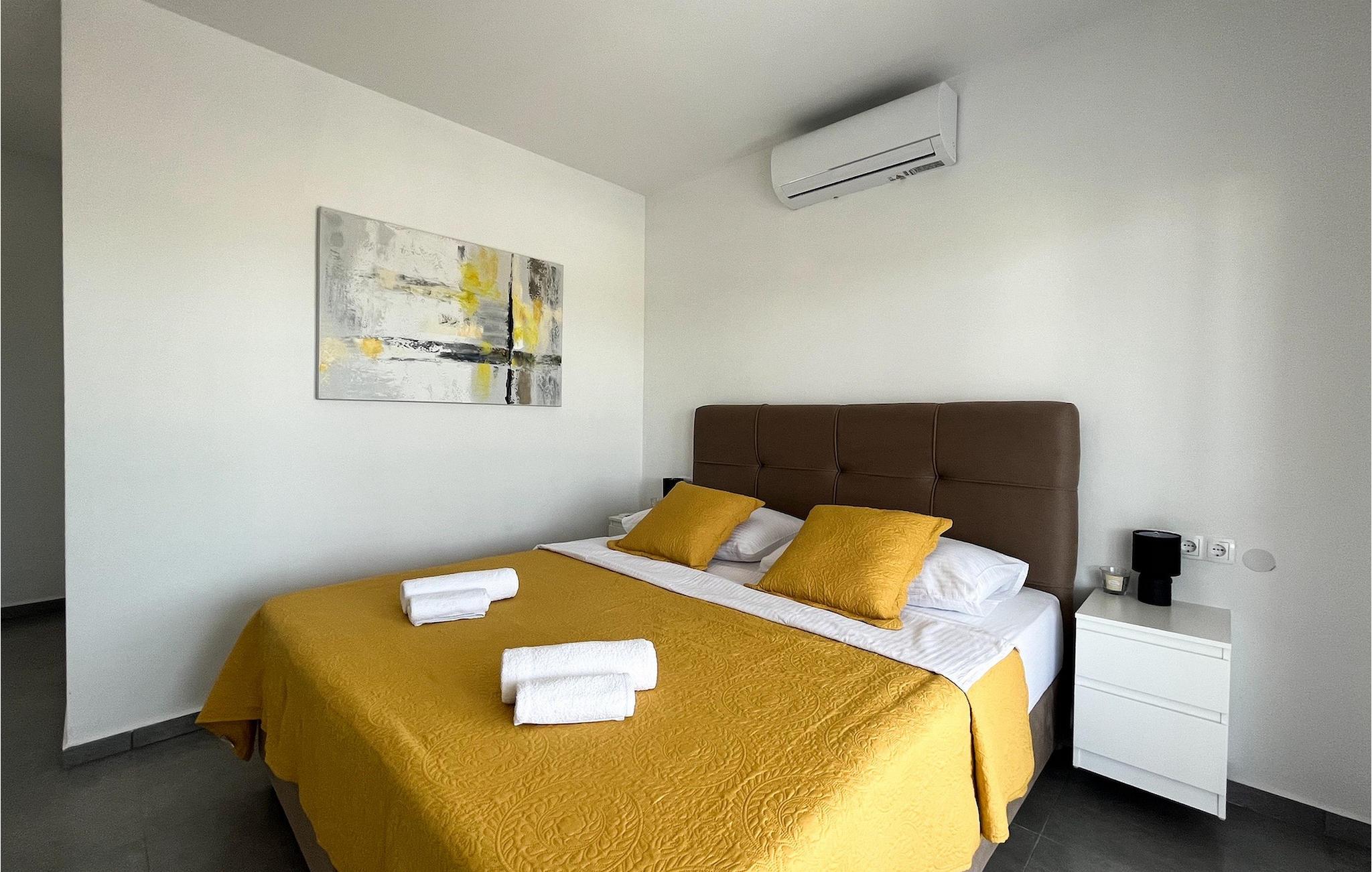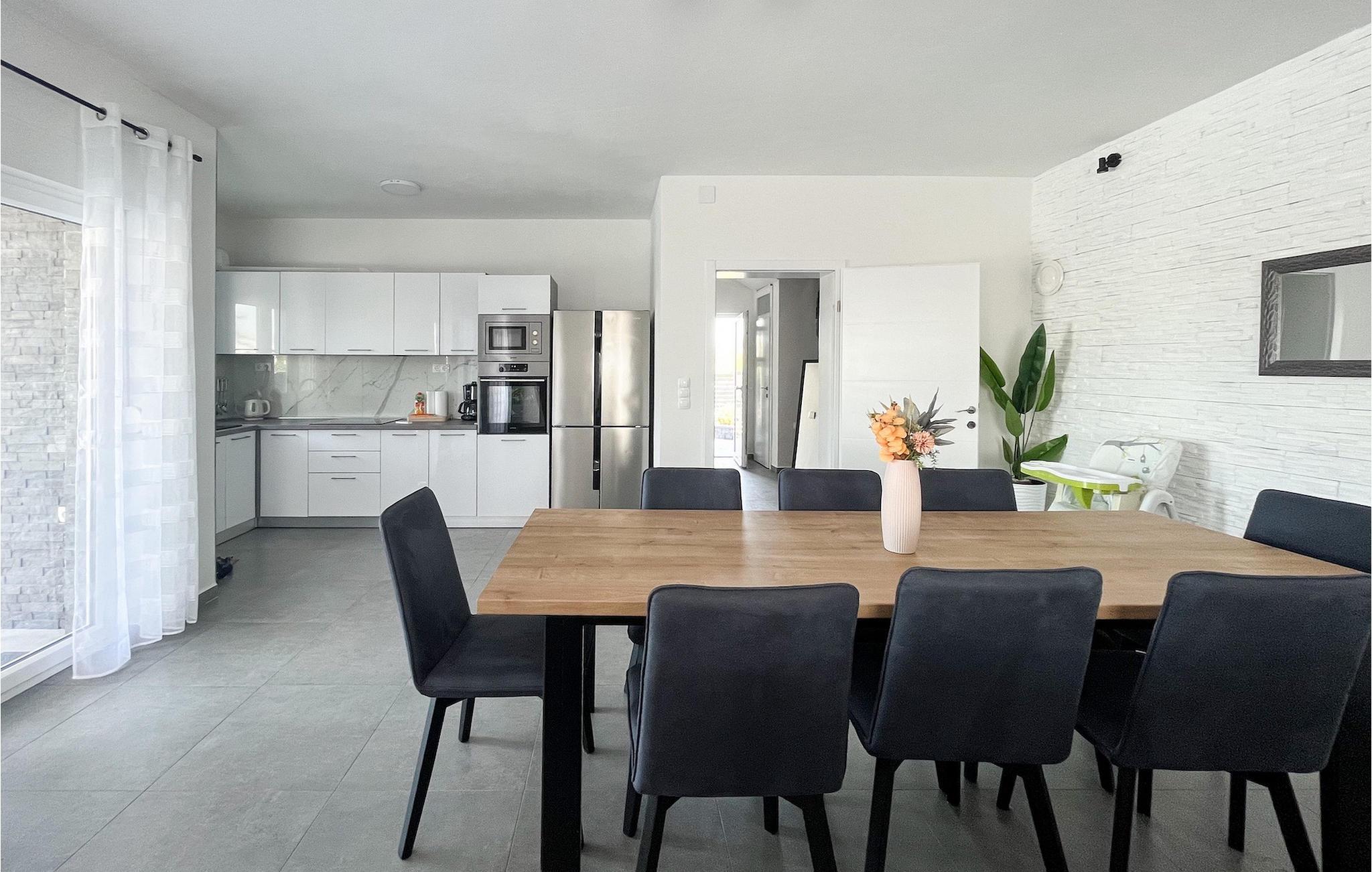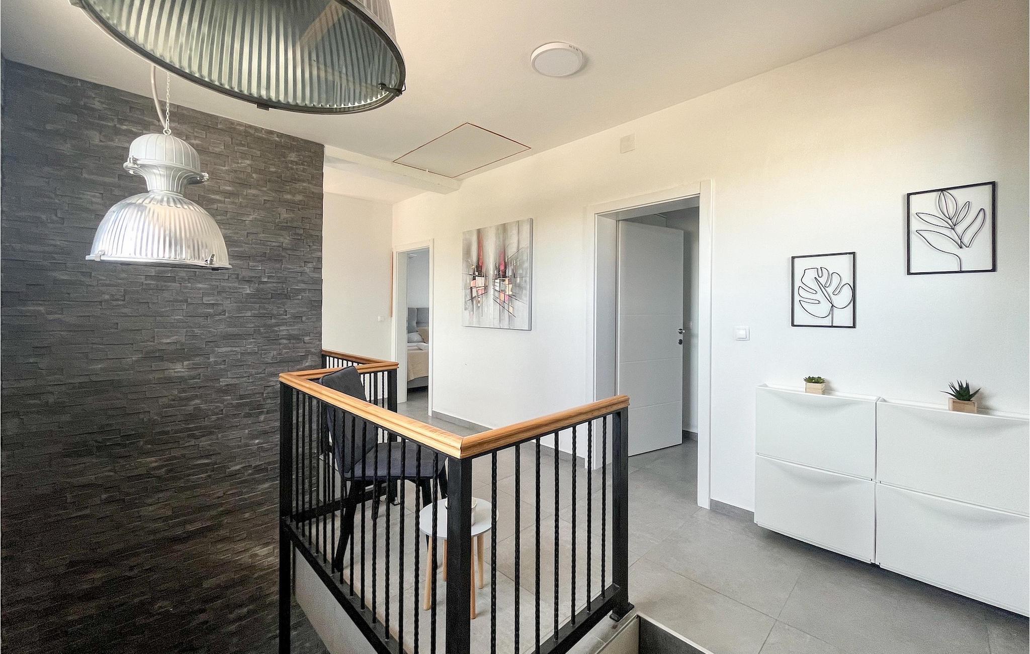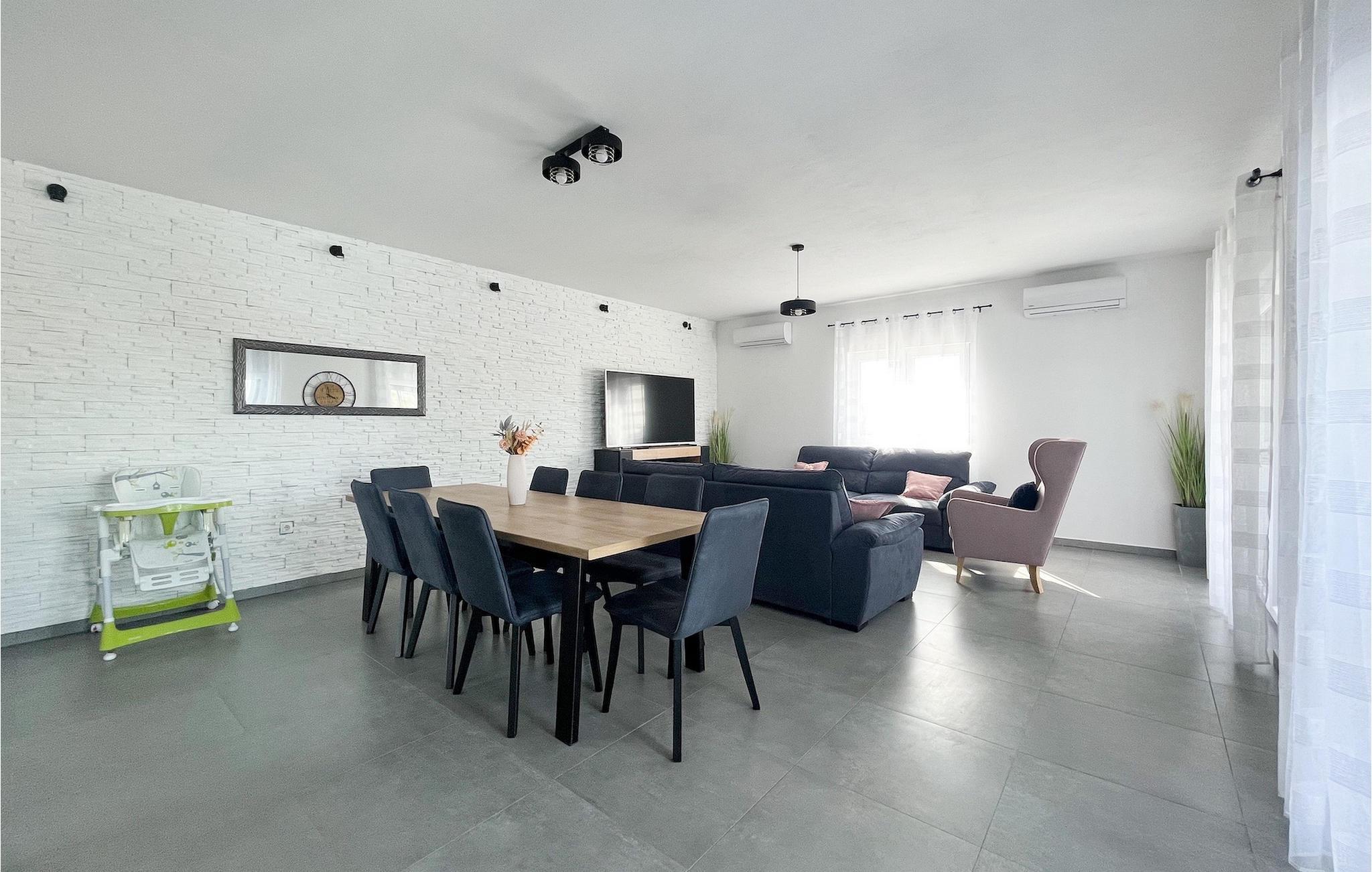 Villa Ela Zadar er en dejlig 4-værelses villa med privat pool til i alt 10 gæster beliggende i hjertet af Dalmatien. Med masser af aktiviteter, et stilfuldt design og en fantastisk beliggenhed er Villa Ela Zadar et fantastisk sted at samle minder i Kroatien. Udendørsområdet vil være højdepunktet for alle, der bor i Villa Ela Zadar med en 50m2 privat og opvarmet pool, liggestole til afslapning i solen, en legeplads, en kulgrill til at lave gode og traditionelle middelhavsretter og mange sportsaktiviteter for børnene. Fra at spille basketball og fodbold, til at lave en familieaften med bordtennis, dart eller pool – det sjove slutter aldrig i Villa Ela Zadar. Der er også en dejlig udendørs spiseplads ved siden af grillen, et hyggeligt loungeområde og masser af plads. Det indvendige område af villaen er meget moderne designet og rummelig. Stueetagen består af en stue, spisestue, et meget veludstyret køkken og et dobbeltværelse med eget badeværelse samt separat toilet. Ved at nå 1. sal i Villa Ela Zadar finder du 3 dobbeltværelser med eget badeværelse, tv og aircondition. Hele ejendommen har også aircondition og Wi-Fi. Med sine faciliteter, fantastiske beliggenhed og charme er Villa Ela Zadar et fantastisk sted for din familie og venner at tilbringe en mindeværdig ferie i Kroatien, så tøv ikke med at booke Villa Ela Zadar! Villa Ela Zadar ligger kun en kort køretur fra et af de mest populære turist-hotspots i Dalmatien - den gamle og fantastiske by Zadar. Zadar er mest berømt for sine havorganer, hilsen til solen, kirken St. Donatus og betagende strande. The Sea Organs er en musikalsk installation, der laver dejlige lyde fra havets bølger og et besøg i Hilsen til Solen, mens solen går ned, vil forklare dig, hvorfor Alfred Hitchcock citerede, at "Zadar har de smukkeste solnedgange i verden, smukkere end den i Key West i Florida". Zadar og Dalmatien er også berømte for deres naturlige skønheder i baglandet, så glem ikke at besøge nationalparken Plitvice på vej til Zadar eller nationalparken Paklenica. Gastronomirejsen kan også godt opdages i Zadar. Byen og selve Dalmatien er kendt for deres friske fisk og skaldyr, førsteklasses olivenolie, Dalmatinski pršut og fantastiske vin. Så tøv ikke med at tage en tur til Dalmatien og Zadar for at opleve den ægte dalmatiske livsstil. Temperaturen i den opvarmede swimmingpool er afhængig af eksterne faktorer, herunder vejrforhold, og som sådan kan temperaturen på vandet ikke garanteres.