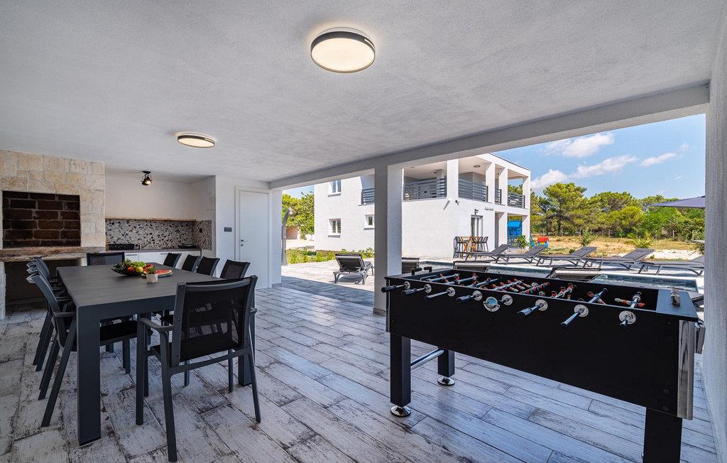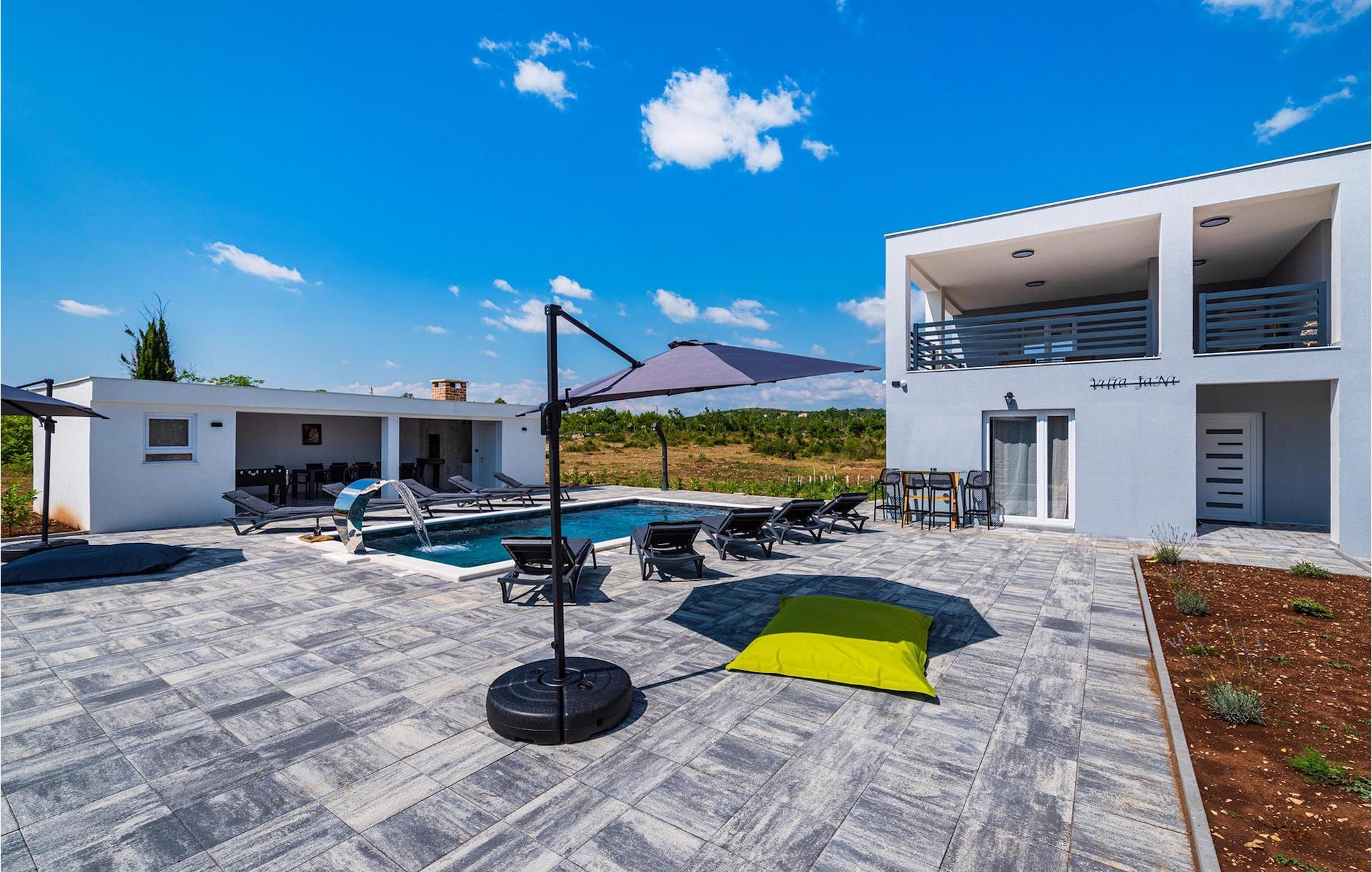 Den smukke villa JaNi beliggende i Gornja Jagodnja er det ideelle valg til en perfekt ferie med familie og venner. Villaen er fuldstændig indhegnet og giver en fredelig ferie for dig, hele familien og kæledyr. Se efter forfriskning i den vidunderlige 32 m2 store swimmingpool og slap af på liggestolene ved poolen og nyd den dalmatiske sol. Denne villa er fuld af faciliteter for hele familien. Hav det sjovt med bordtennis, dart. Test din styrke på volleyballbanen. De yngste gæster vil blive henrykte over legepladsen udstyret med rutsjebane, gynger og klatrestativ. Nyd traditionelle dalmatiske retter tilberedt på grillen i det overdækkede område foran villaen med et spisebord med 10 siddepladser. Villaens indre er en sand oase af hvile og afslapning efter udendørs aktiviteter. Slap af i saunaen i villaens stueetage. I stueetagen af villaen er der et åbent rum med et fuldt udstyret køkken med spisestue og en komfortabel stue til eftermiddags socialt samvær med sine kære. To moderne designbadeværelser og et separat toilet er også placeret i stueetagen. Villaen har 5 soveværelser. Soveværelserne vil give dig den ønskede hvile og afslapning. Alle værelser har aircondition og tv. To soveværelser med dobbeltsenge er placeret i villaens stueetage, mens de resterende tre soveværelser med dobbeltsenge er placeret på villaens første sal. Der er yderligere to badeværelser på første sal. Tilbring din morgen med at vågne op med kaffe på terrassen på første sal i villaen med et charmerende bord og stole. Gå ikke glip af din drømmefamilieferie på Villa JaNi. Nyd en unik ferie i denne smukke villa i Dalmatien, der vil efterlade alle forpustede. Villa JaNi ligger i landsbyen Gornja Jagodnja, nær byerne Benkovac og Biograd na moru. Landsbyen Gornja Jagodnja er en autentisk, malerisk landsby beliggende på Ravnokotar-sletten, kendt for sin udviklede landturisme. Du vil blive fascineret af dets gastronomiske tilbud fra lokale landhusholdninger. Centrum af denne mere frugtbare slette på den dalmatiske kyst er Benkovac. Historieelskere vil blive henrykte over Benkovac med sine kulturelle og historiske seværdigheder, arkæologiske steder med genstande fra den neolitiske æra. Hav det sjovt på de traditionelle etniske festivaler eller på Benkovac-messen, se efter håndlavede autentiske produkter fra denne region i Dalmatien til tilberedning af traditionelle retter på Villa JaNi. Gå ikke glip af at besøge Meštrovic-familiens mausoleum, det lokale museum i Benkovac, byens bibliotek. For den næste destination skal du vælge Biograd na moru. Et velkendt yndet sommerferiested med smukke sandstrande fyldt med spændende aktiviteter. I denne dynamiske by med to lystbådehavne kan du nyde at sejle, besøge festivaler, en forlystelsespark og mange andre faciliteter. Gå til turistcentret Pakoštana. I Pakoštane kan du besøge kirkerne St. Justin, St. Michael, St. Deadline. Besøg Vrana Lake Nature Park, den største naturlige sø i Kroatien. Gå ikke glip af at besøge adskillige øer såsom Pašman, Galesnjak og NP Kornati. I slutningen af det dalmatiske eventyr er den uundgåelige destination Zadar, Kroatiens kulturelle og historiske vugge, berømt for kirkerne St. Donata, St. Stošija og St. Mary, Havorgel og Salutation to the Sun.