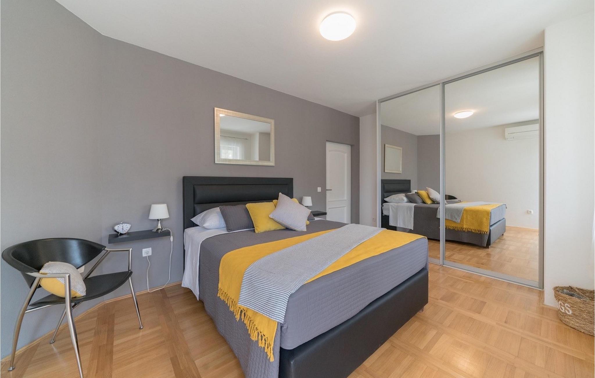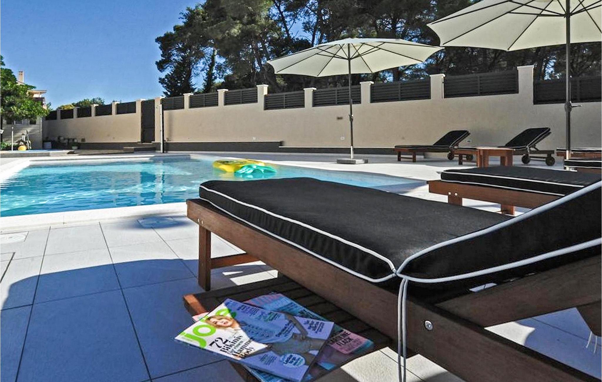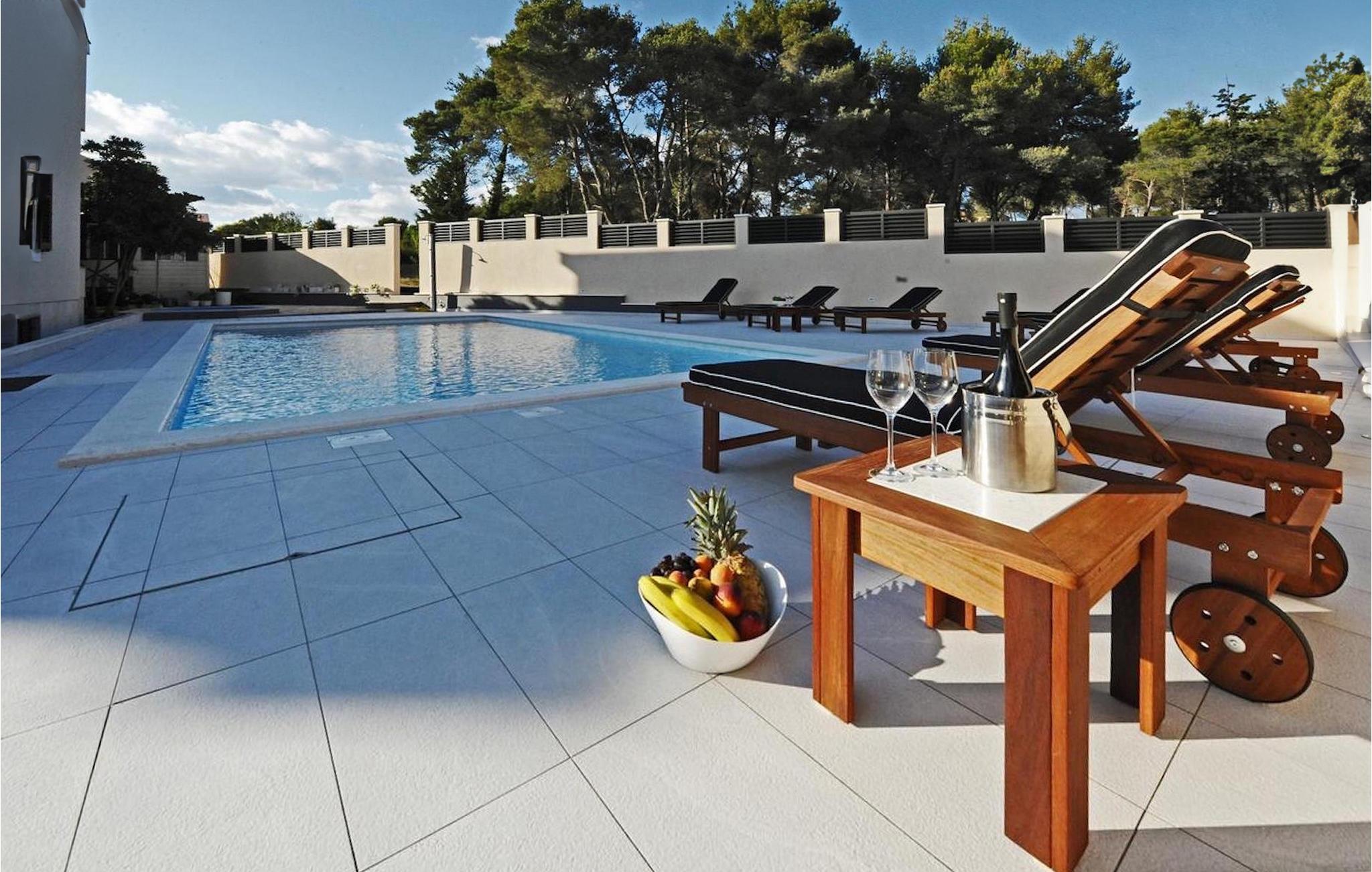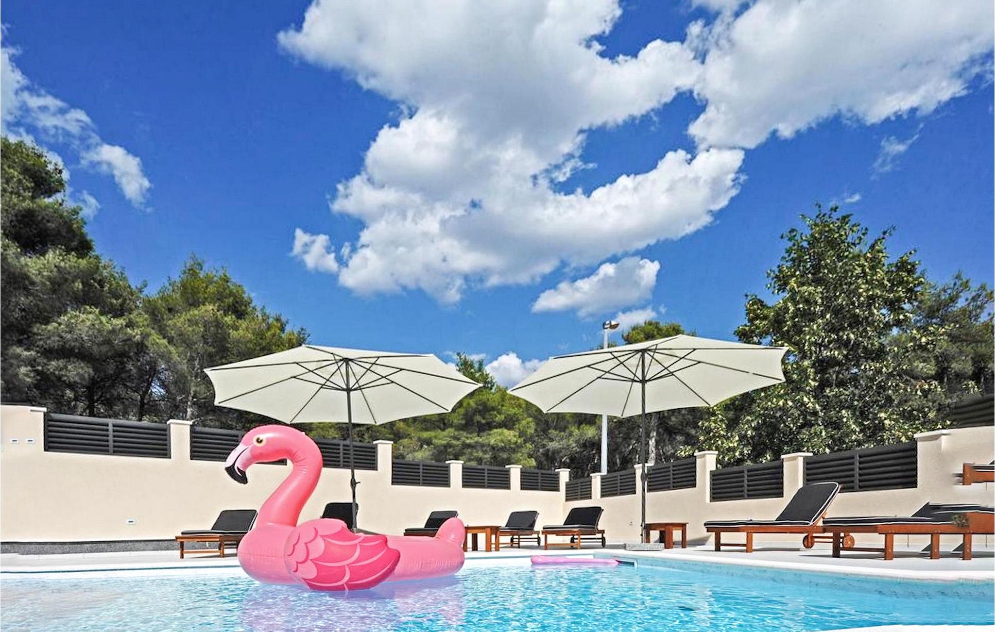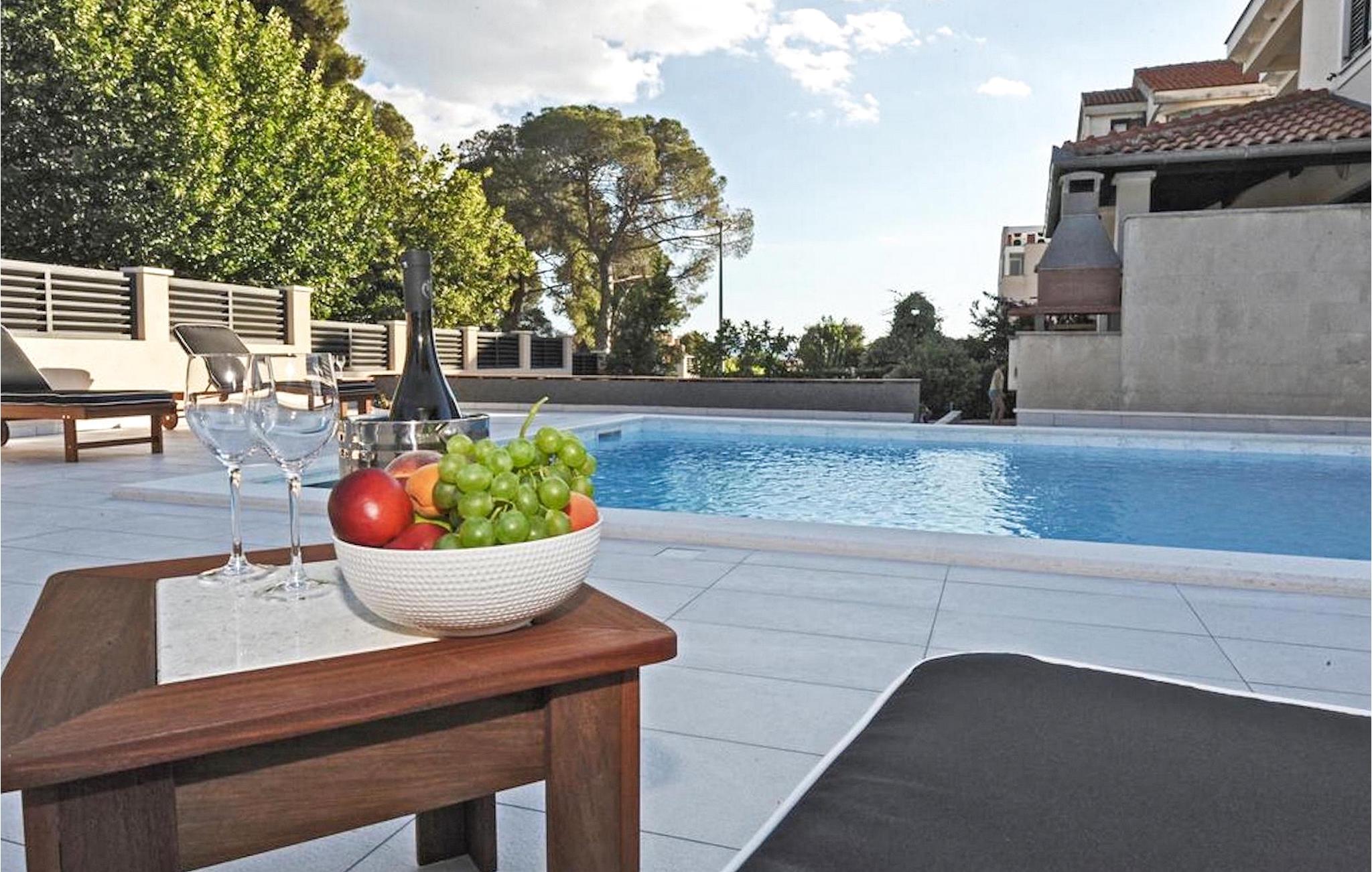 Den smukke familie Villa Ella Zadar er det ideelle valg til en drømmeferie for familie og venner. Denne villa vil især appellere til gæster, der værdsætter nærhed til havet. Villaen er helt indhegnet, så du får en ubekymret ferie med dine kæledyr. I sommervarmen kan du køle af i den smukke 50 m2 store swimmingpool. Slap af i den udendørs jacuzzi. Nyd den dalmatiske sol med forfriskende drinks på liggestolene ved poolen og mærk middelhavsatmosfæren. Villaen er rig på underholdning for hele familien. Hav det sjovt med at spille bordtennis og dart. De yngste gæster vil blive henrykte over legepladsen, der er udstyret med gynger og rutsjebane. Tilbered traditionelle dalmatiske retter på grillen i et overdækket indendørs område ved poolen med et fuldt udstyret udendørs køkken og 12 siddepladser. Skab uforglemmelige minder og nyd middelhavsstemningen med dine kære, mens du samles ved bordet med bænke i det overdækkede område ved siden af poolen. God fornøjelse inde i villaen og prøv billard. I stueetagen af villaen er der et åbent rum med et fuldt udstyret køkken og spisestue. Tilbring tid sammen i den komfortable stue i villaens stueetage. Det første soveværelse med 2 enkeltsenge og et moderne badeværelse og separat toilet er også placeret i villaens stueetage. De resterende 3 soveværelser med dobbeltsenge og yderligere to badeværelser er placeret på første sal i villaen. Klimaanlæg er placeret i soveværelserne på første sal. Villa Ella Zadar er ideel til at udforske den smukke Zadar-øhav og tilbringe en uforglemmelig og autentisk ferie. Vælg en sjov ferie for familie og venner på Villa Ella Zadar i Zadars turistcenter. Zadar er en by beliggende i den nordlige del af Dalmatien, omgivet af det blå Adriaterhav. Det er en kombination af historie, tradition og byliv, hvilket gør den til en ideel by for elskere af historie og kultur. Besøg talrige museer, såsom det arkæologiske museum, nationalmuseet og hertugens palads. I Zadar, Kroatiens kulturelle og historiske vugge, kan du besøge kirkerne St. Donata, St. Stošija og St. Mary, Skt. Šimunas kiste, Kalelargas hovedgade, Havorgelet og en hilsen til solen. Dens Muraj bymure, som forsvarede byen mod angribere i århundreder, er på UNESCOs liste over verdens kulturarv. Tag en tur på en båd drevet af barkajoli og bliv en del af en 3000 år gammel tradition. Mærk det ægte Middelhav, besøg det lokale marked, et rigt gastronomisk tilbud med toprestauranter og attraktivt natteliv i strandbarer med smukke strande, hvoraf vi fremhæver strandene i den maleriske by Petrcani. Øerne i Zadar-øgruppen som Molat, Ugljan, Dugi otok, Vir, Pag er destinationer, du skal se. Du vil især blive overrasket over den naturlige skønhed, hvis du besøger NP Kornati og NP Telašcica. En fremragende destination for en dagstur er den ældste kroatiske kongeby, Nin. Nin er kendt for sine sandstrande, talrige arkæologiske steder og katedralen St. Cross, den mindste katedral i verden. I slutningen af dit besøg i Nin skal du røre ved tommelfingeren af statuen af Gregor af Nin, som ifølge traditionen bringer held og lykke. Temperaturen i den opvarmede swimmingpool er afhængig af eksterne faktorer, herunder vejrforhold, og som sådan kan temperaturen på vandet ikke garanteres.