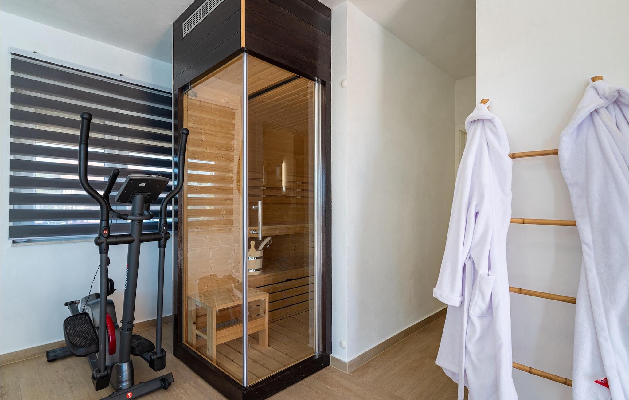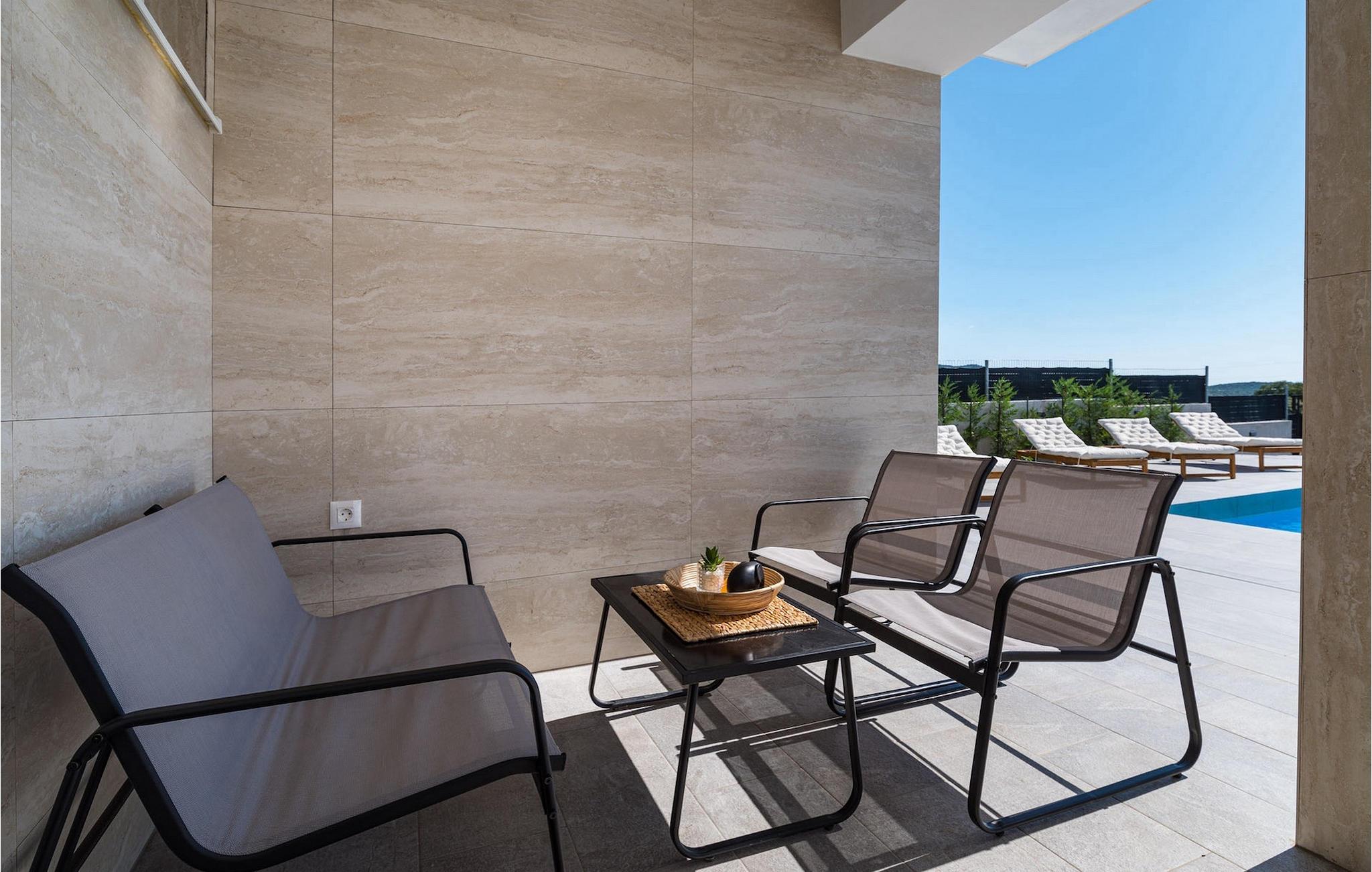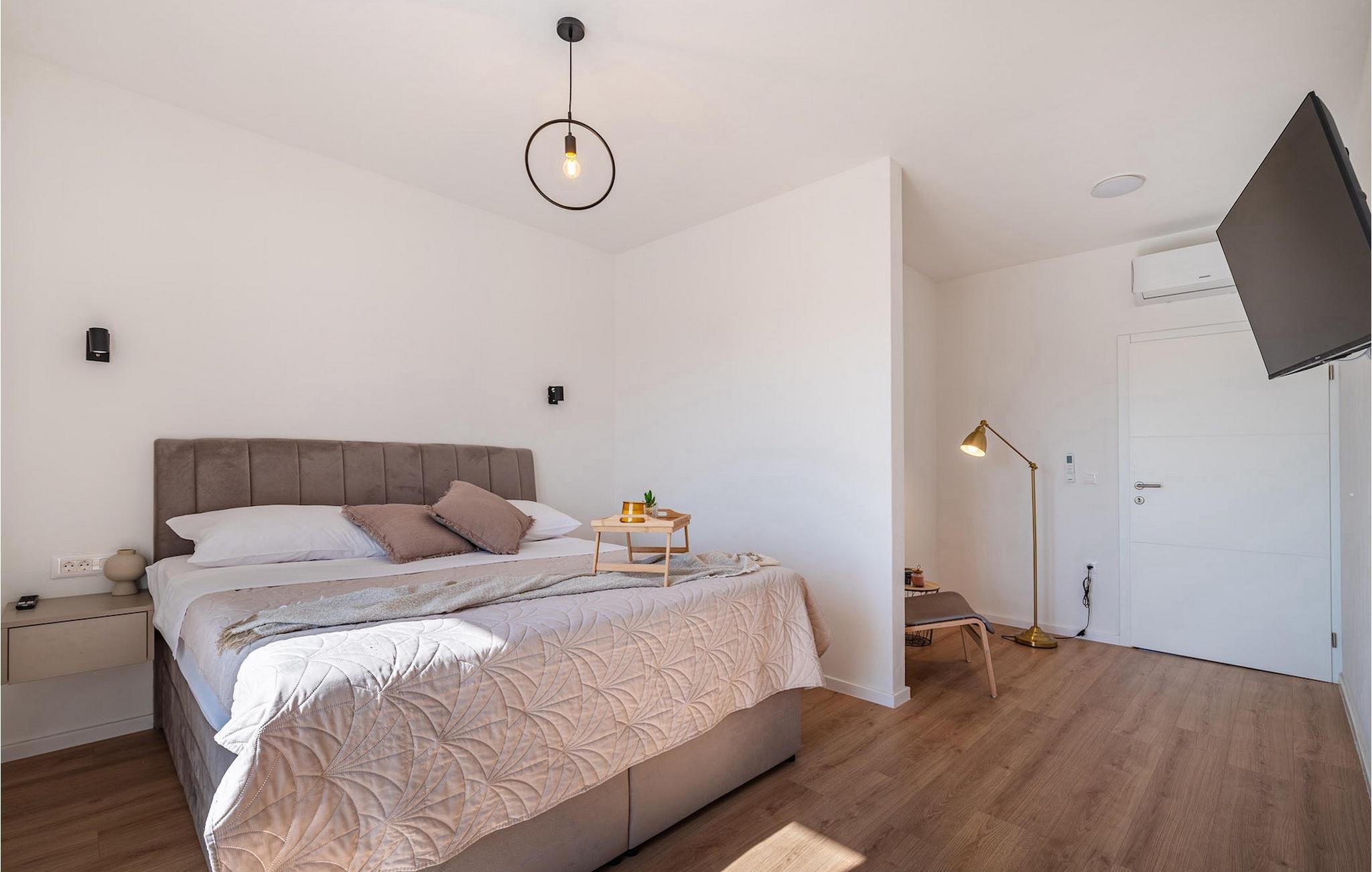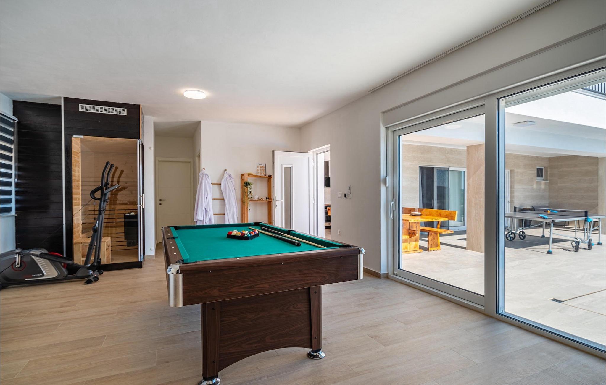 Ønsker du en afslappende ferie, ro og komfort langt væk fra hverdagen? Så er Villa Tea Polaca for op til 10 gæster nær Zadar det rigtige sted for dig! Dette elegante og moderne feriehus med 5 værelser tilbyder dig alt hvad du behøver til en uforglemmelig ferie i Dalmatien med familie og venner. Hjertet i Villa Tea Polaca er den 40m2 forfriskende swimmingpool, hvor du helt sikkert vil tilbringe det meste af din tid. Føl dig godt tilpas med en kølig drink på en af liggestolene, mens familiemåltidet tilberedes på kulgrillen i det åbne sommerkøkken. Du kan også holde øje med børnene, når de render rundt i haven, spiller bordtennis eller holder en turnering ved fodboldbordet. Tilbring varme sommeraftener med hele familien ved det store spisebord på den overdækkede terrasse. I naboejendommen sørger Orbitrek for din fitness, og saunaen giver afslapning. Et ekstra badeværelse med bruser er tilgængeligt her. Ind i det fuldt klimatiserede interiør af Villa Tea Polaca fra udendørsområdet kommer du ind i den lyse stue med TV. I tilknytning hertil ligger det fuldt udstyrede køkken og spiseplads, samt et gæstetoilet. På samme niveau er der også 2 komfortable dobbeltværelser, hver med sit eget ensuite badeværelse. Trappen fører dig til yderligere 3 smukke soveværelser, hver med en dobbeltseng. Disse soveværelser har også hver deres badeværelse med bruser. Hvert soveværelse har tv og aircondition. Her kommer du også ud til altanen, som byder på lidt privatliv, og hvorfra du kan nyde en vidunderlig udsigt over det omkringliggende område eller den klare stjernehimmel om aftenen. Forkæl dig selv og dine kære med kun det bedste, book nu og tilbring din drømmeferie i Dalmatien i den fantastiske Villa Tea Polaca! Den fantastiske Villa Tea Polaca ligger i den lille rolige landsby Polaca, kun 11 km fra Biograd na Moru og ikke så langt fra den berømte historiske by Zadar. Ud over havet, som kun ligger 11 km væk, byder området omkring Villa Tea Polaca på en bred vifte af naturlig skønhed og kulturelle attraktioner. Byerne Zadar og Sibenik, fulde af kultur og historie, er bestemt et besøg værd. Det berømte turiststed Biograd na Moru byder på tonsvis af aktiviteter, restauranter og strande, samt Fun Park Mirnovec, hvis du er i humør til lidt adrenalin. Der er flere nationalparker at vælge imellem i denne region: Kornati, Krka, Paklenica, North Velebit Nature Park og Vransko Lake. Naturelskere vil finde det svært at beslutte sig. Vælg lidt af hvert og nyd din ferie fuldt ud. Temperaturen i den opvarmede swimmingpool er afhængig af eksterne faktorer, herunder vejrforhold, og som sådan kan temperaturen på vandet ikke garanteres.