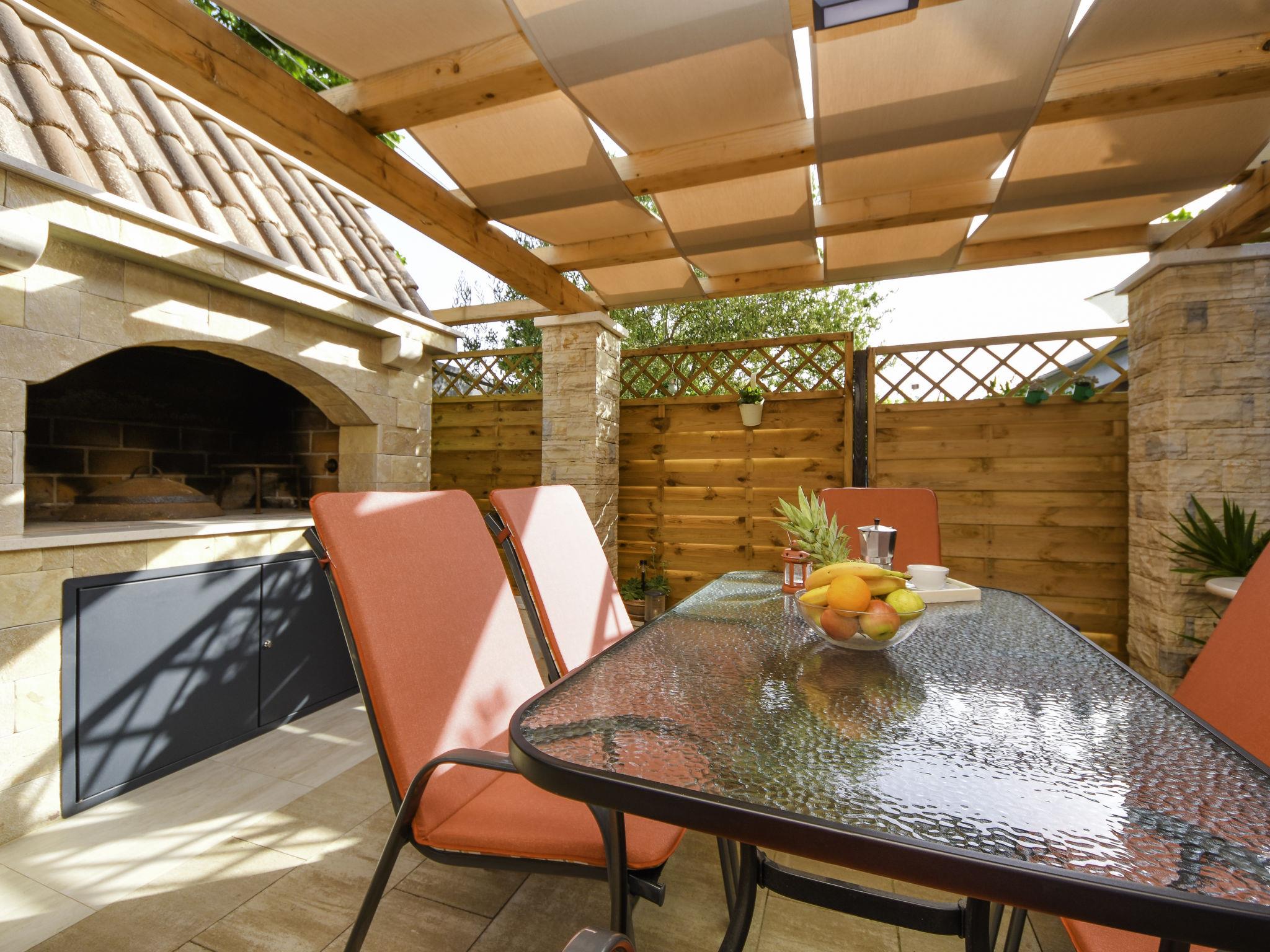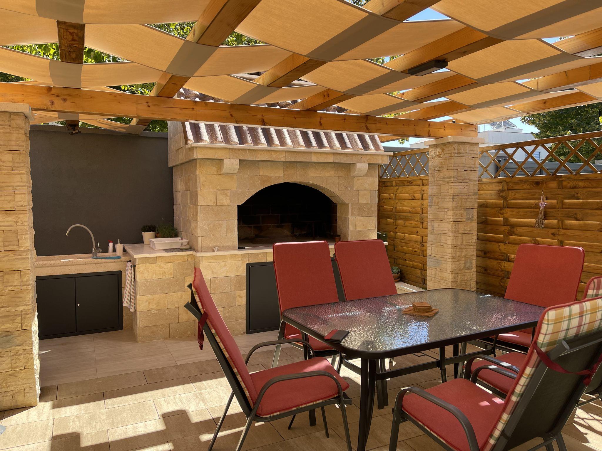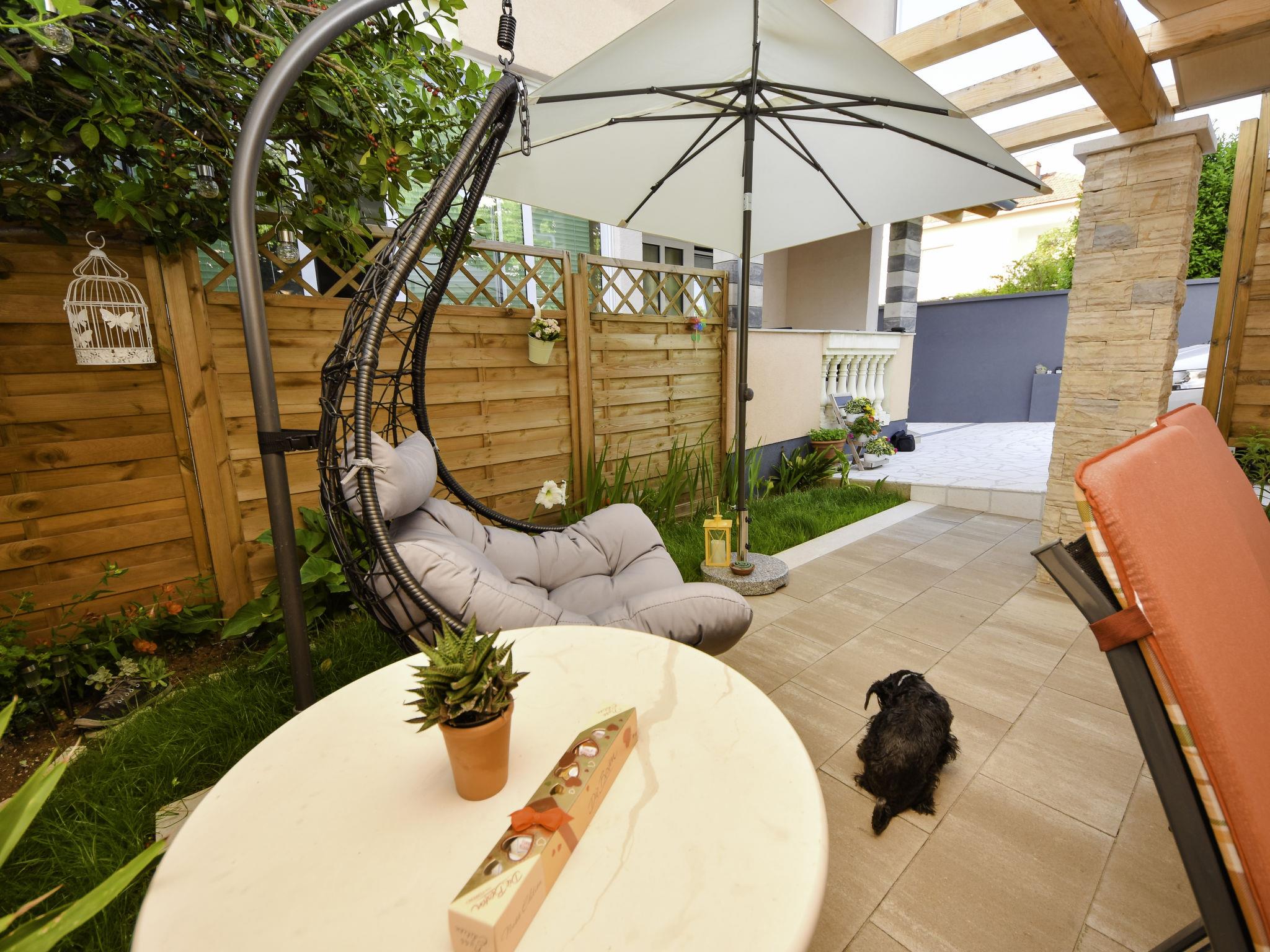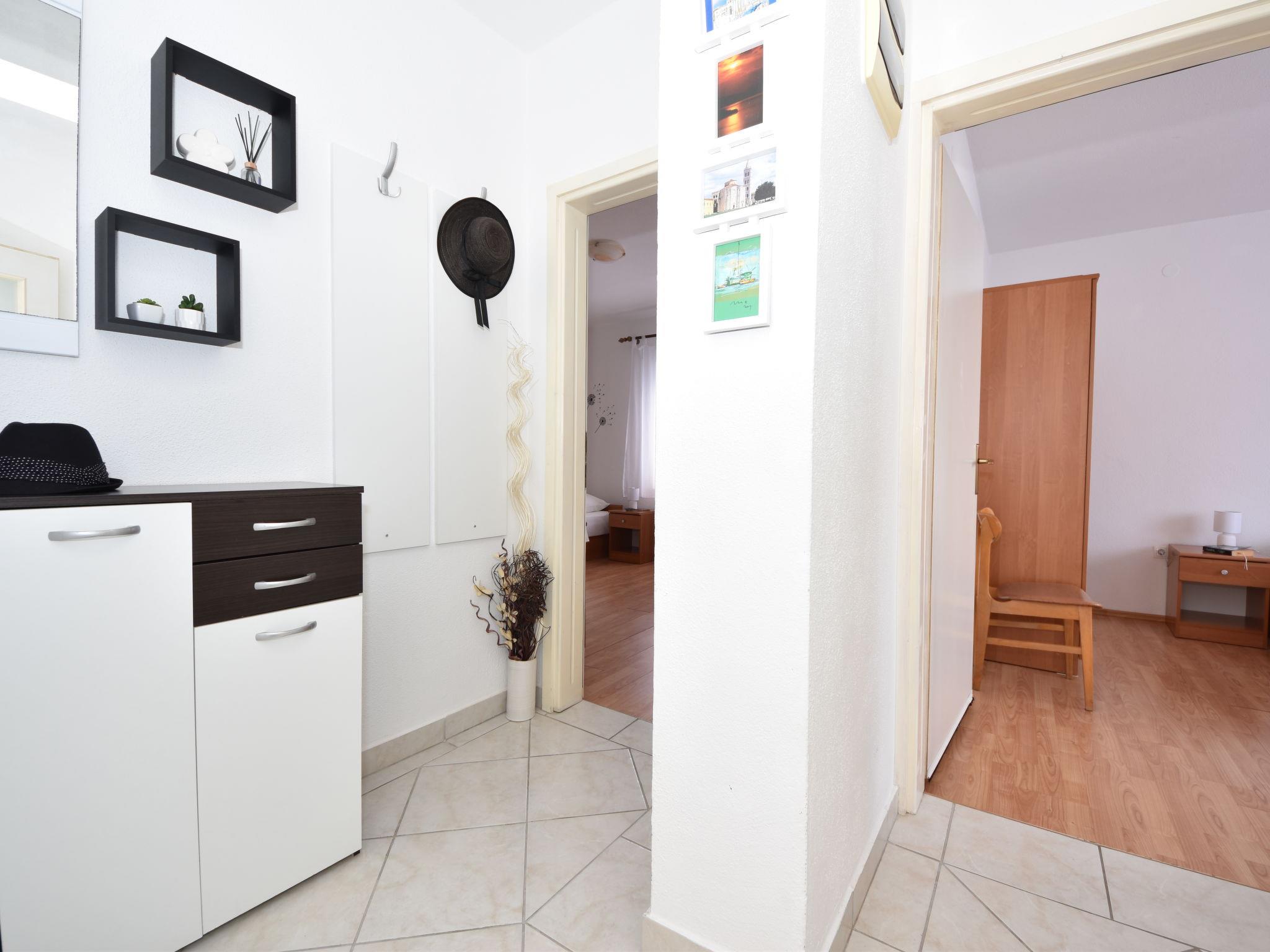 "Katarina", 3-room apartment 60 m2, on the ground floor, south facing position. Living/dining room 25 m2 with TV and air conditioning. Exit to the terrace. 1 room with 1 double bed (2 x 80 cm, length 200 cm). 1 room with 2 beds (90 cm, length 200 cm). Open kitchen (4 hot plates, oven, microwave, freezer, electric coffee machine). Shower/WC. Air-conditioning (extra). No heating option. Terrace 5 m2, roofed. Terrace furniture, barbecue (portable). Facilities: washing machine, iron, hair dryer. Internet (WiFi, free). Maximum 1 pet/ dog allowed.