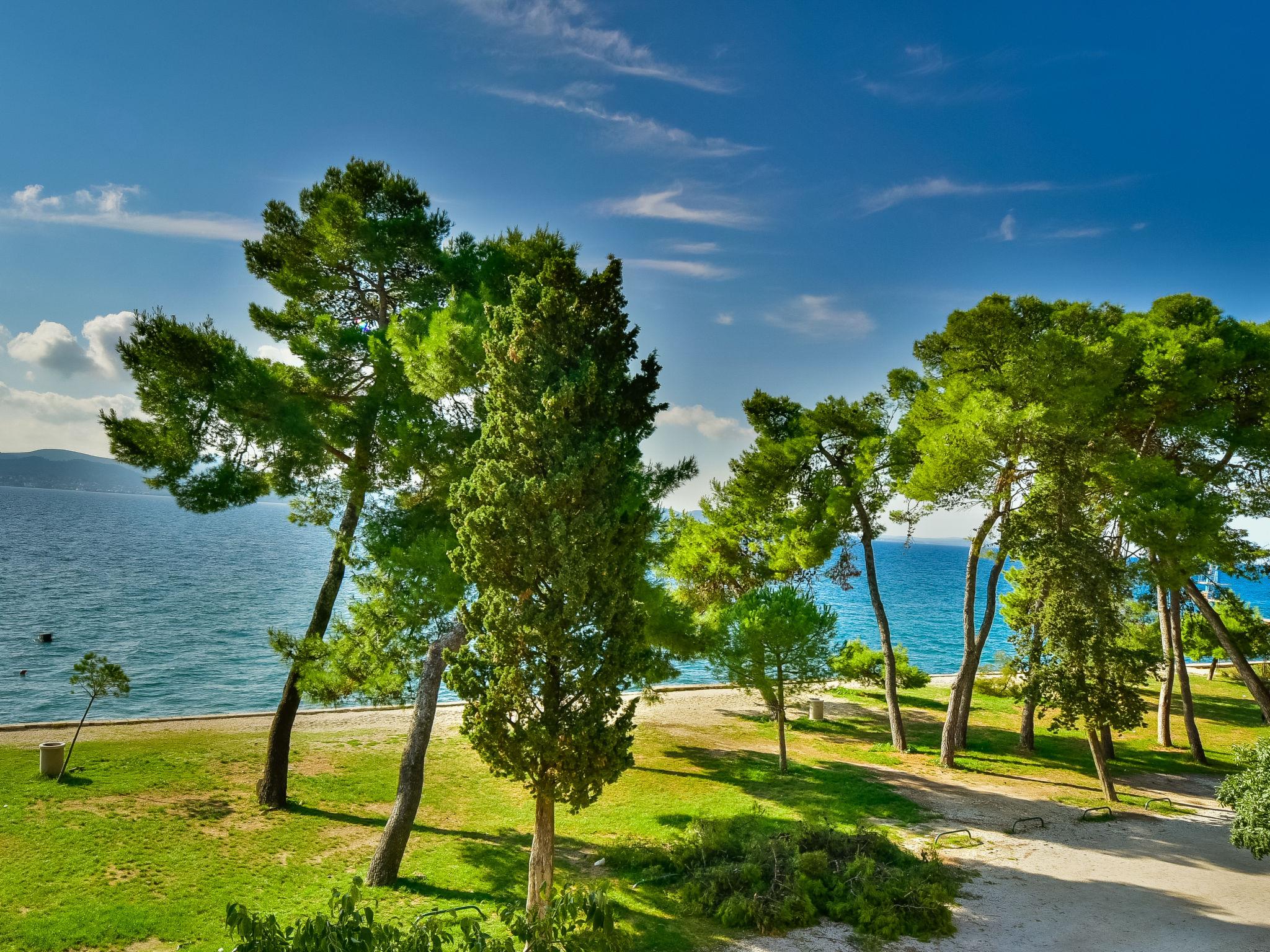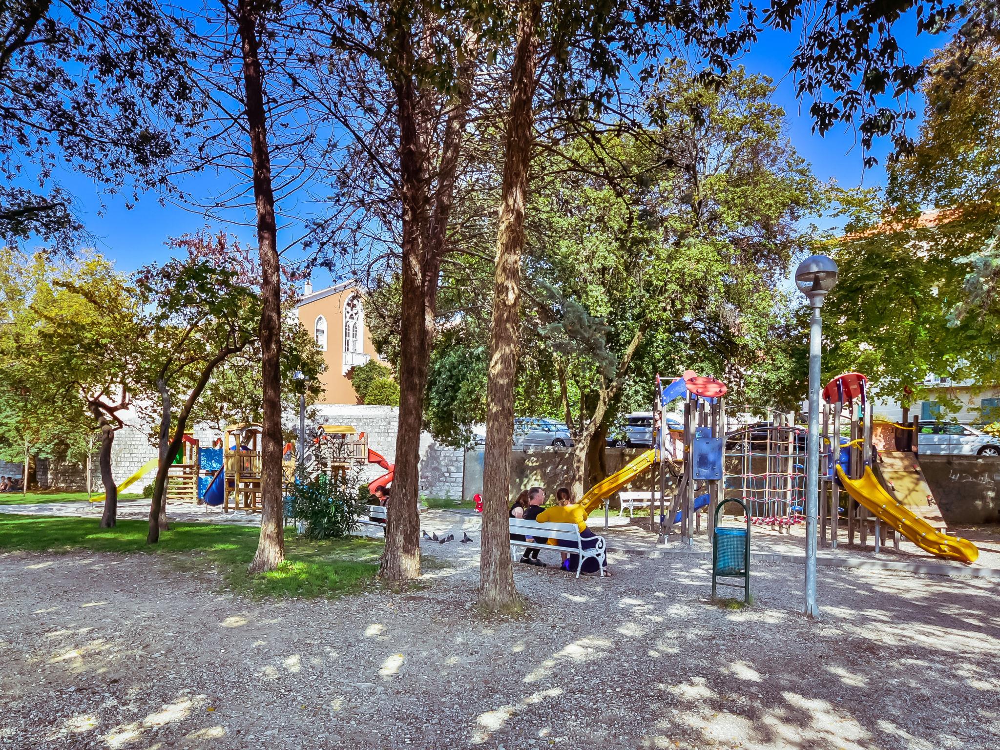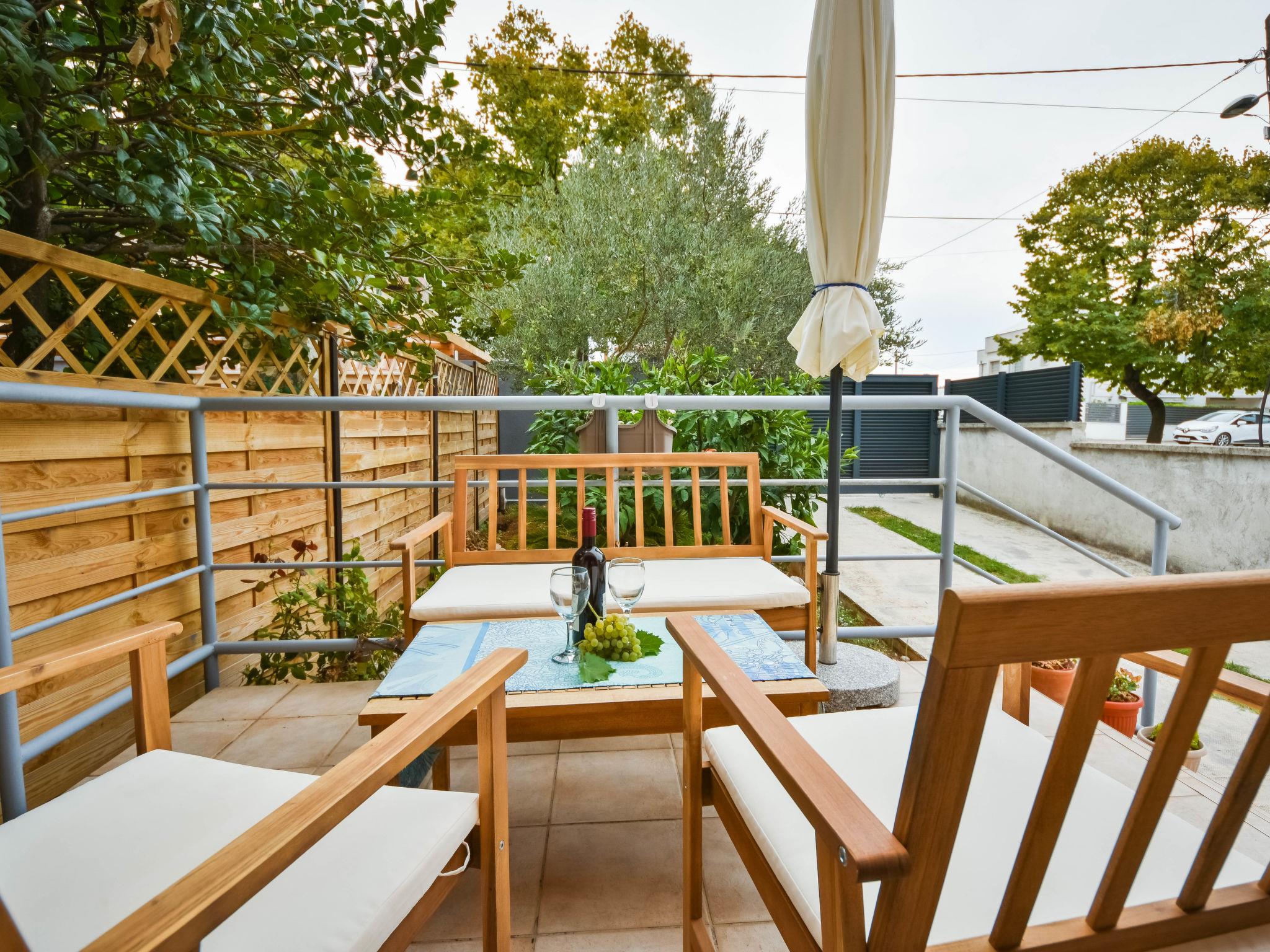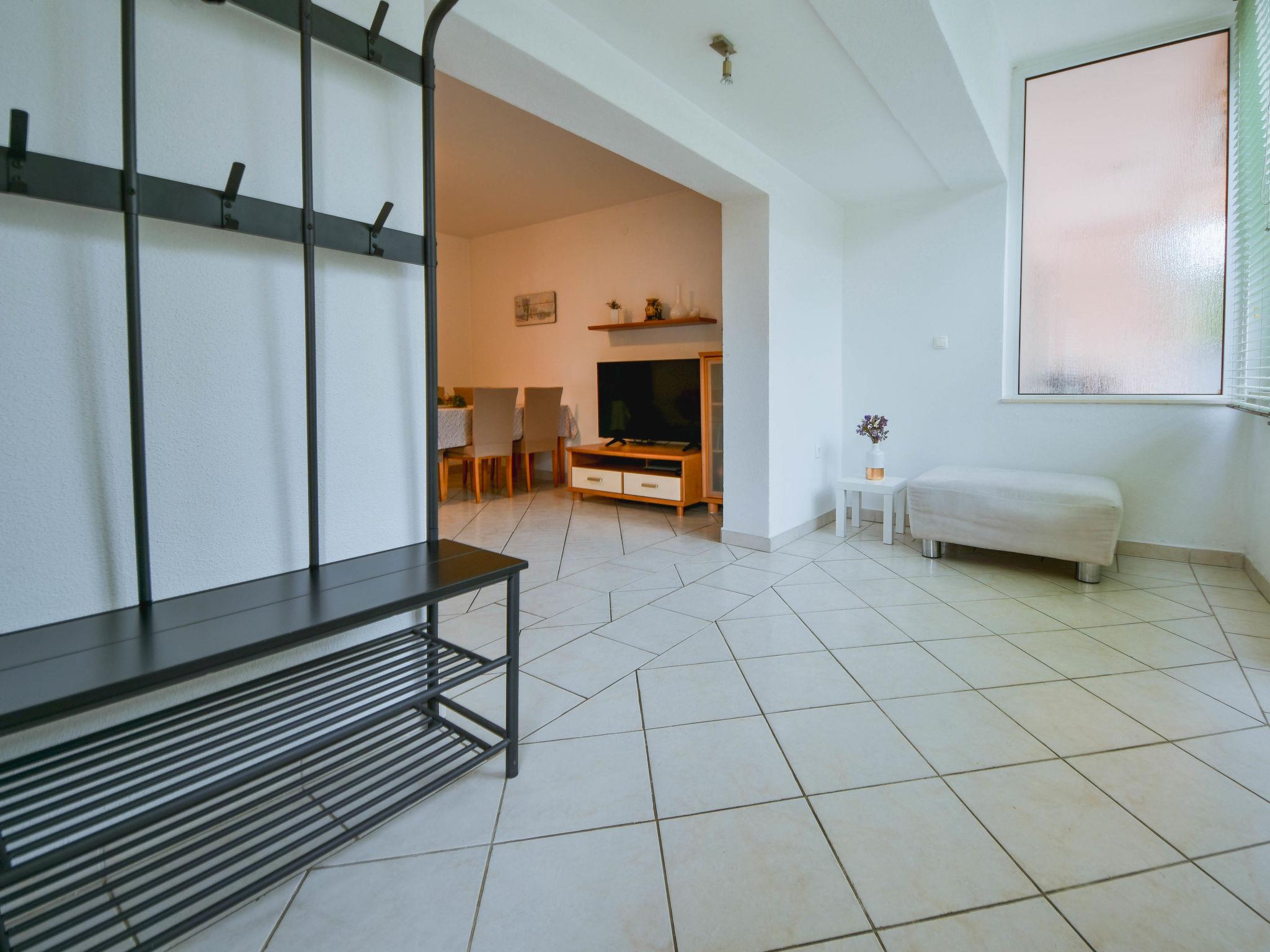 "Mia", 3-room apartment 60 m2, on the ground floor, south facing position. Living/dining room 25 m2 with TV and air conditioning. Exit to the terrace. 1 room with 1 double bed (2 x 80 cm, length 200 cm). 1 room with 2 beds (90 cm, length 200 cm). Open kitchen (4 hot plates, oven, microwave, freezer, electric coffee machine). Shower/WC. Air-conditioning (extra). No heating option. Terrace 5 m2, roofed. Terrace furniture, barbecue (portable). Facilities: washing machine, iron, hair dryer. Internet (WiFi, free). Maximum 1 pet/ dog allowed. UP/I-335-03/20-01/3430