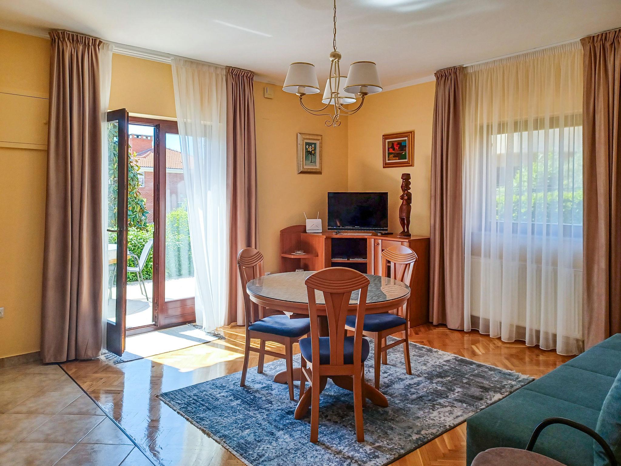 3-family house "Stana". In the district of Diklo, 5 km from the centre, in a quiet, sunny, elevated position, 300 m from the sea, 350 m from the beach. For shared use: property 1'100 m2 (fenced), garden with lawn and plants. Barbecue. In the house: internet access. Parking at the house on the premises. Shop 250 m, restaurant 500 m, bus stop 5.7 km, pebble beach 350 m. Tennis 1.5 km.