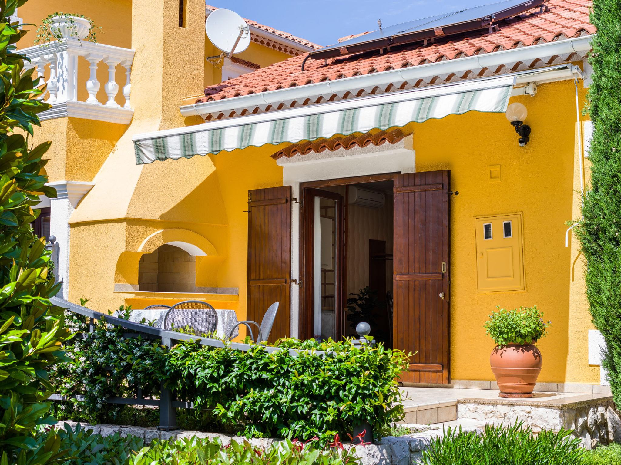 2-room apartment 41 m2, on the ground floor, south-west facing position. Living/dining room 25 m2 with satellite TV and air conditioning. Exit to the terrace. 1 room with 1 double bed (2 x 90 cm, length 200 cm). Open kitchen (2 hot plates, oven, freezer). Bath/WC. No heating option. Terrace 20 m2. Terrace furniture. Facilities: Internet (WiFi, free).