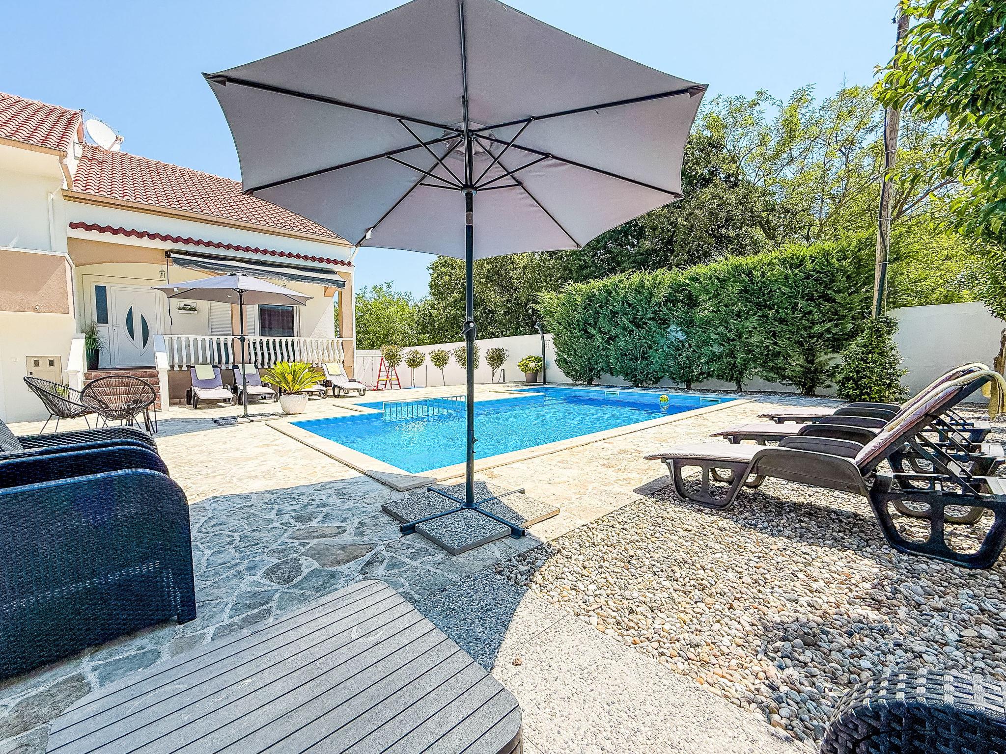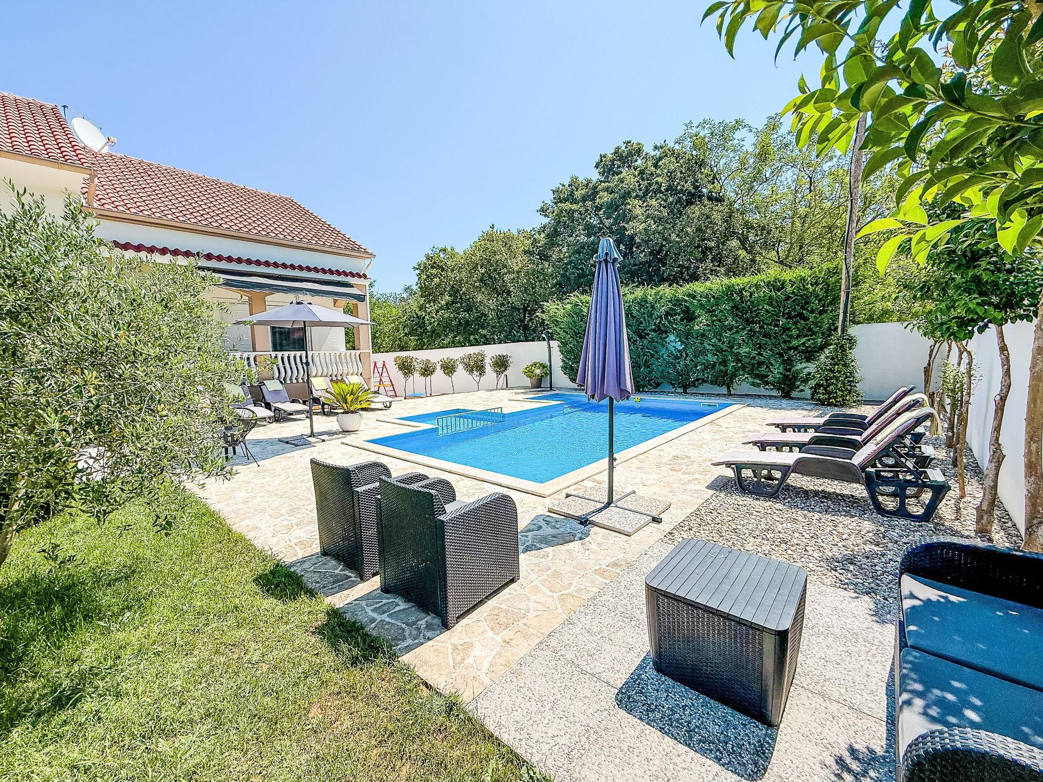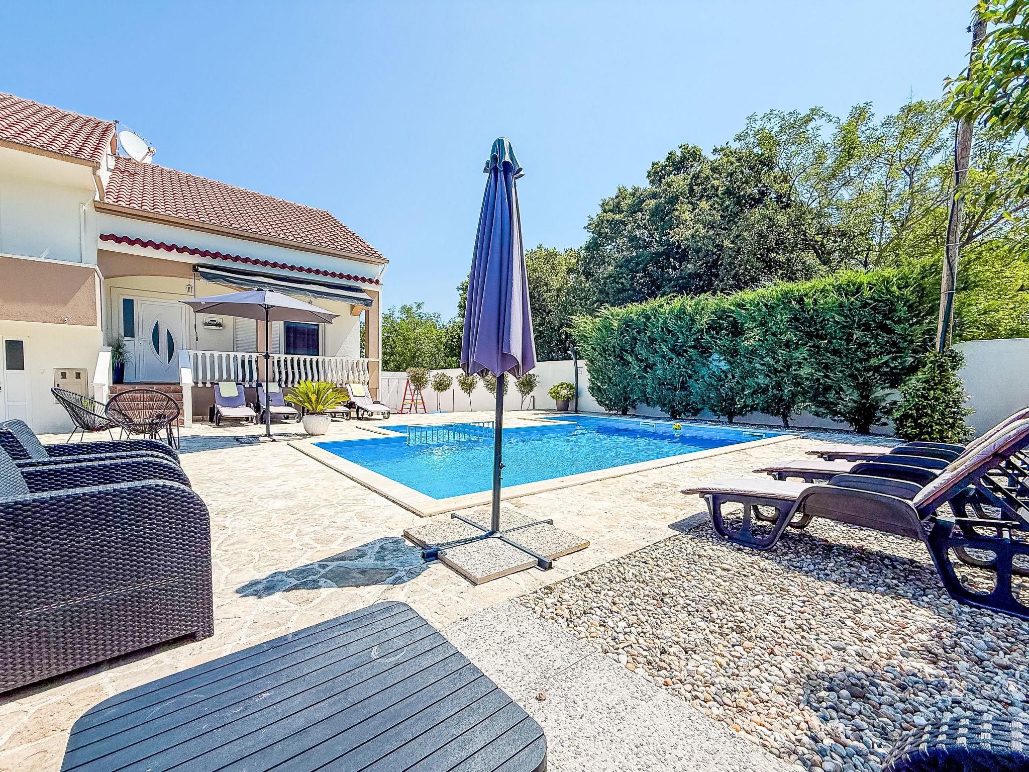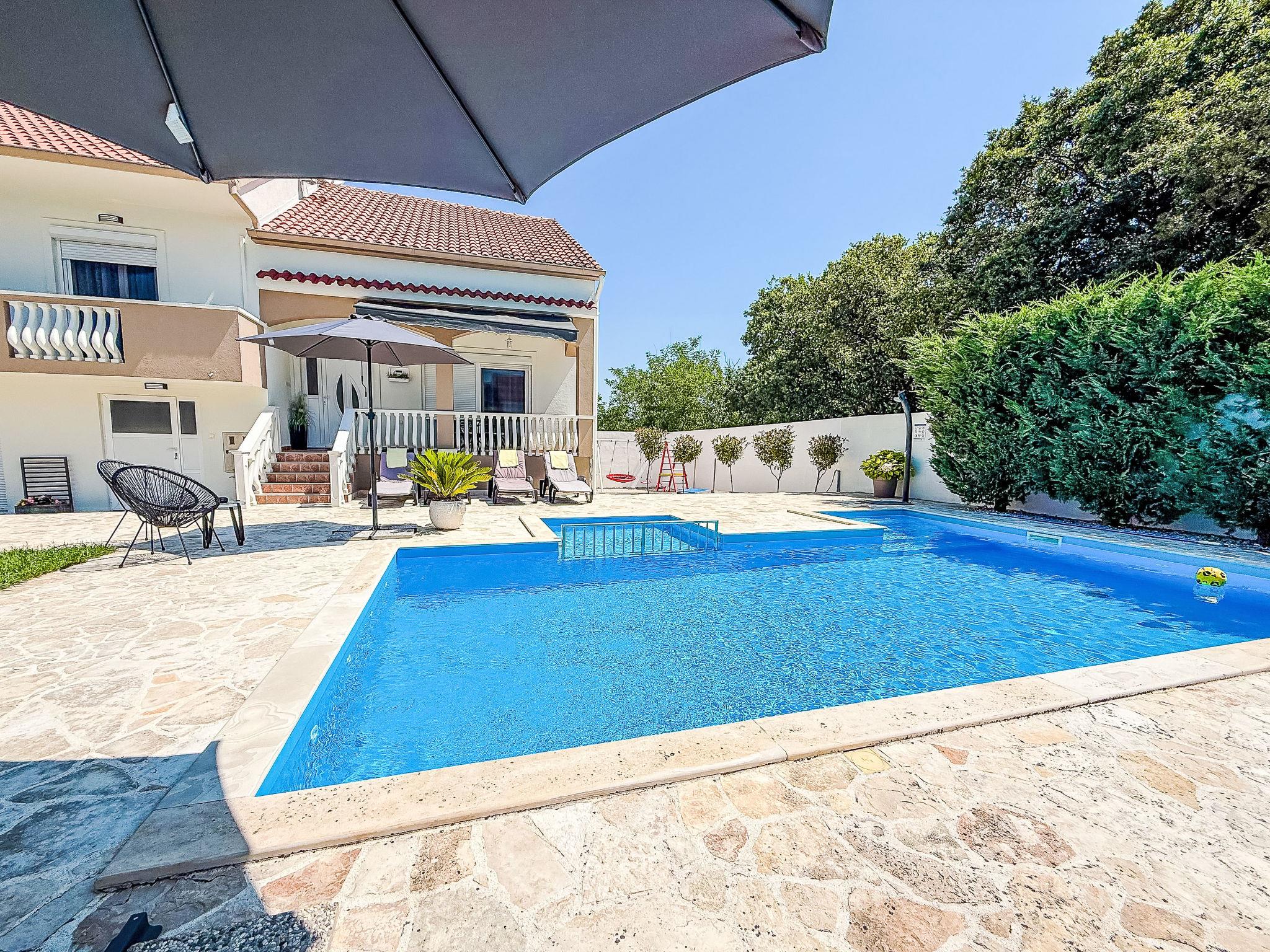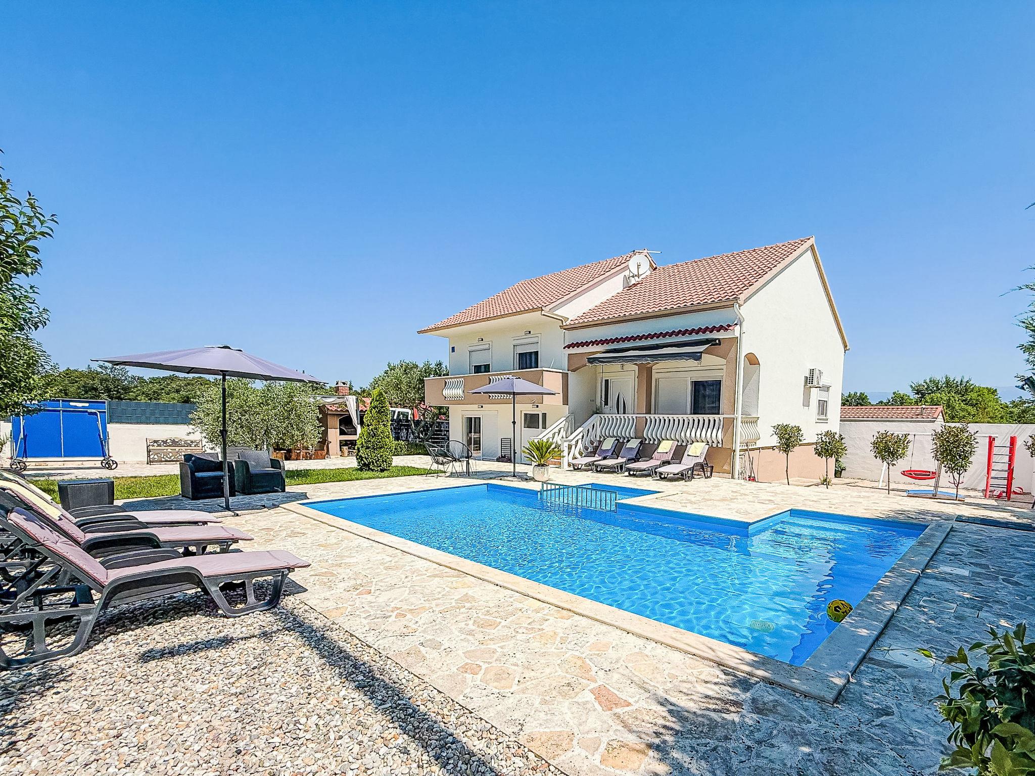Briševo 11 km from Zadar: Single-family house "Tina & Tino", 3 storeys. In a sunny position, 11 km from the sea, located by a road. Private: property 1'300 m2 (fenced), swimming pool angular (8 x 4 m, depth 140 cm, seasonal availability: 02.May. - 26.Sep.) with internal staircase. Outdoor shower, garden furniture, barbecue. In the house: internet access, washing machine. Parking (for 3 cars) at the house on the premises. Shop 500 m, restaurant 2.3 km, bus stop 4 km, pebble beach 11 km. Tennis 15 km. Nearby attractions: Aquapark 15 km.