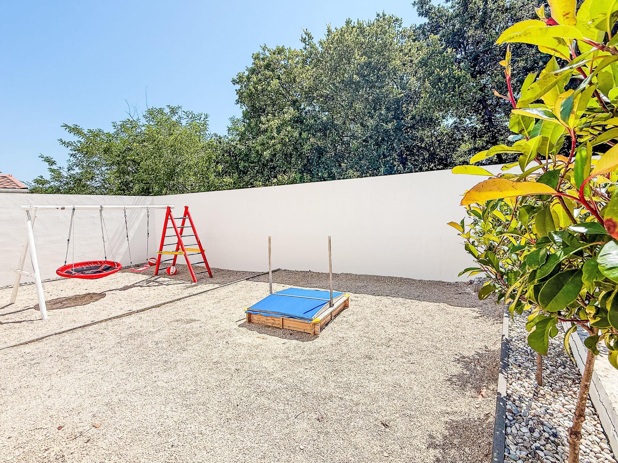 6-room house 150 m2 on 3 levels, south-west facing position. Living/dining room 37 m2 with satellite TV (flat screen), air conditioning. Exit to the terrace. Open kitchen (oven, dishwasher, 4 ceramic glass hob hotplates, microwave, freezer, electric coffee machine). Sep. WC. On the lower ground floor: 2 rooms, each room with 2 beds (90 cm, length 200 cm), air conditioning. 2 showers/WC. Upper floor: 1 room with 1 french bed (160 cm, length 200 cm), air conditioning. 1 room with 1 french bed (160 cm, length 200 cm), air conditioning. Exit to the terrace. 1 room with 1 french bed (180 cm, length 200 cm), air conditioning. Exit to the terrace. Bath/shower/WC. No heating option. 2 terraces 9 m2, covered. Terrace furniture, deck chairs. View of the swimming pool. Facilities: hair dryer. Internet (WiFi, free). 1 small pet/ dog allowed.