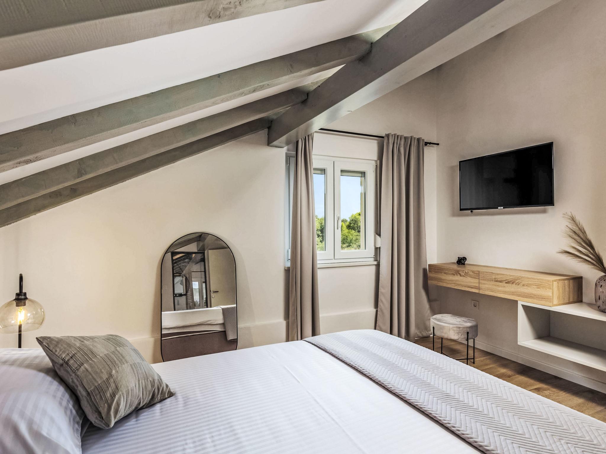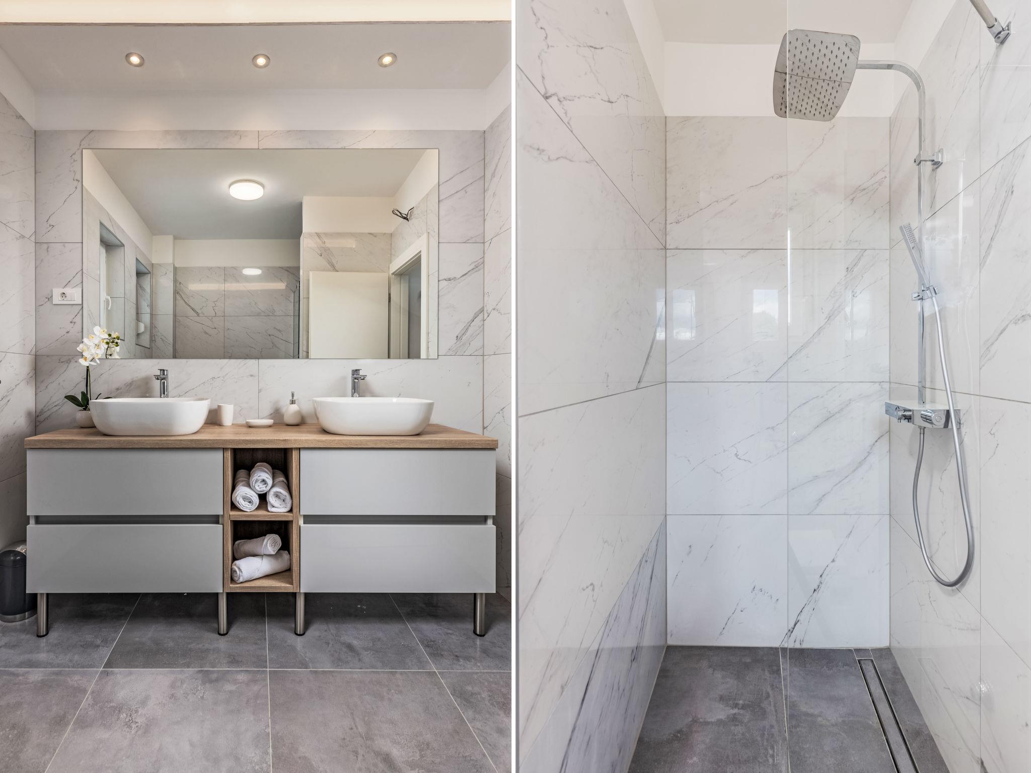 5-room house 250 m2 on 2 levels, south-west facing position. Living/dining room 37 m2 with satellite TV (flat screen), air conditioning. Exit to the terrace. 2 rooms, each room with 1 french bed (160 cm, length 200 cm), satellite TV and air conditioning. Open kitchen (oven, dishwasher, 4 ceramic glass hob hotplates, microwave, freezer, electric coffee machine). 2 showers/WC. Upper floor: 2 rooms, each room with 1 french bed (160 cm, length 200 cm), satellite TV and air conditioning. Bath/WC, shower/WC. No heating option. 2 terraces 9 m2, covered. Terrace furniture, deck chairs. View of the swimming pool. Facilities: hair dryer. Internet (WiFi, free).