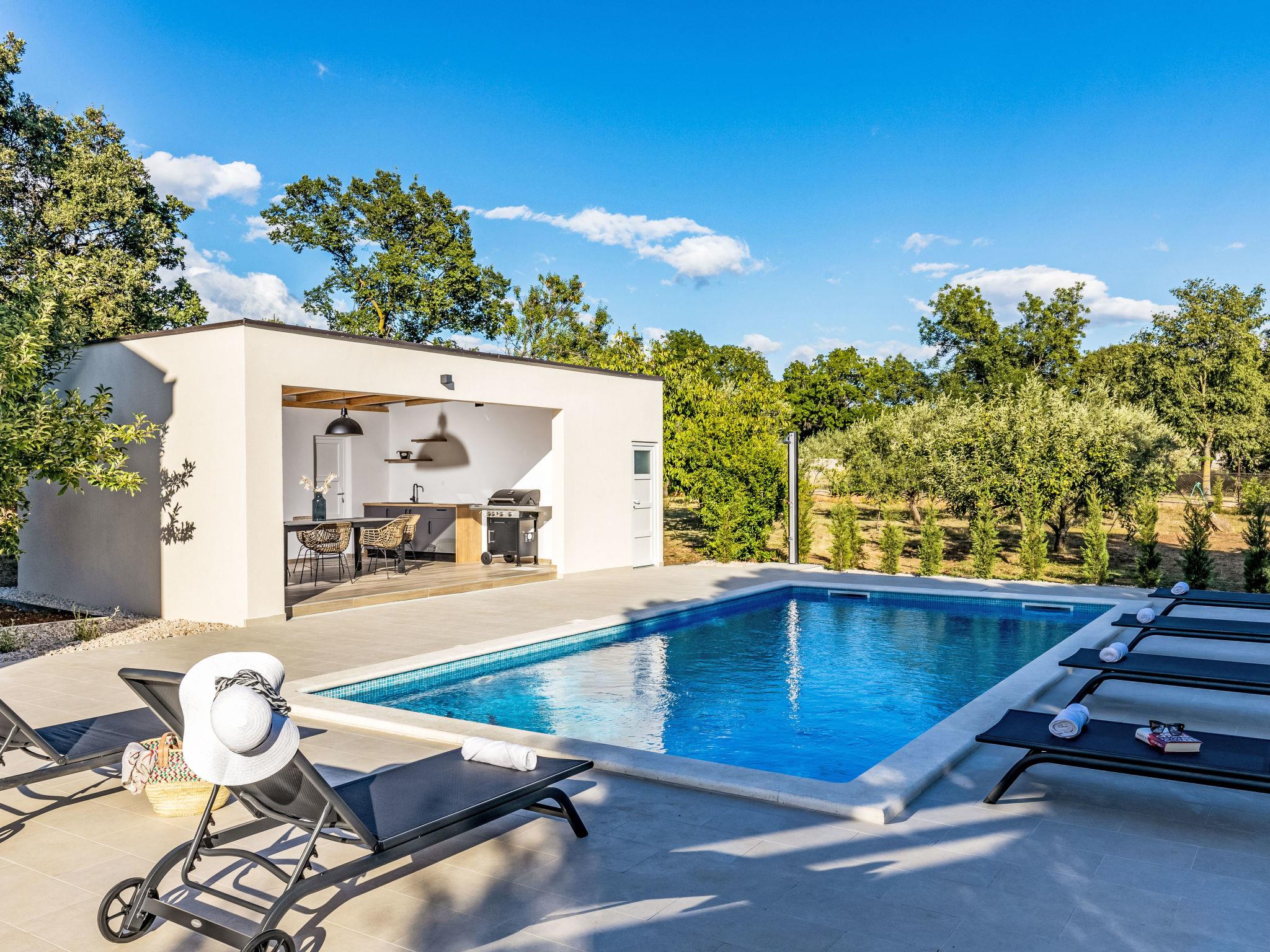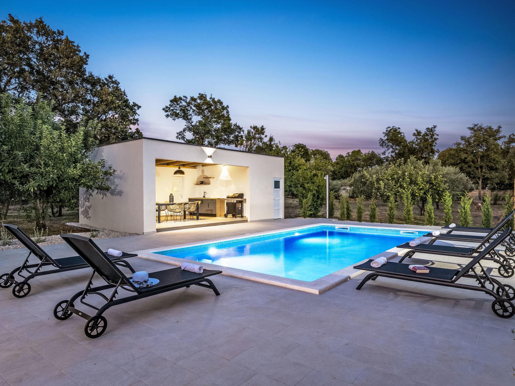 Briševo 11 km from Zadar: Single-family house "Certus", 2 storeys. In a sunny position, 11 km from the sea, located by a road. Private: property 2'600 m2 (fenced), swimming pool angular (8 x 4 m, depth 140 cm, seasonal availability: 02.May. - 26.Sep.) with internal staircase. Outdoor shower, garden furniture, barbecue. In the house: internet access, washing machine. Parking (for 4 cars) at the house on the premises. Shop 500 m, restaurant 2 km, bus stop 1 km, pebble beach 11 km. Tennis 15 km. Nearby attractions: Aquapark 15 km, Nationalpark Krka 72 km, Nationalpark Plitvice 126 km, Nationalpark Kornati 40 km, Nationalpark Paklenica 46 km.