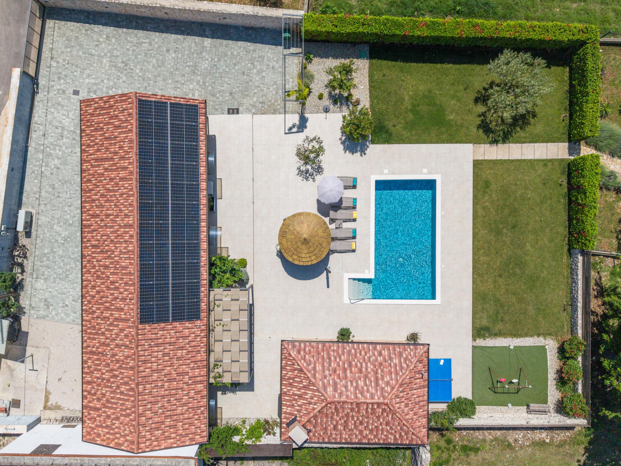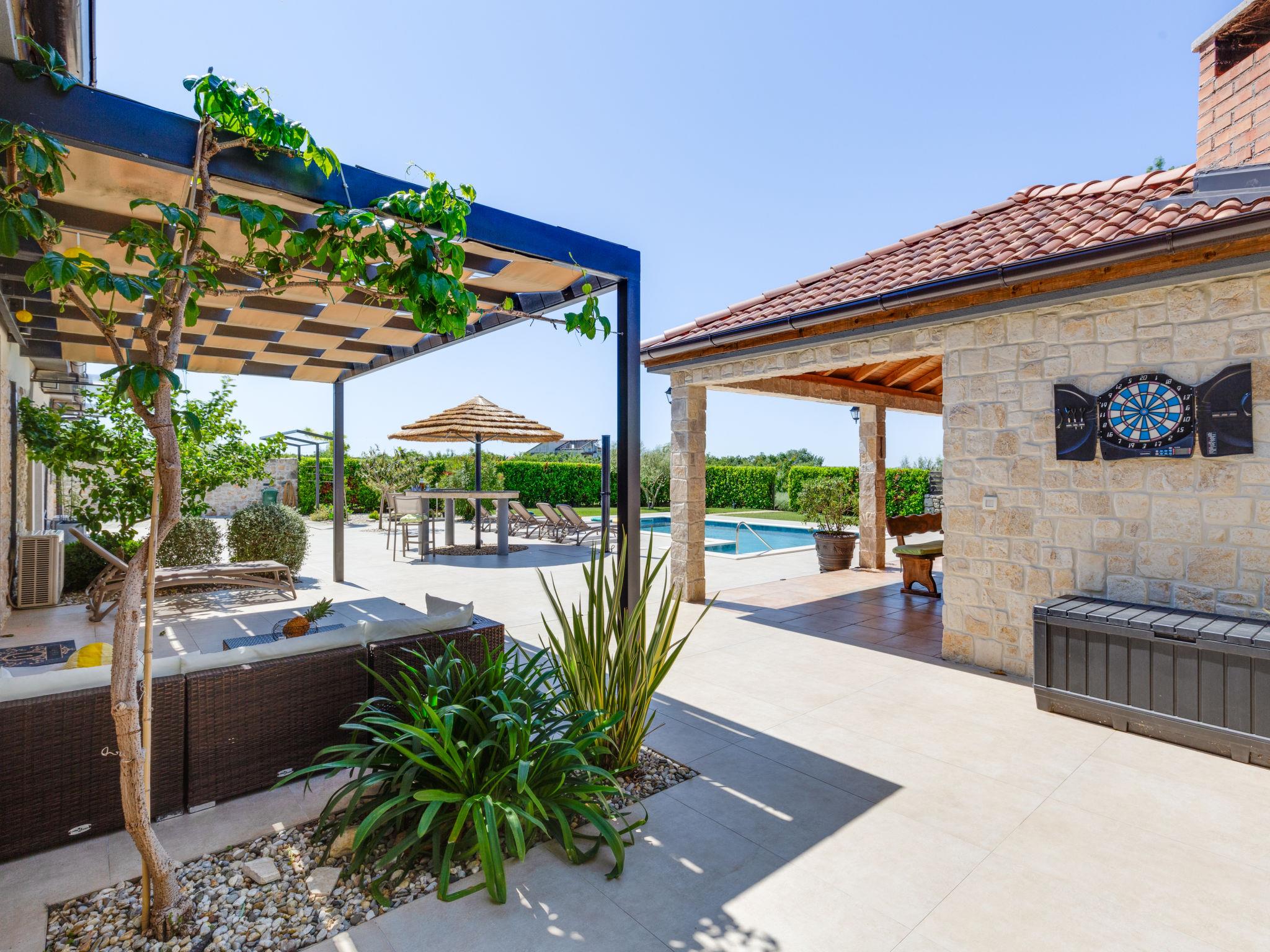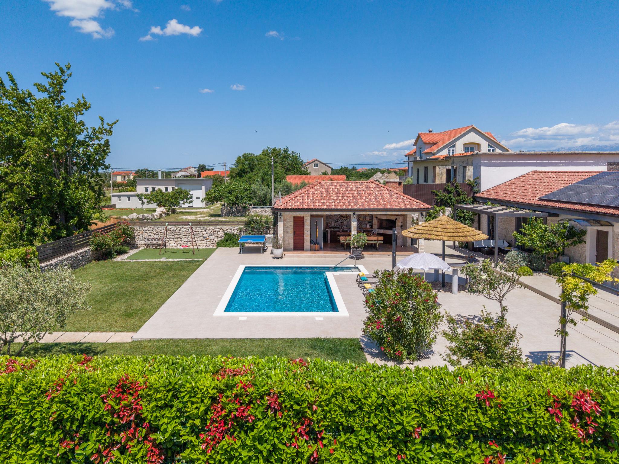 Zemunik Donji 22 km from Zadar: Beautiful single-family house "Villa Tanja". 17 km from the centre of Sukošan, in a sunny position, 17 km from the sea. Private: property 1'500 m2 (fenced), swimming pool (8 x 4 m, depth 140 cm, seasonal availability: 01.May. - 01.Oct.) with internal staircase. Outdoor shower. In the house: internet access, washing machine. Parking (for 2 cars) at the house on the premises. E-charging station. Shop 1 km, restaurant 17 km, bus stop 7.1 km, pebble beach 17 km. Nearby attractions: NP Krka 67 km, NP Paklenica 39 km, Fun park Biograd 32 km. Well-known lakes can easily be reached: Vrana See 33 km. Groups of teenagers on request only. Please note: airfield 12 km from the property.