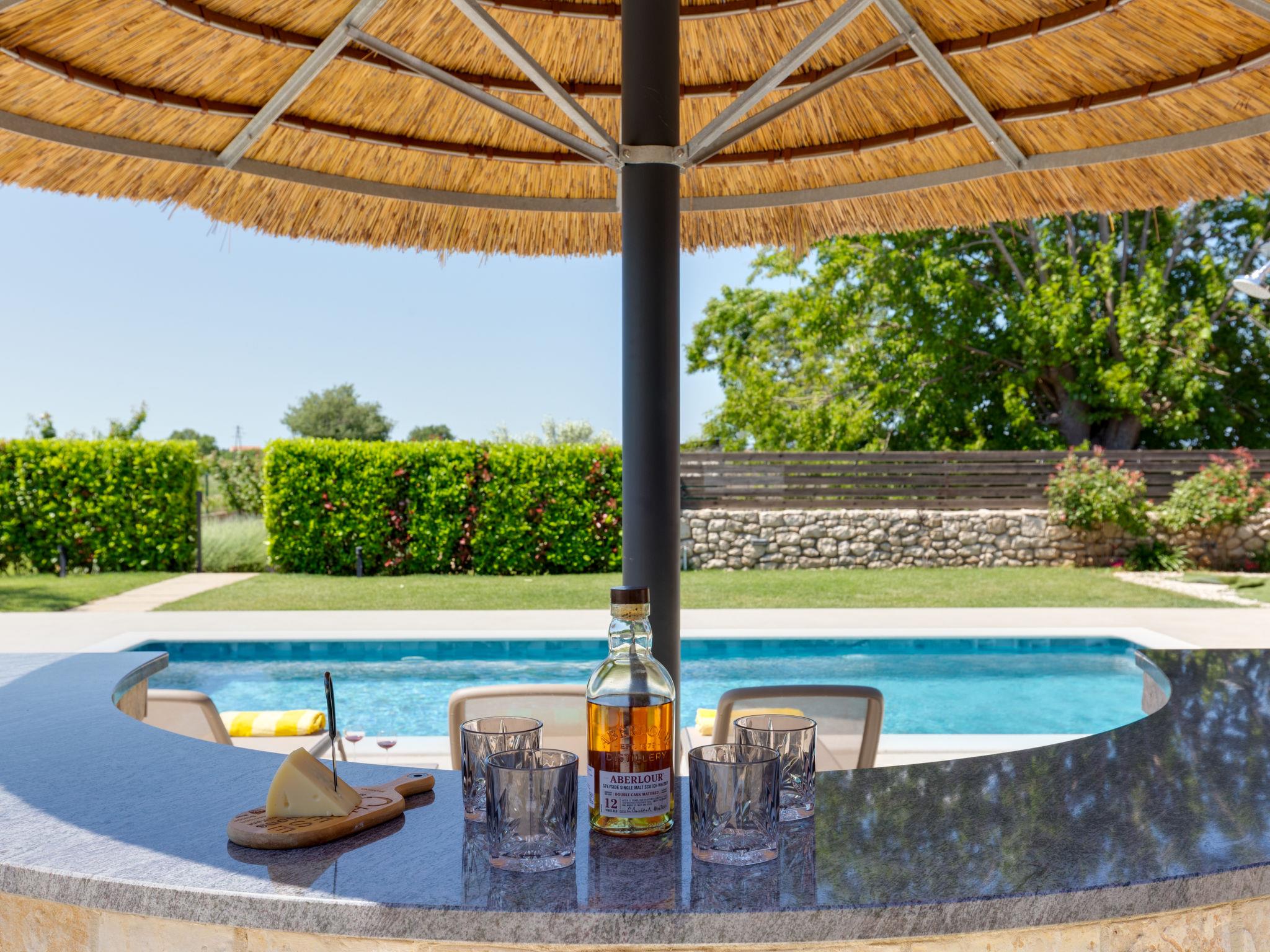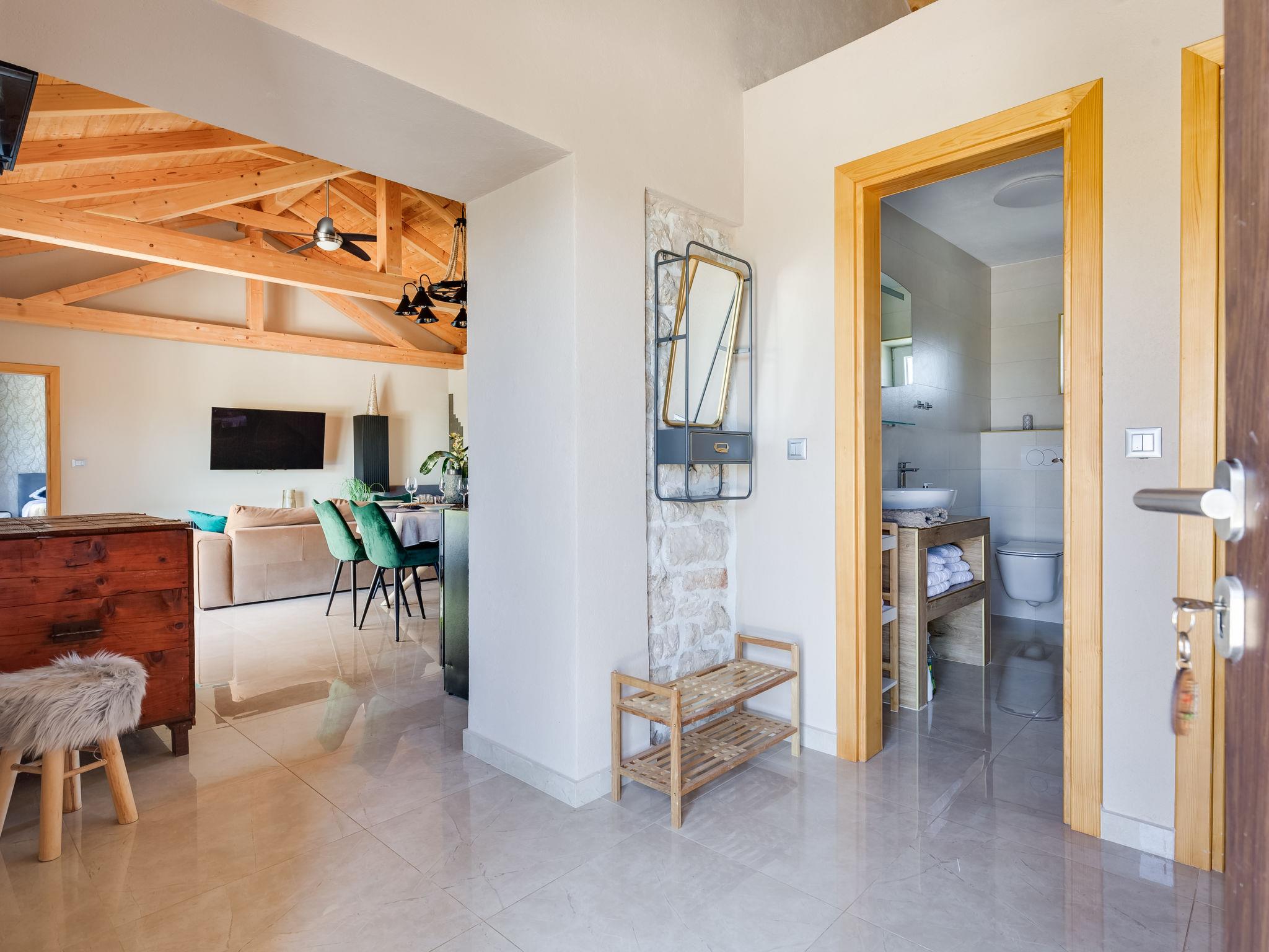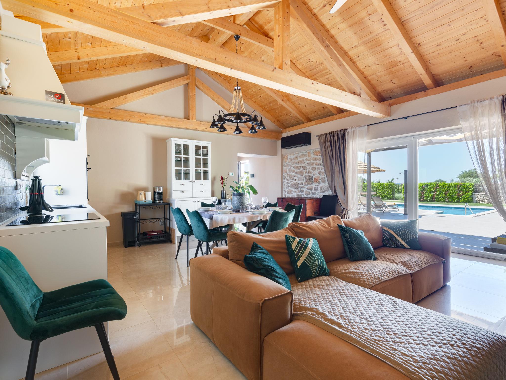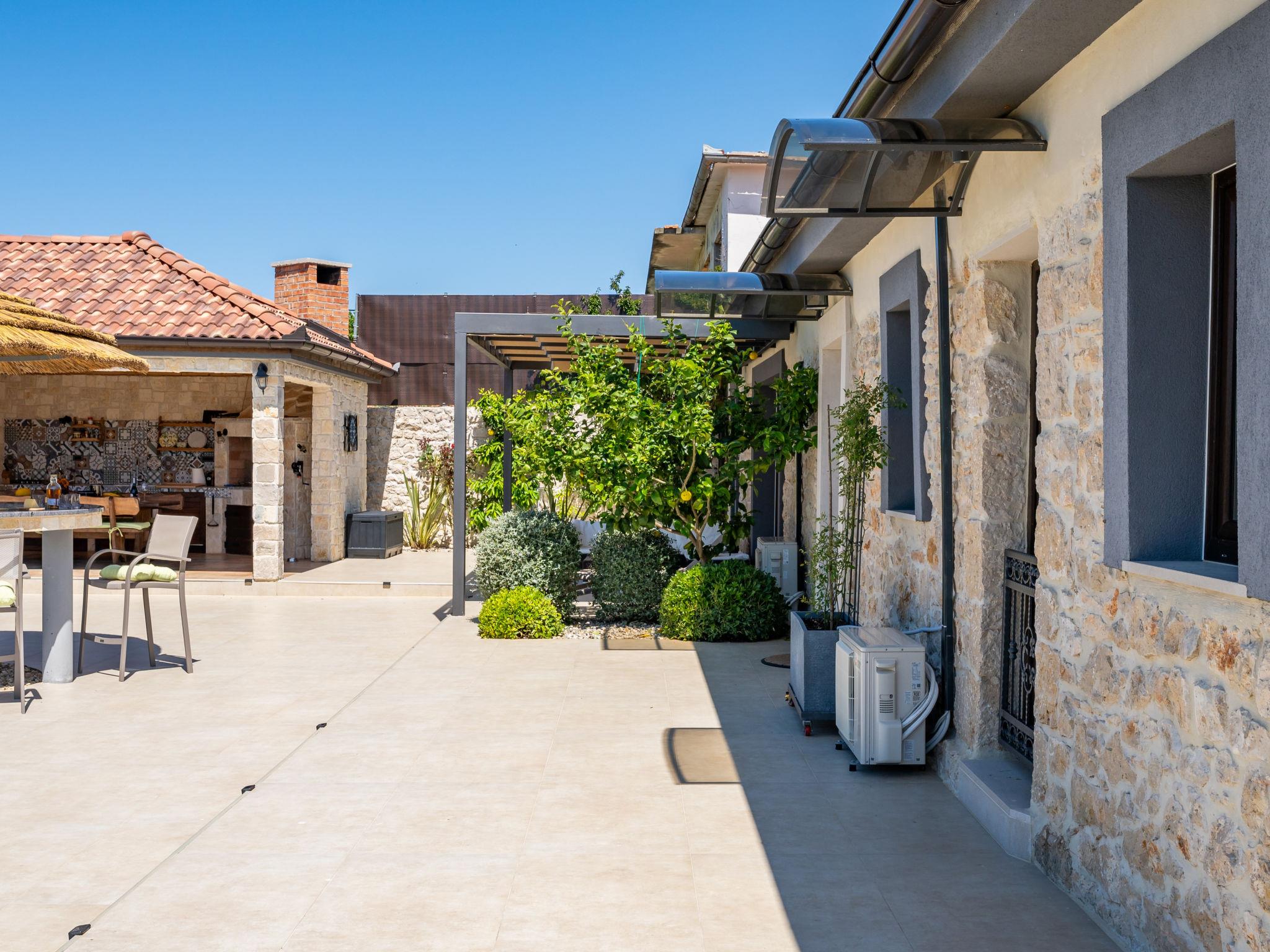 Zemunik Donji 22 km from Zadar: Beautiful single-family house "Villa Tanja". 17 km from the centre of Sukošan, in a sunny position, 17 km from the sea. Private: property 1'500 m2 (fenced), swimming pool (8 x 4 m, depth 140 cm, seasonal availability: 01.May. - 01.Oct.) with internal staircase. Outdoor shower. In the house: internet access, washing machine. Parking (for 2 cars) at the house on the premises. E-charging station. Shop 1 km, restaurant 17 km, bus stop 7.1 km, pebble beach 17 km. Nearby attractions: NP Krka 67 km, NP Paklenica 39 km, Fun park Biograd 32 km. Well-known lakes can easily be reached: Vrana See 33 km. Groups of teenagers on request only. Please note: airfield 12 km from the property.
