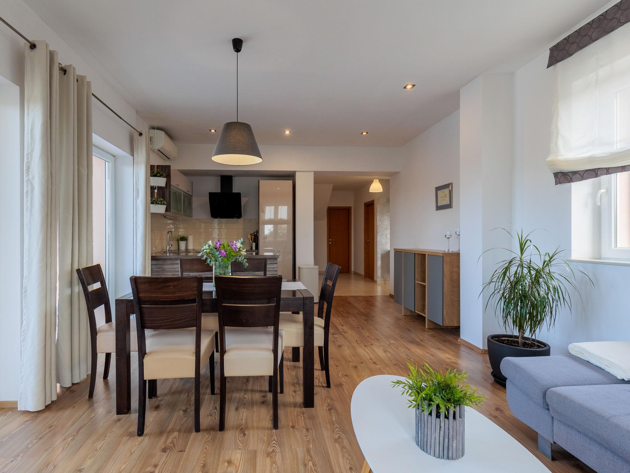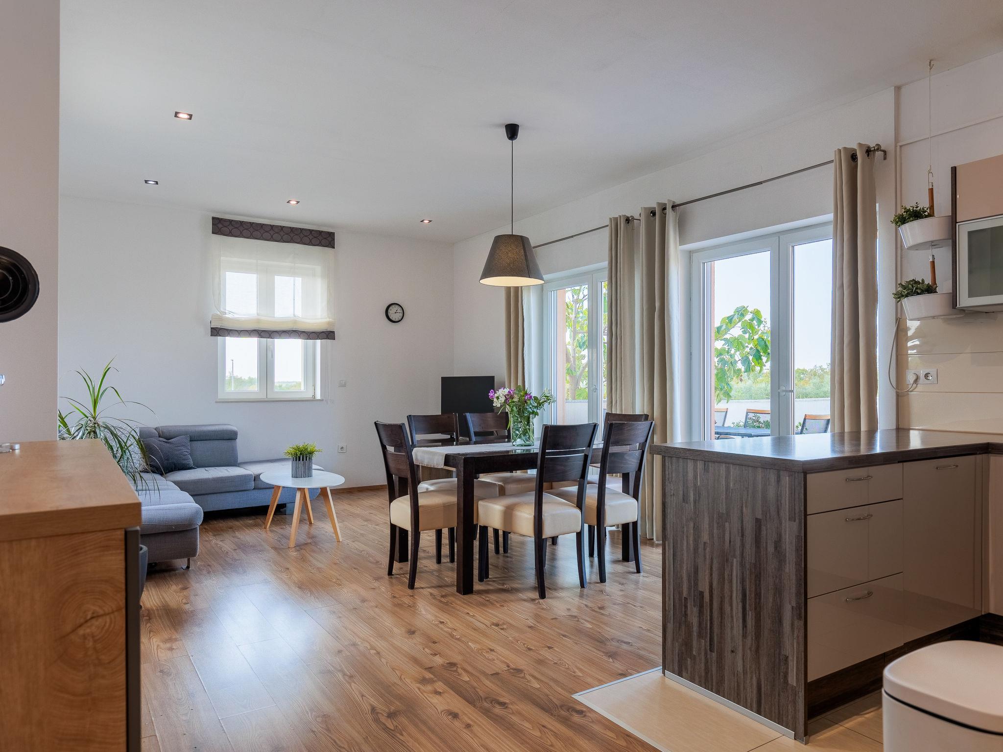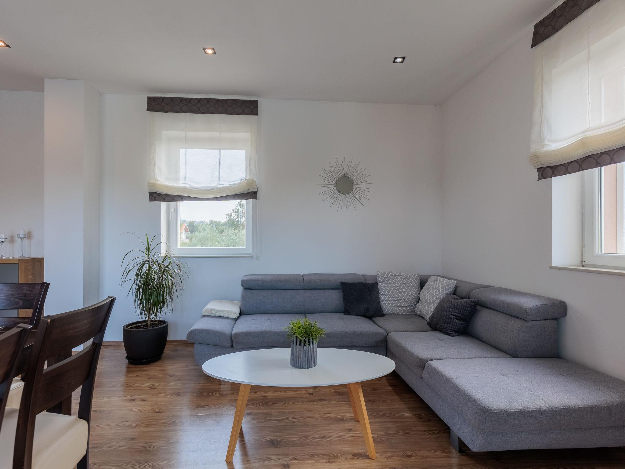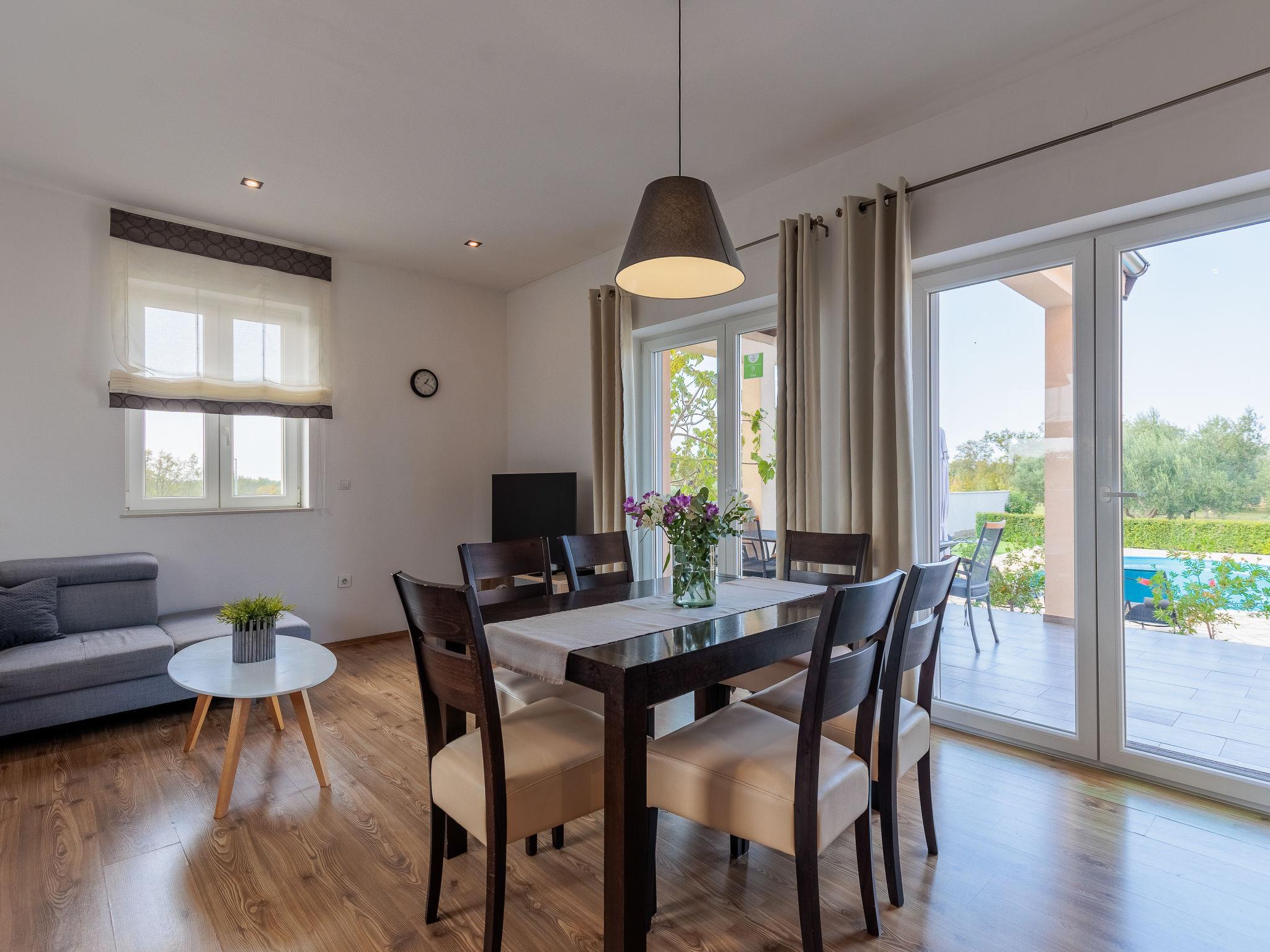 Policnik 12 km from Zadar: Beautiful single-family house "Josipa", 2 storeys. In a quiet, sunny position, 13 km from the sea. For shared use: property 2'000 m2 (fenced), trees. Private: swimming pool round (8 x 4 m, depth 150 cm, seasonal availability: 01.Apr. - 01.Oct.) with internal staircase. Outdoor shower, garden furniture, barbecue. In the house: internet access, washing machine. Shop 800 m, restaurant 12 km, bus stop 750 m, sandy beach 11 km pebble beach 13 km. Tennis 13 km. The owner does not accept any youth groups. Please note: airfield 10 km from the property.