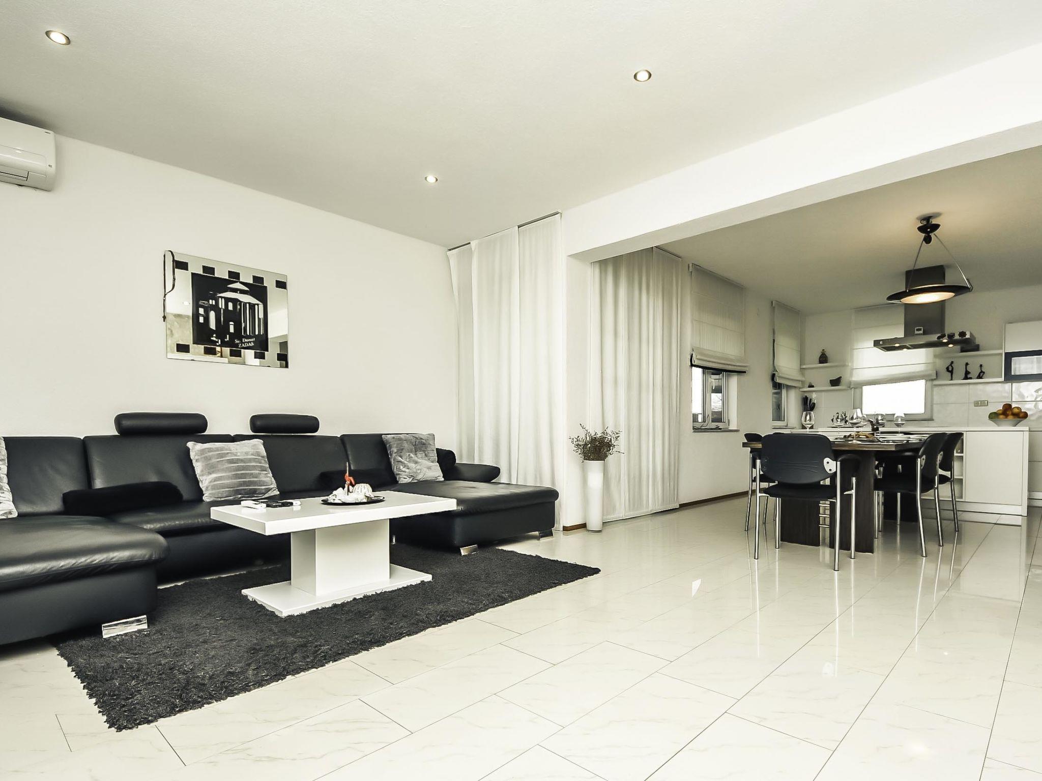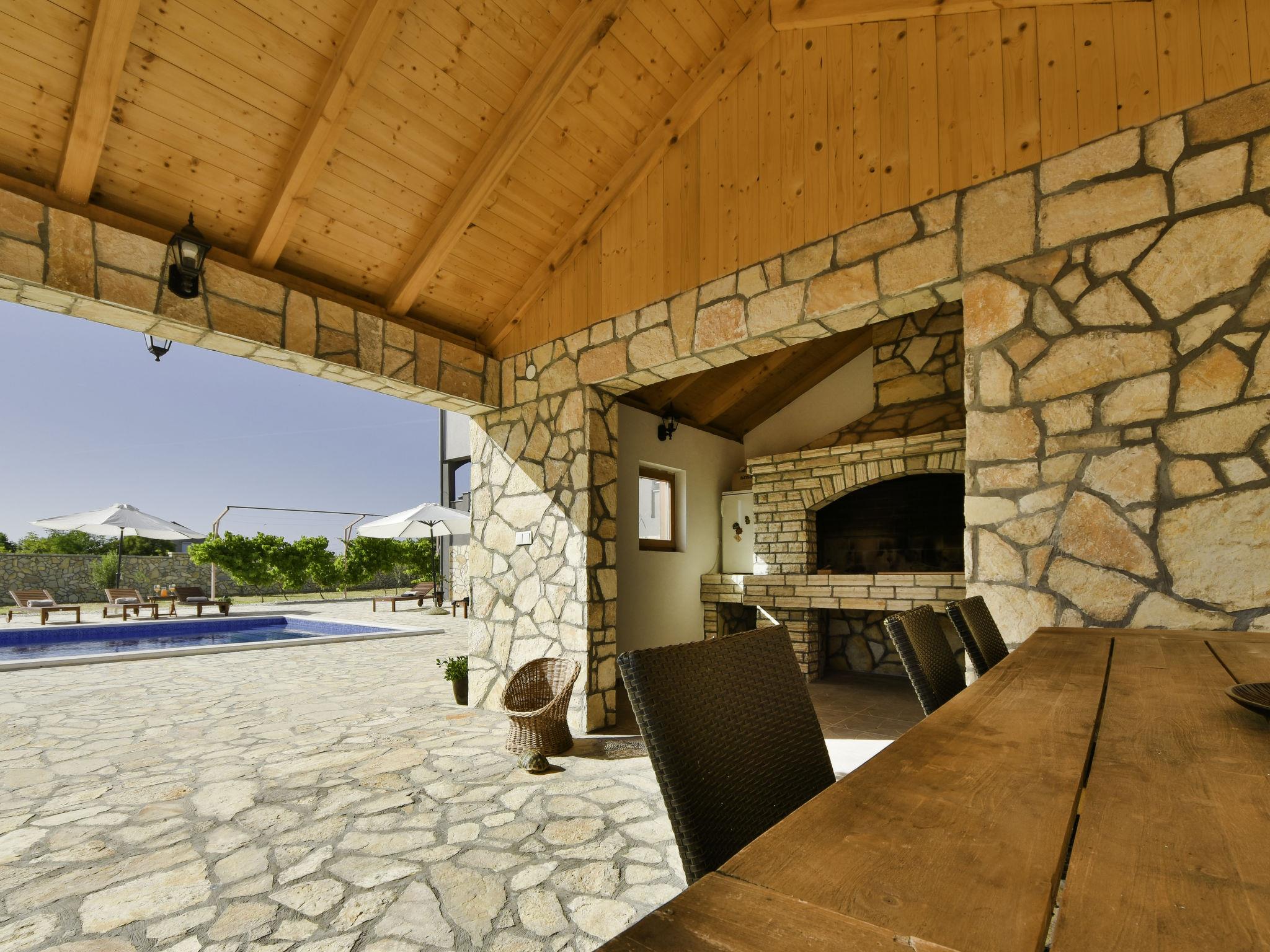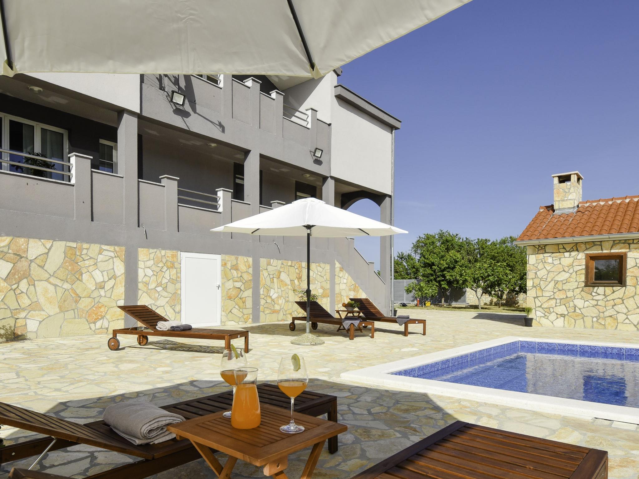 Suhovare 18 km from Zadar: Single-family house "Villa Dalmacija", 2 storeys. In a quiet, sunny, elevated position, 12 km from the sea. Private: property 2'000 m2 (fenced), swimming pool angular, heated (10 x 5 m, depth 150 cm, seasonal availability: 01.Apr. - 01.Oct.) with internal staircase. Garden furniture, barbecue house. In the house: internet access, washing machine. Shop 500 m, restaurant 1.2 km, bus stop 2.1 km, pebble beach 12 km. Please note: airfield 10 km from the property. Ground floor is closed and not occupied.